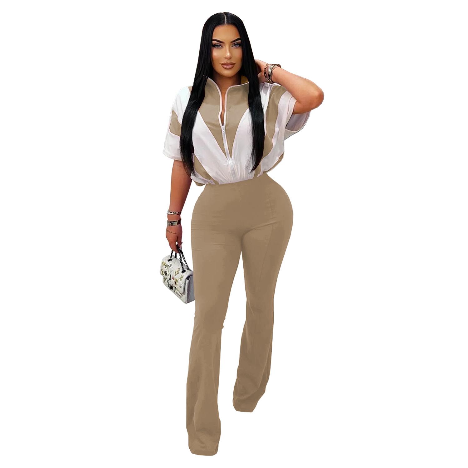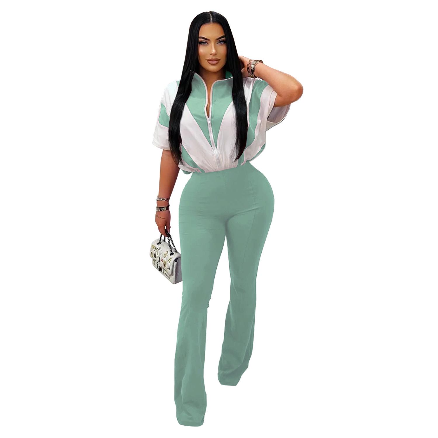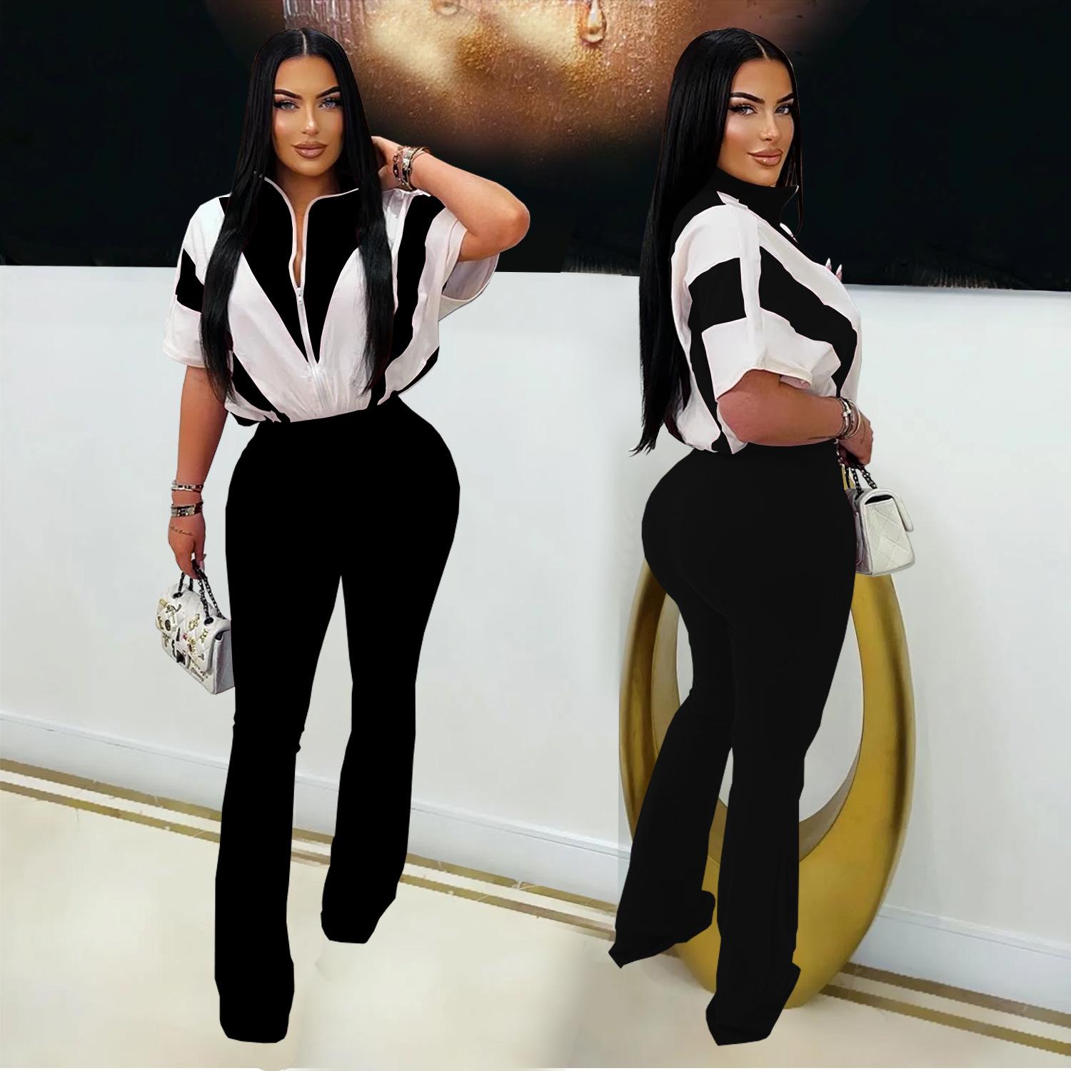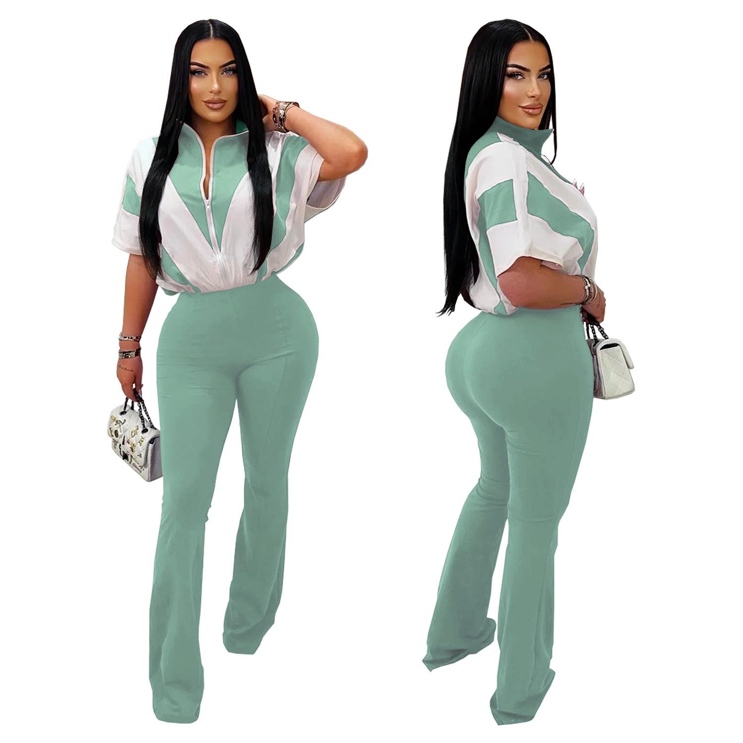 C7306 Conjunto de dos piezas de pantalones deportivos ajustados informales de manga corta para mujer, estilo europeo y americano, de AliExpress y Amazon, disponible en Europa y América.