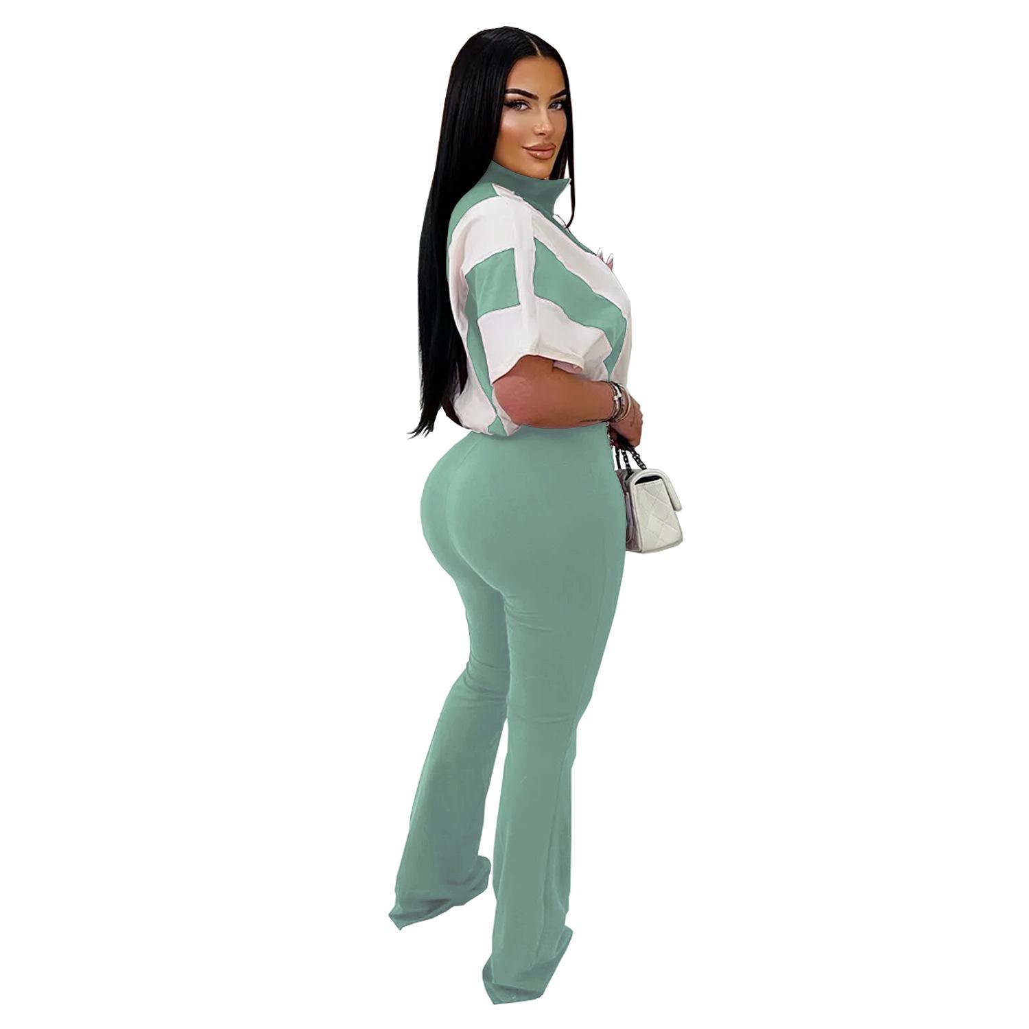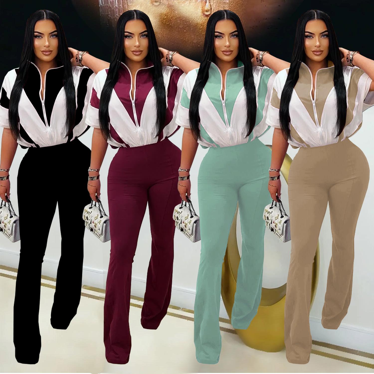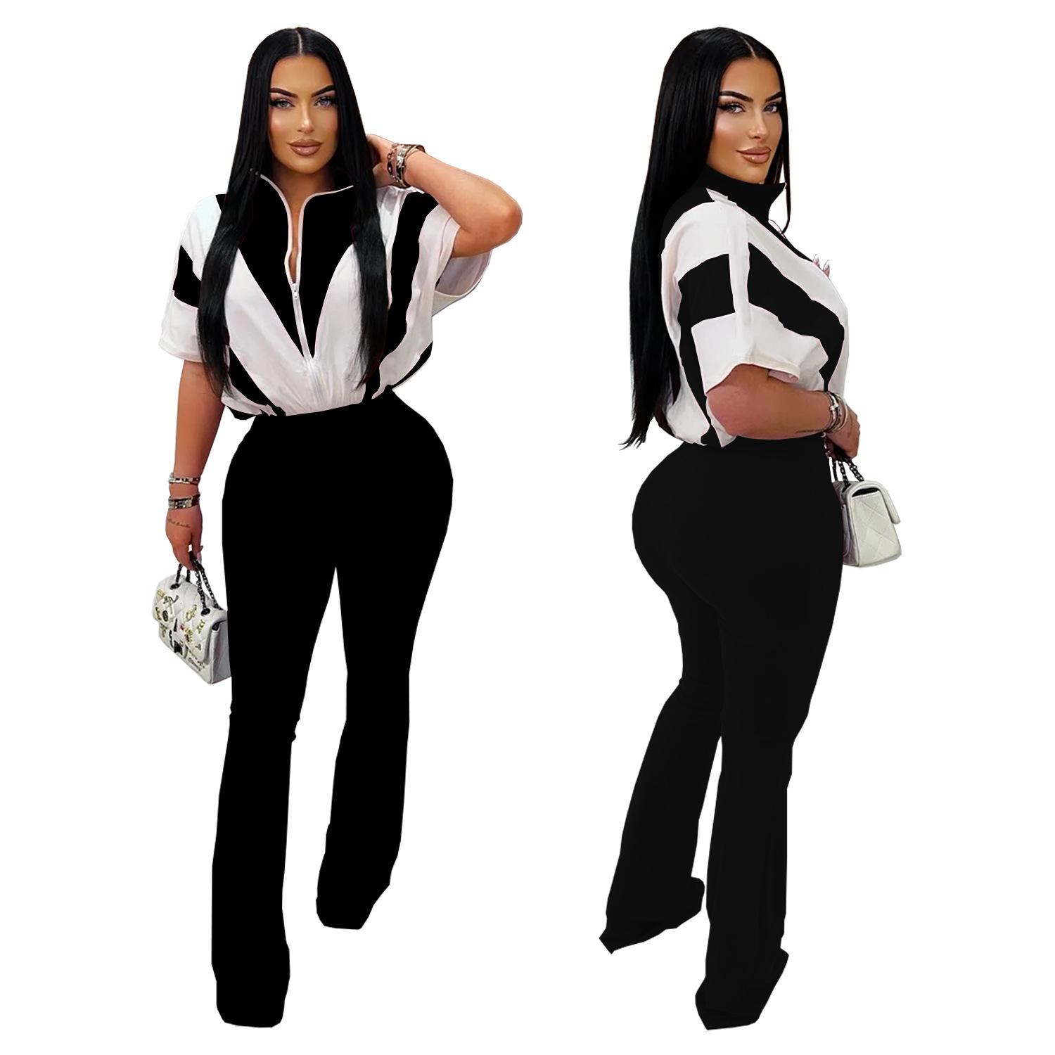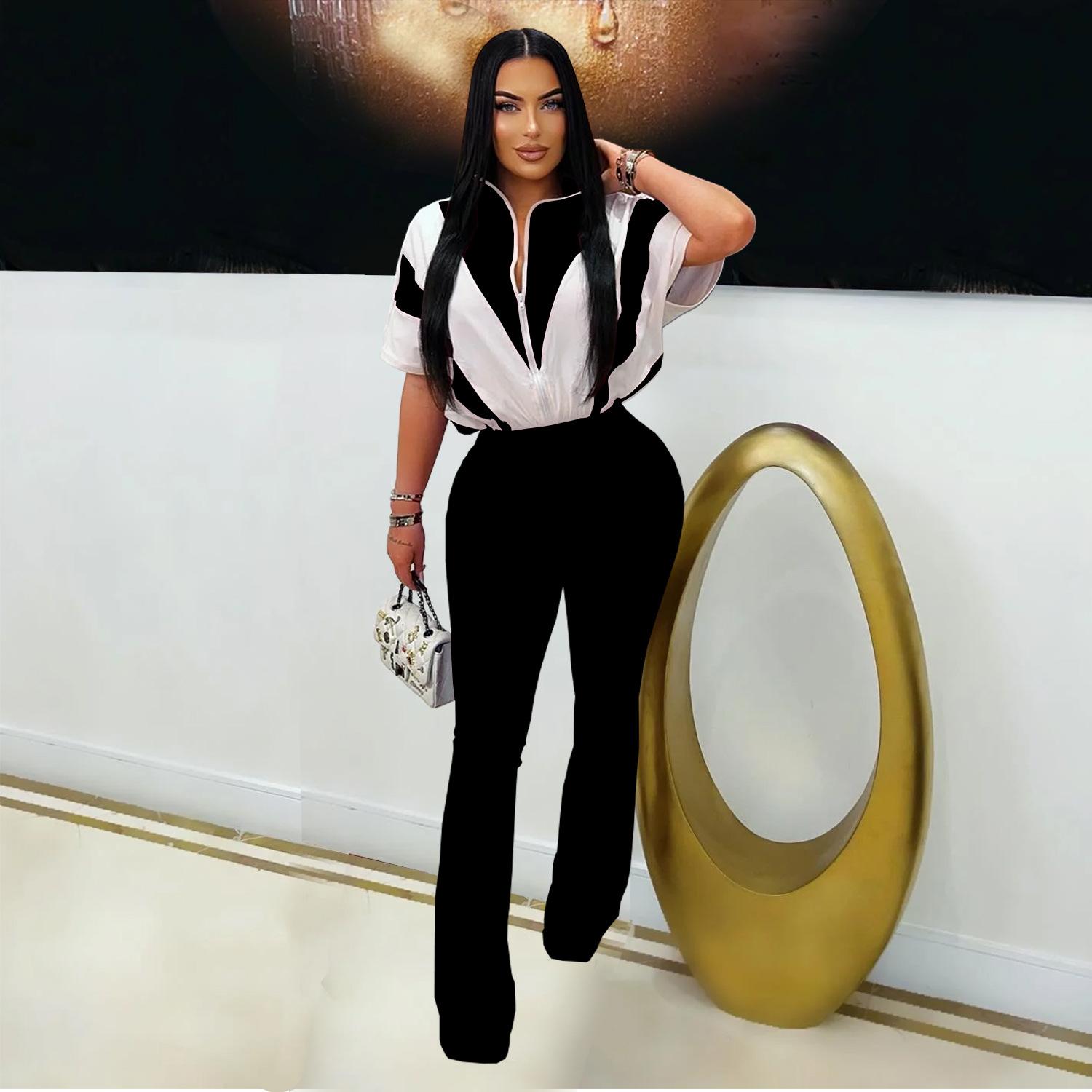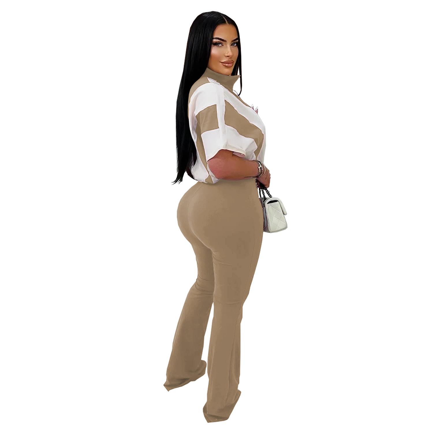 C7306 Conjunto de dos piezas de pantalones deportivos ajustados informales de manga corta para mujer, estilo europeo y americano, de AliExpress y Amazon, disponible en Europa y América.