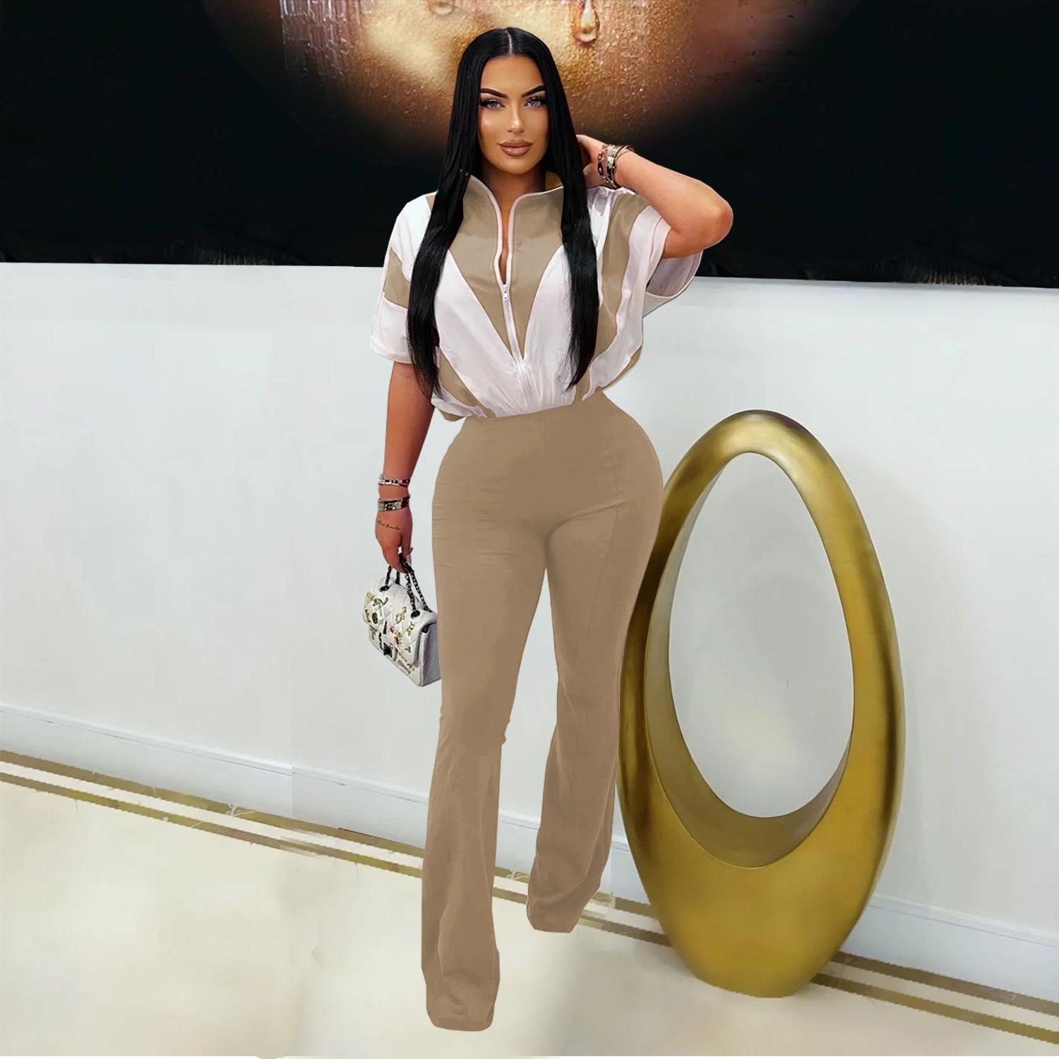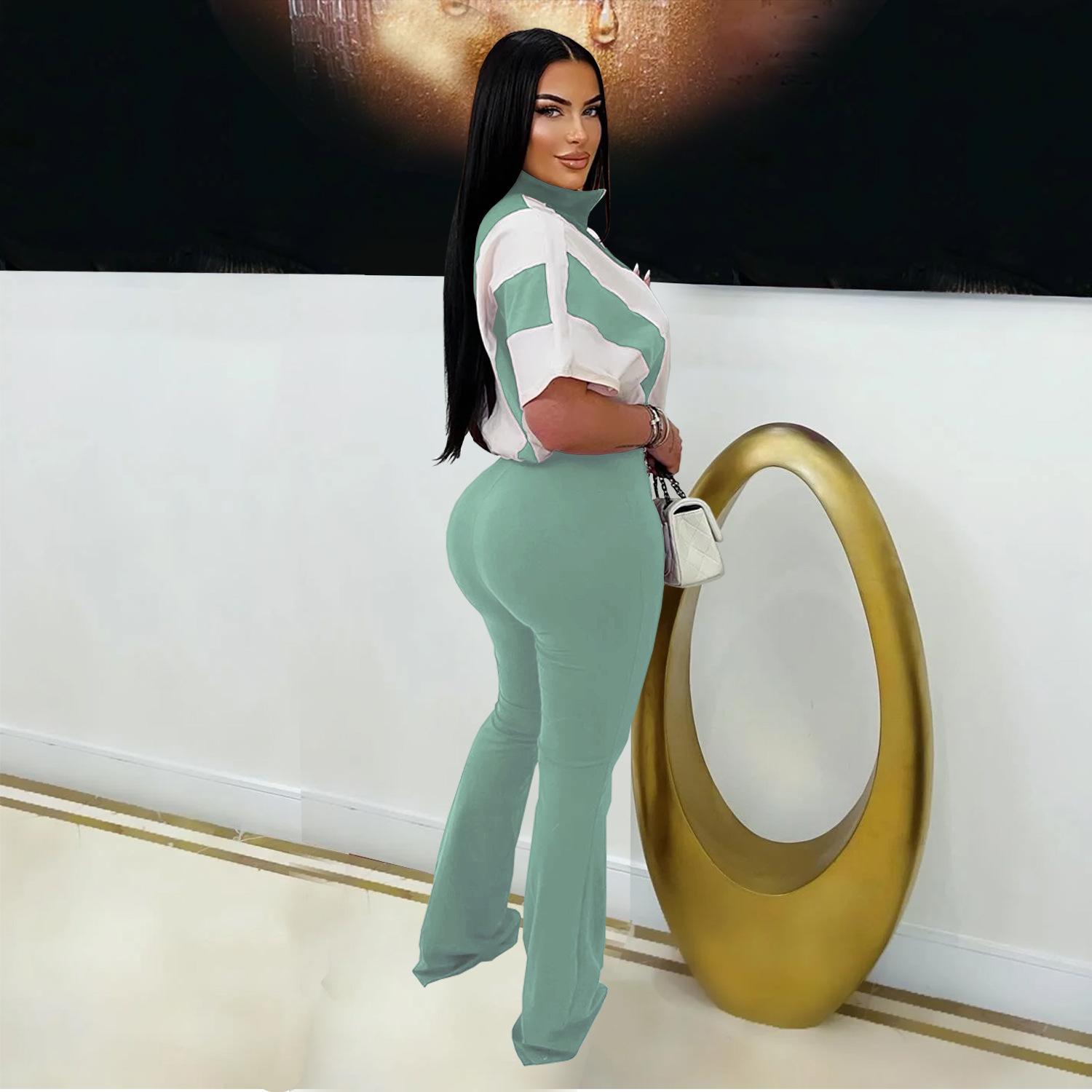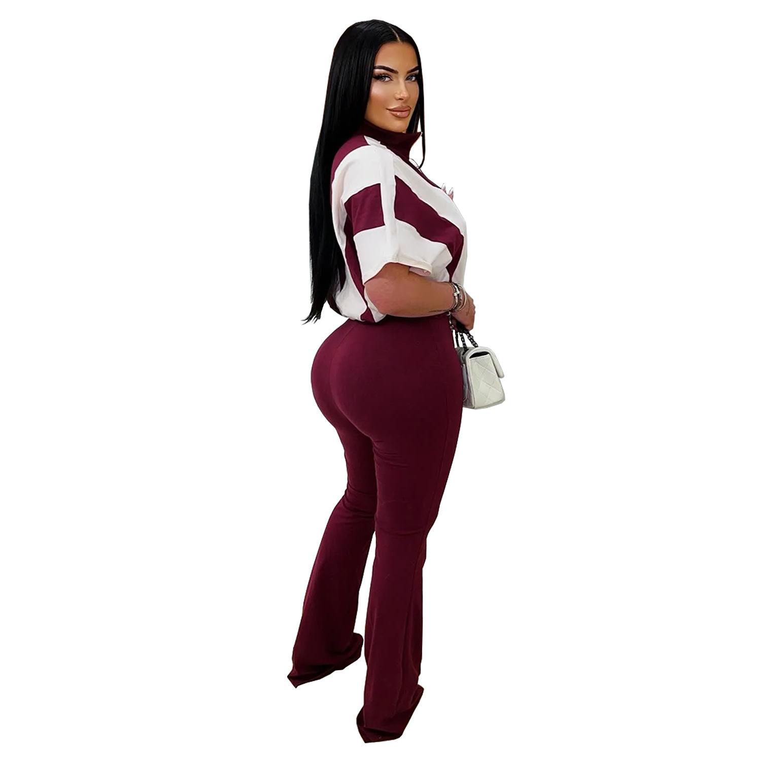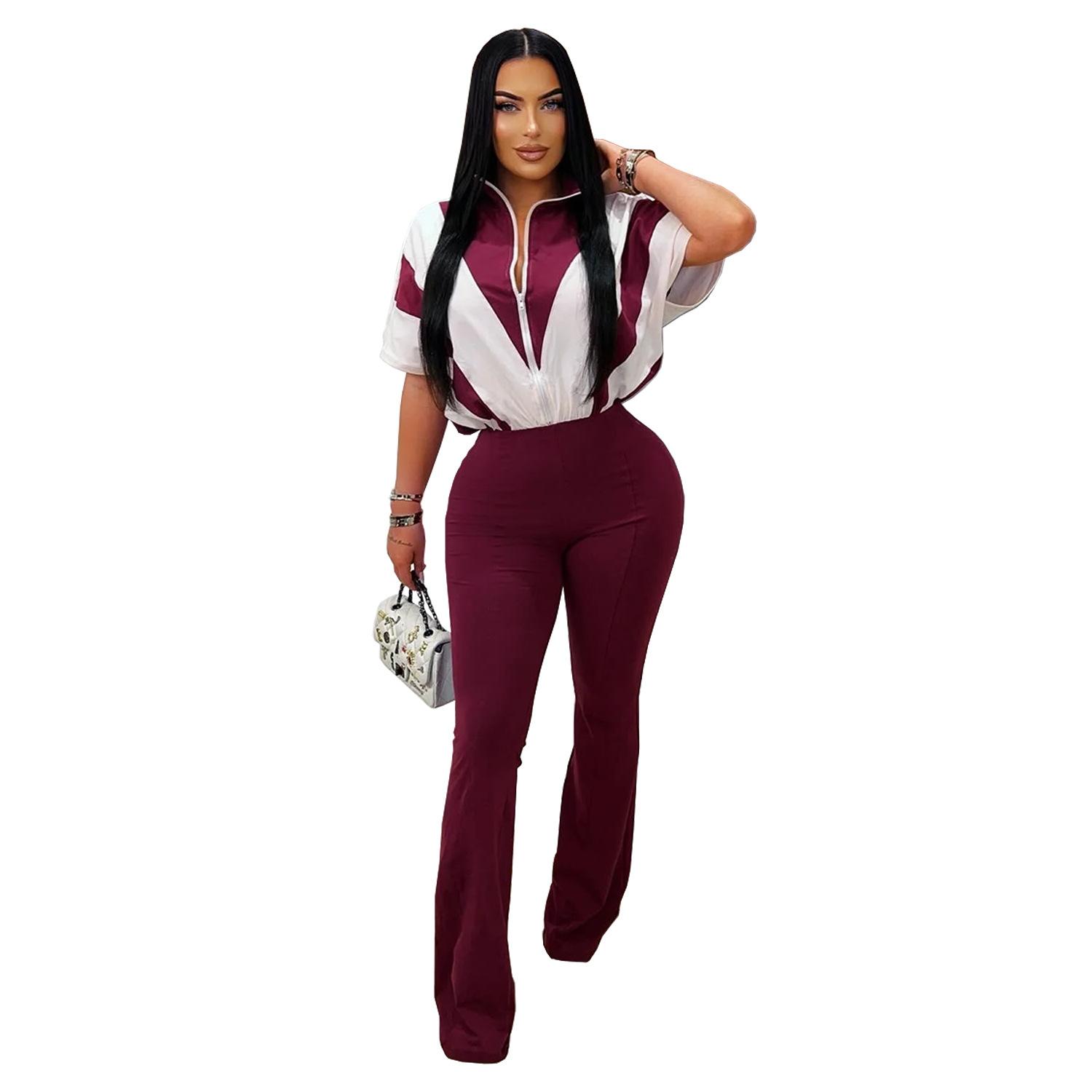 C7306 Conjunto de dos piezas de pantalones deportivos ajustados informales de manga corta para mujer, estilo europeo y americano, de AliExpress y Amazon, disponible en Europa y América.