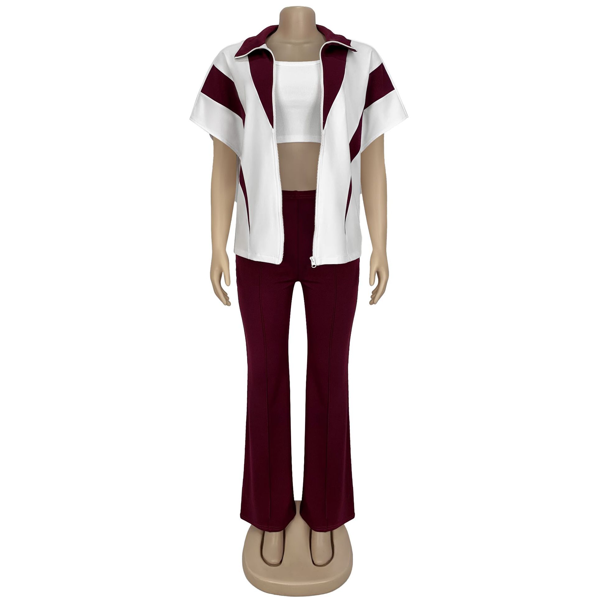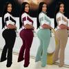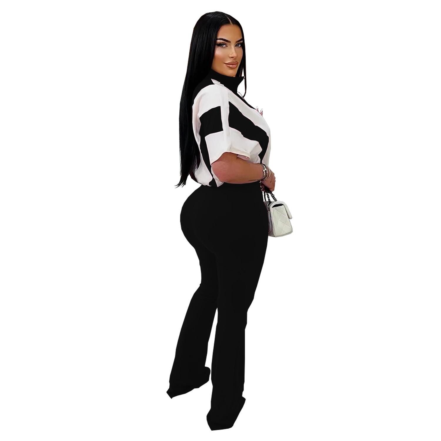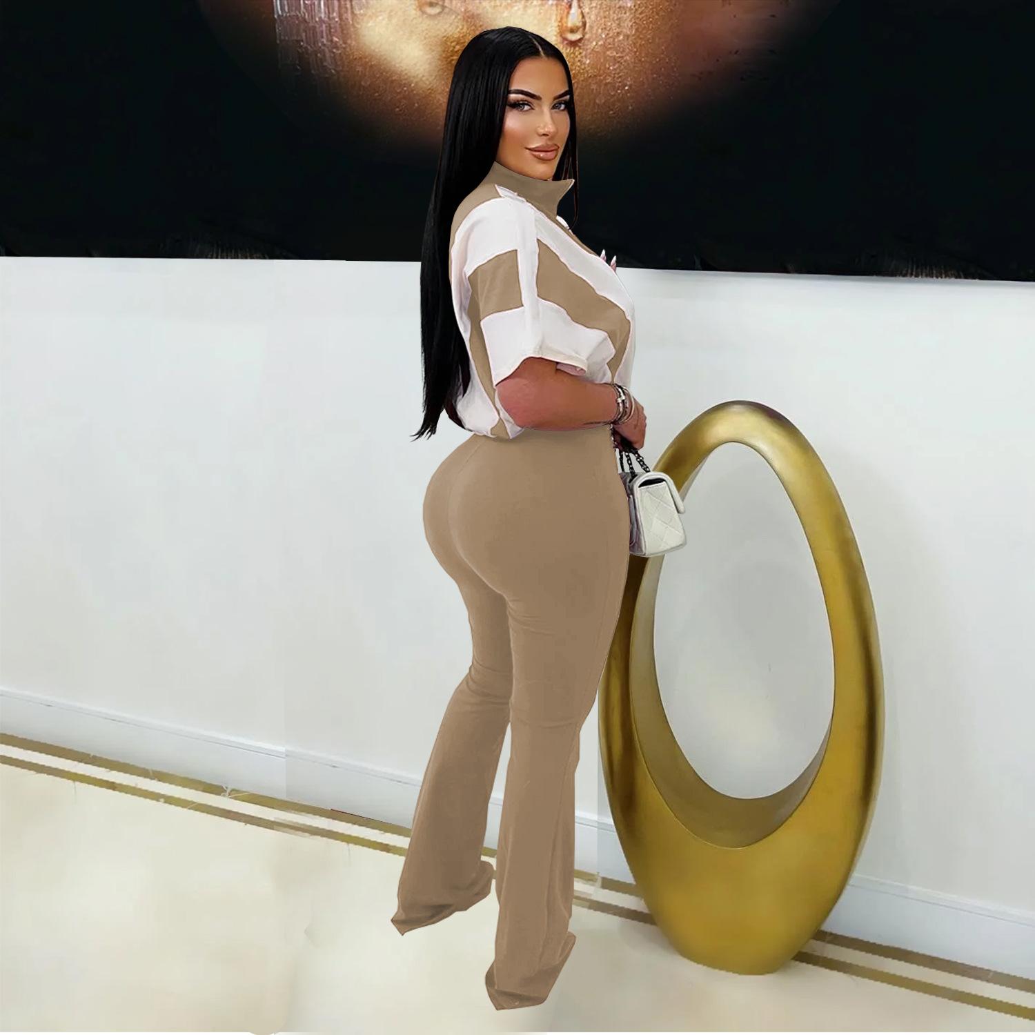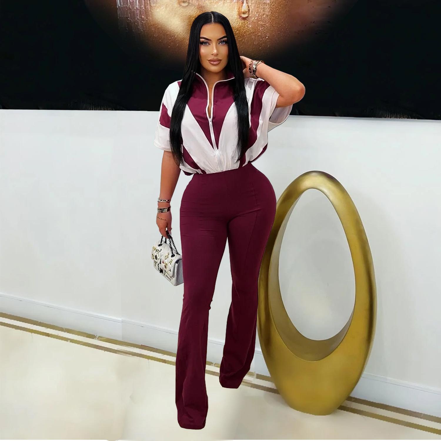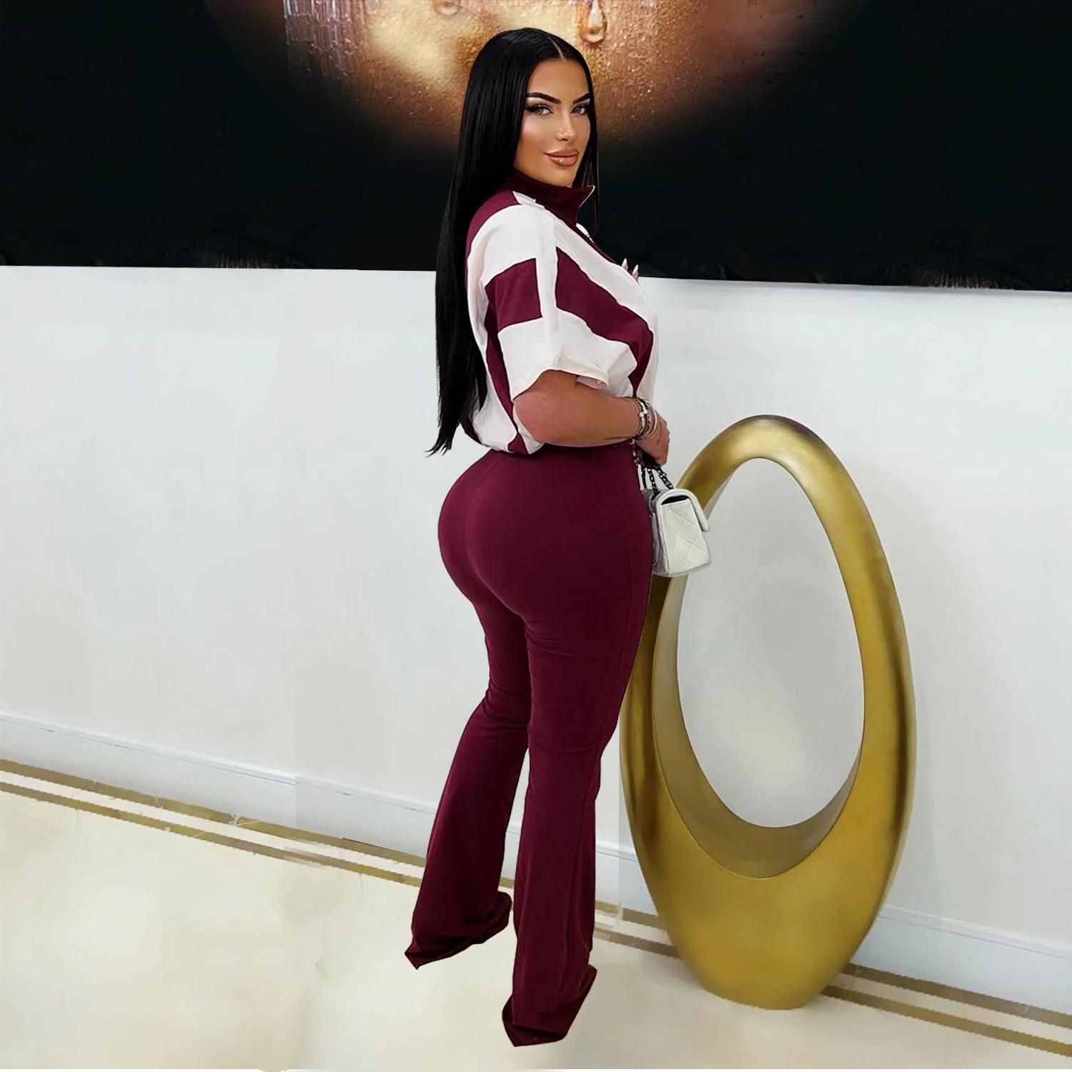 C7306 Conjunto de dos piezas de pantalones deportivos ajustados informales de manga corta para mujer, estilo europeo y americano, de AliExpress y Amazon, disponible en Europa y América.