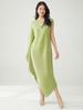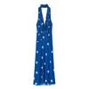 Vestido elegante de mujer de comercio exterior, nuevo, de primavera y verano, con cuello en V, estampado, con cordones en la cintura y manga larga.