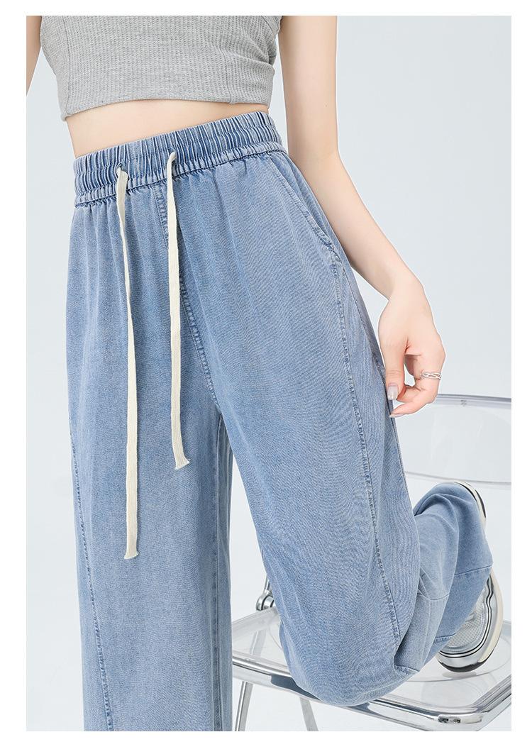 Pantalones vaqueros Tencel para mujer, primavera y verano 2025, nuevos, cintura alta, diseño recto, pantalones banana, pantalones adelgazantes de pierna ancha.