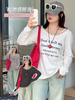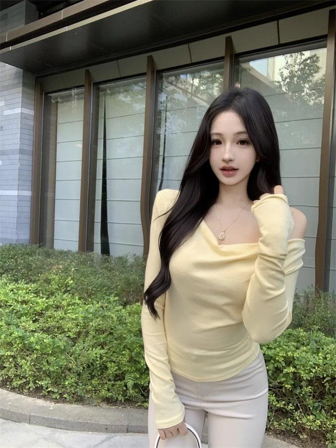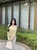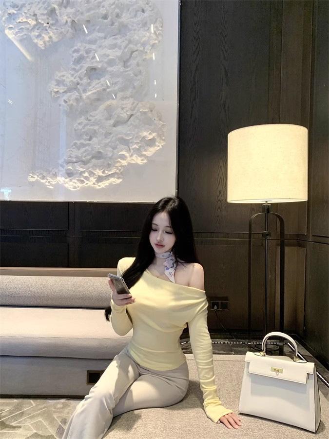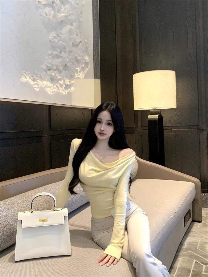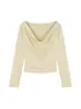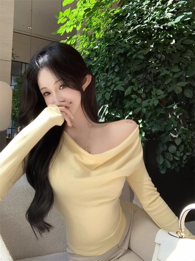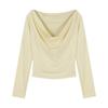 Camiseta de Punto de Manga Larga con Cuello Swing Estilo Coreano para Mujer Otoño Ajustado Ajustado Camiseta Básica Spice Girls Color Sólido Corta Combinable