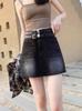 Falda vaquera estilo americano retro de calle alta para mujer, nueva falda de verano con diseño dividido, cintura alta, suelta y adelgazante.