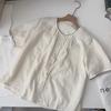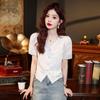 Elegante camiseta de manga corta con encaje francés para dama, novedad de verano 2025, cárdigan fino con cuello redondo y parte superior corta.