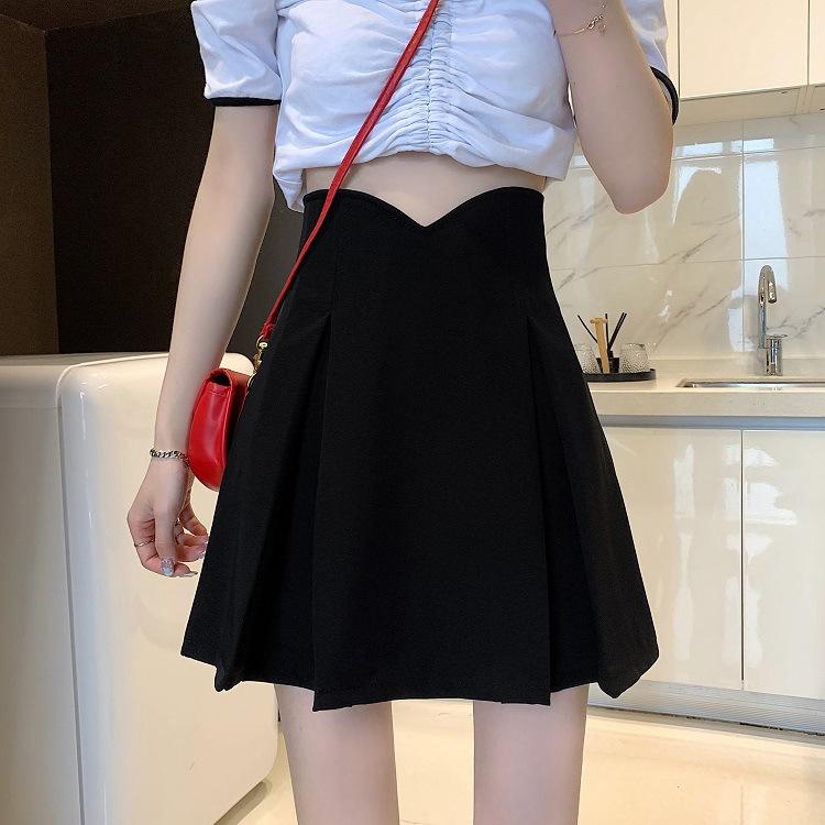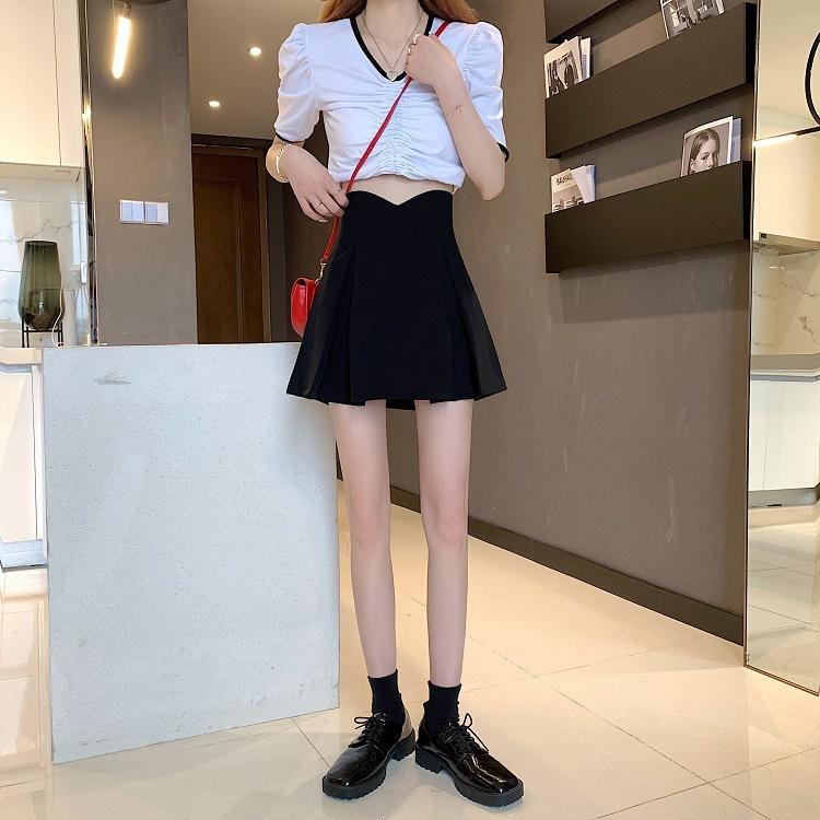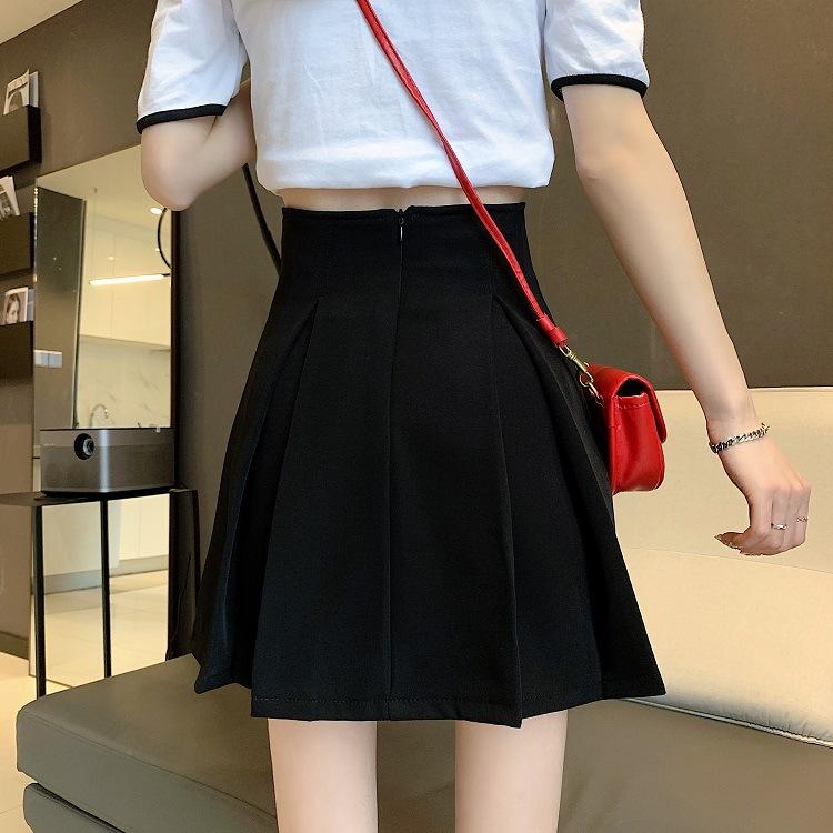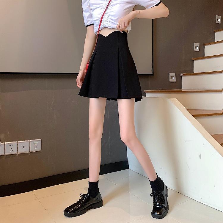 Falda plisada negra para mujer, primavera y verano 2022, corta, cintura alta, talla grande, antideslumbrante, corte A, falda a la cadera
