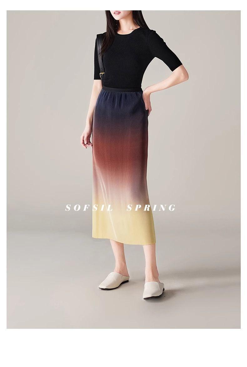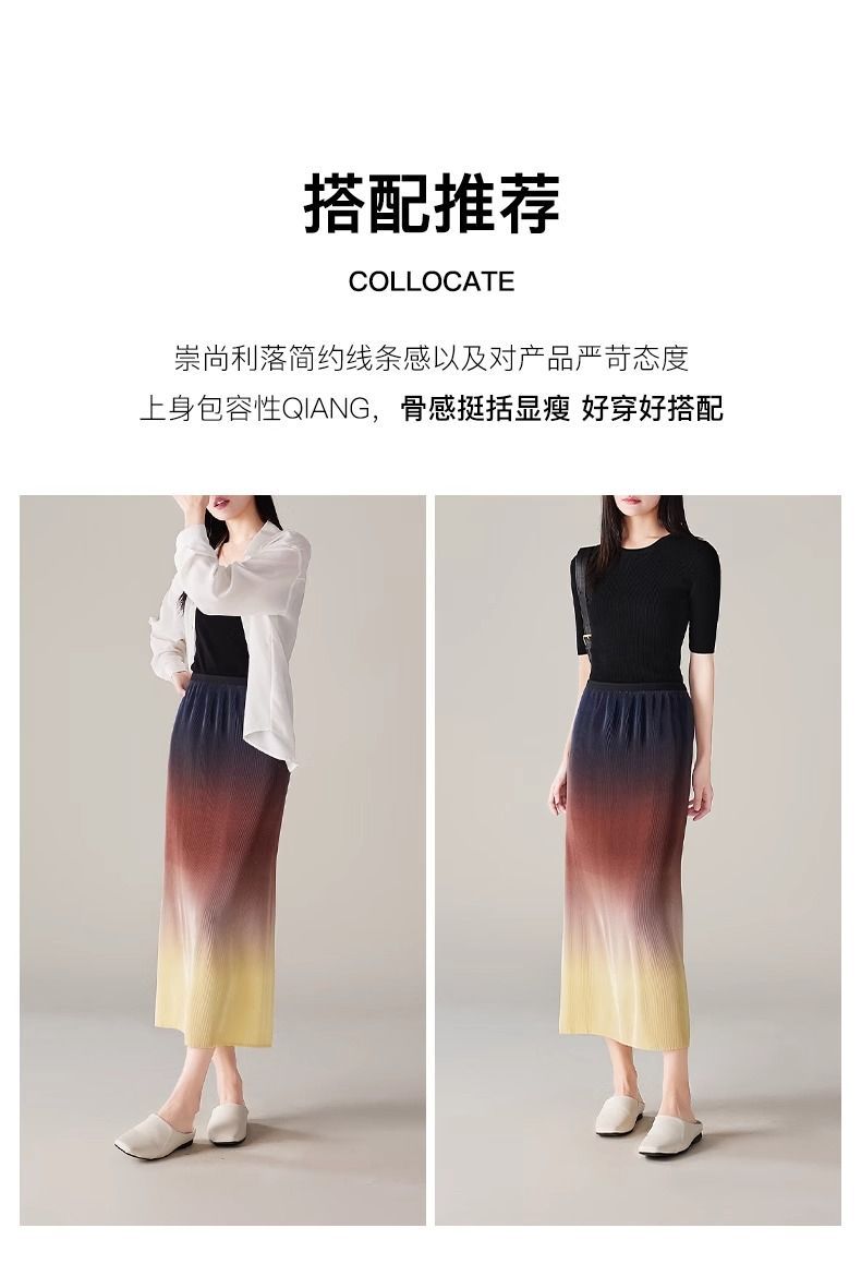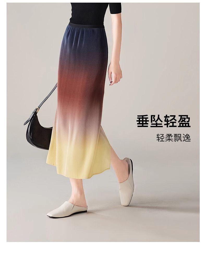 Falda Midi de Talla Grande Nicho Degradado Plisada de Cintura Alta 2020 Primavera/Verano Nuevo Estilo, Realzadora de Estatura, Adelgazante, Ajustada a las Caderas Falda Larga Versátil