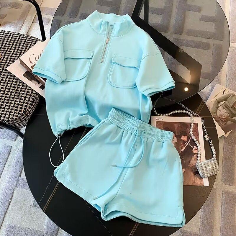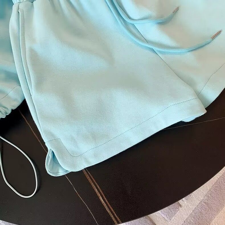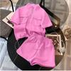 Traje deportivo europeo de dopamina de alta gama para mujer, verano 2025, nueva moda, estilo occidental, pantalones cortos casuales, conjunto de dos piezas de moda