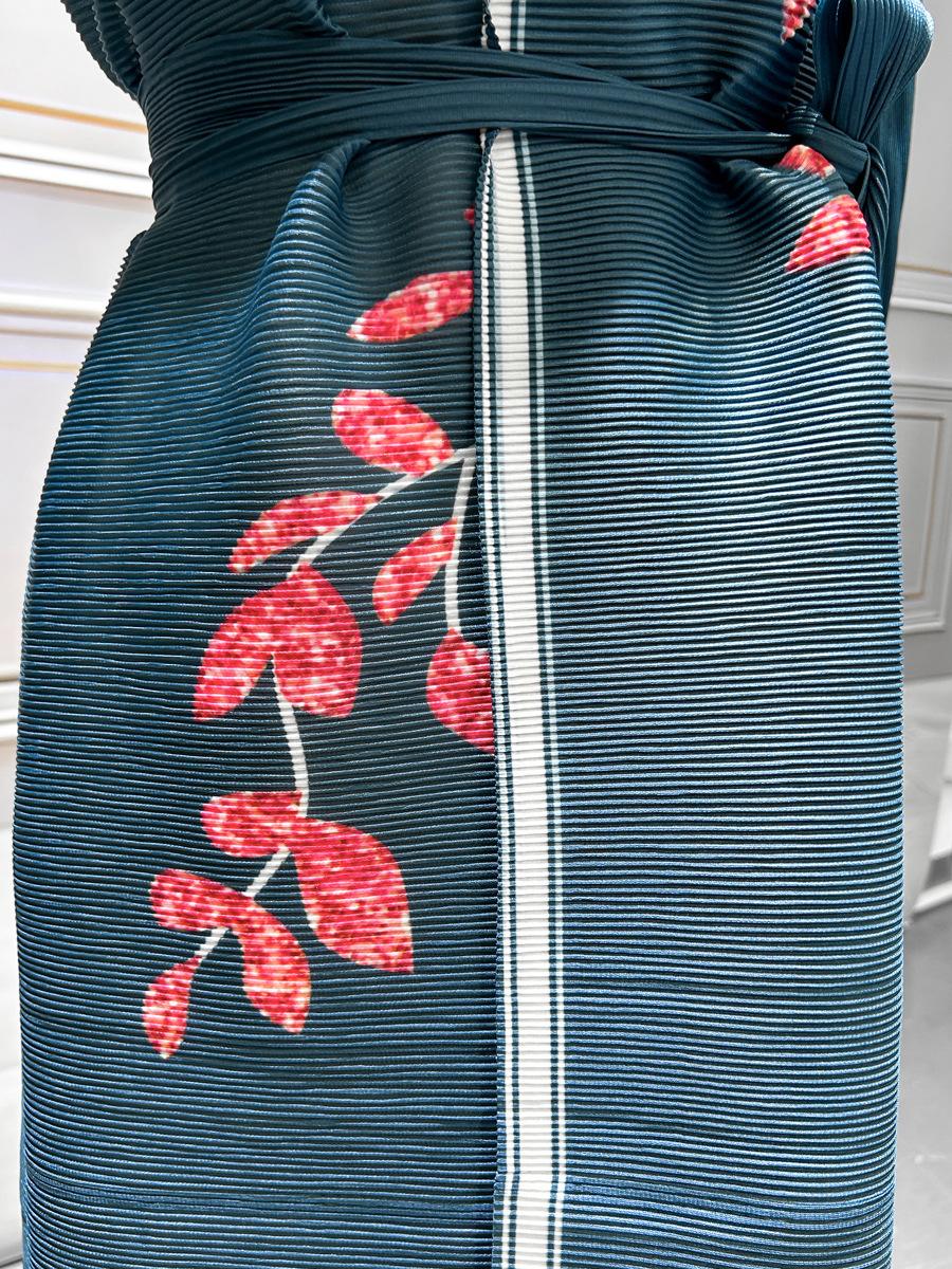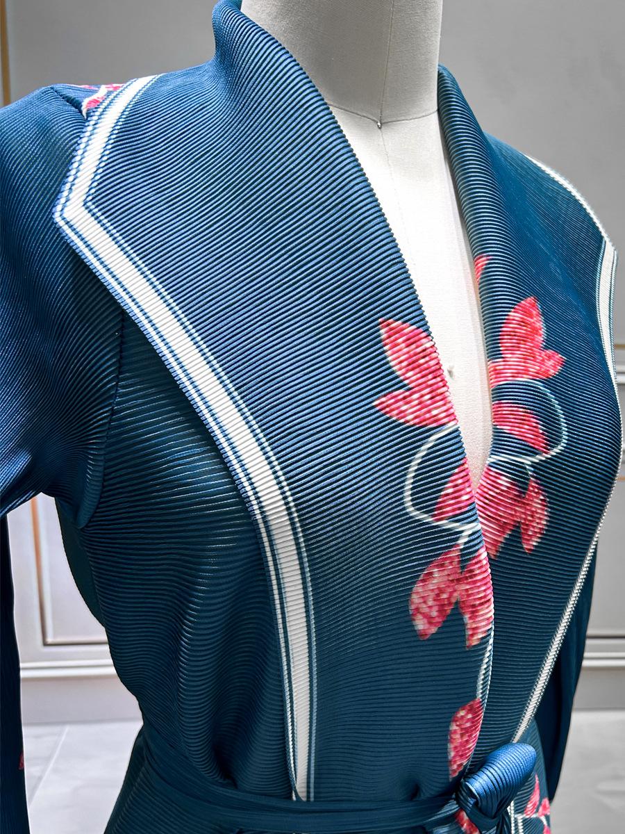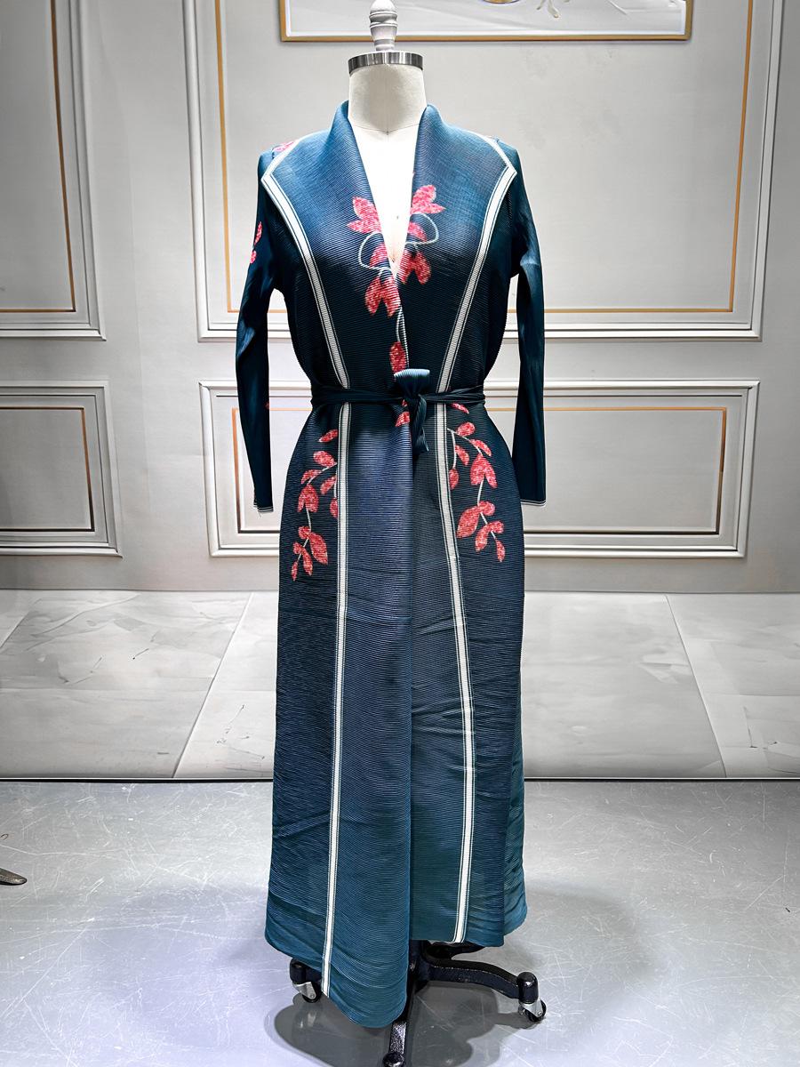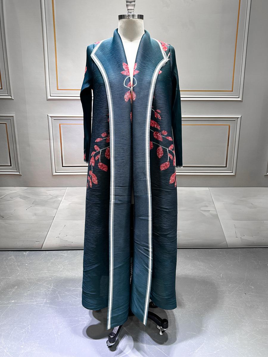 Moda Musulmana de Oriente Medio Plisado Estampado Miyake Bata Abaya Abaya Estampada Abrigo de Manga Larga Mujer