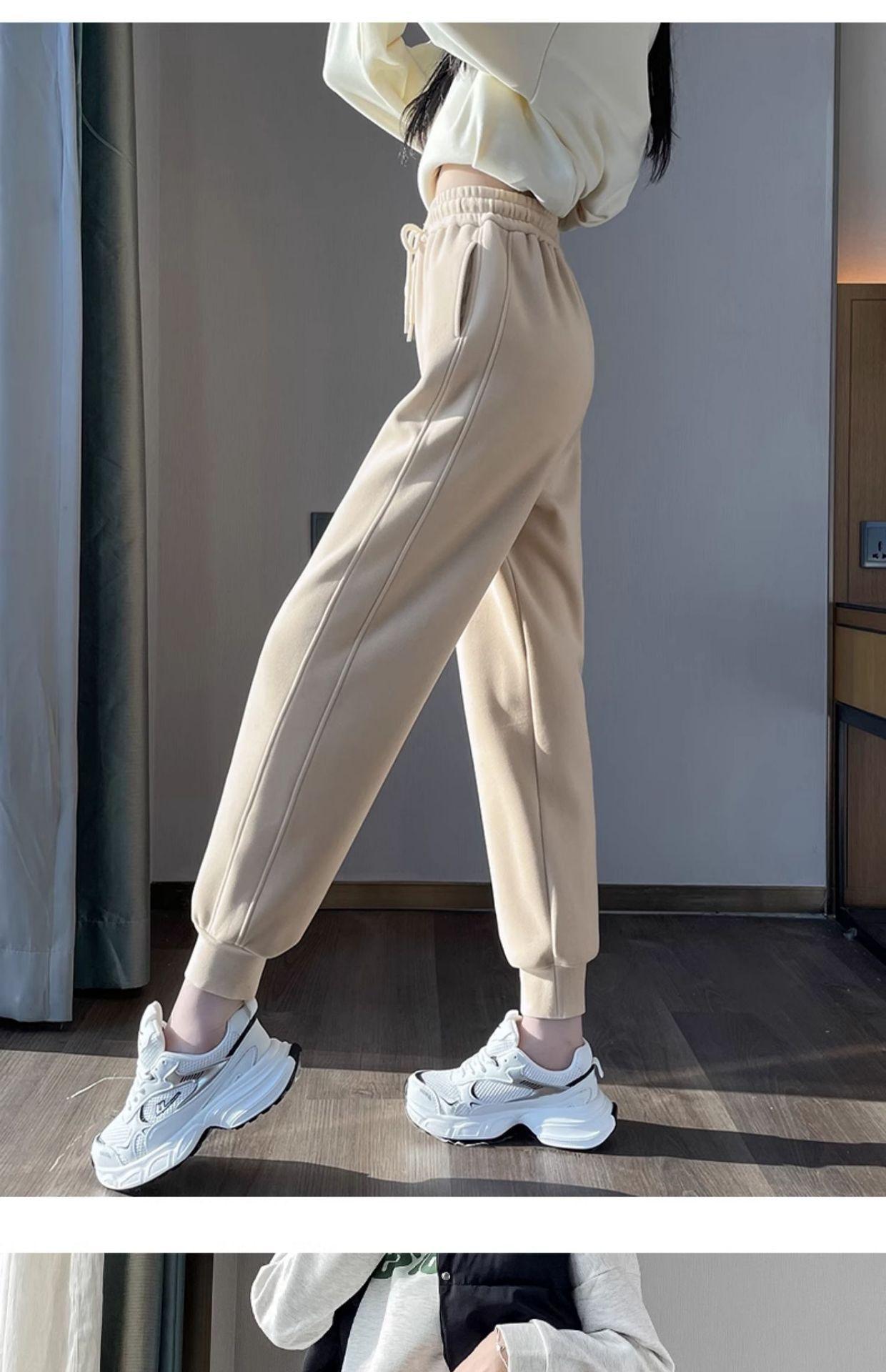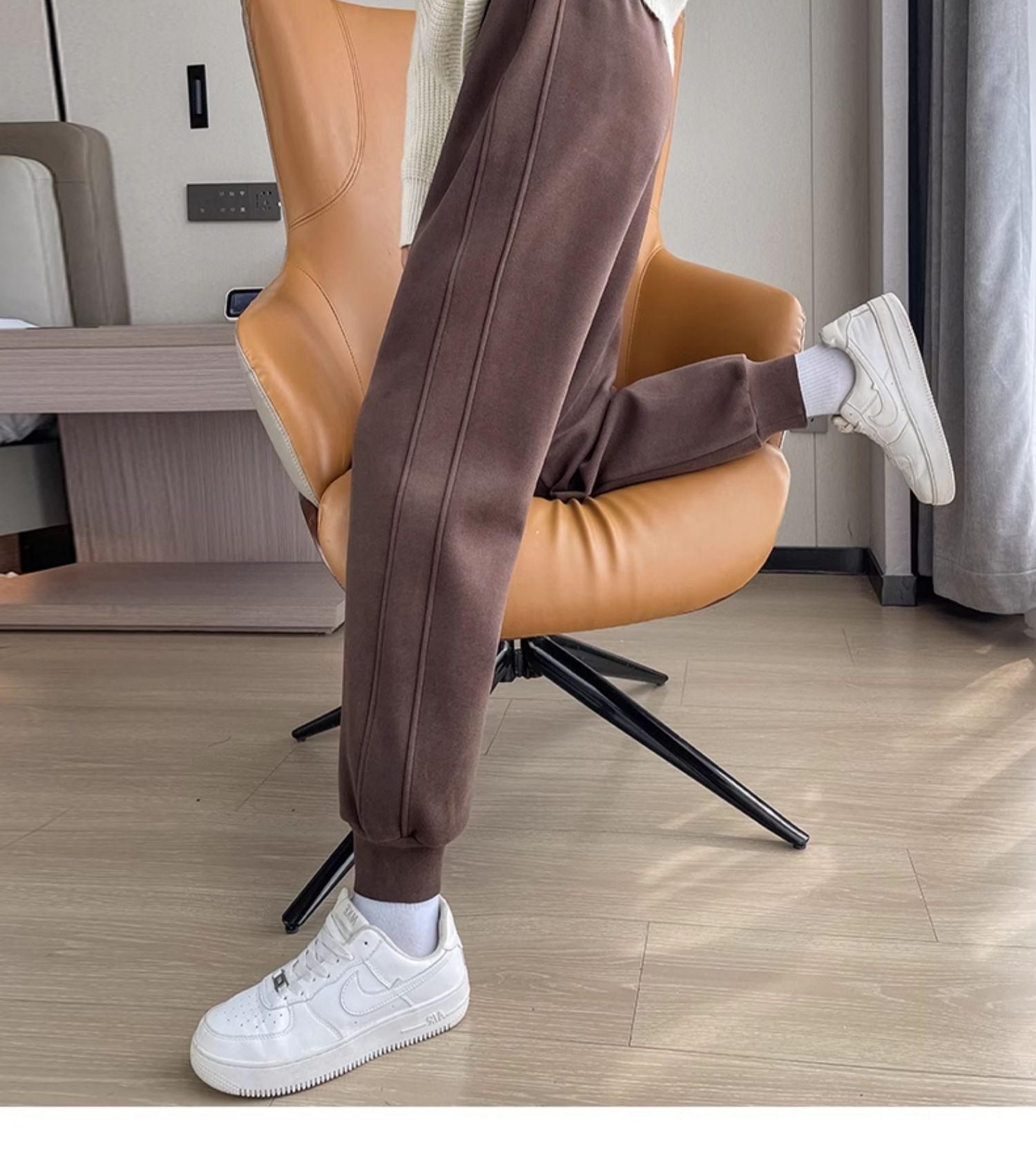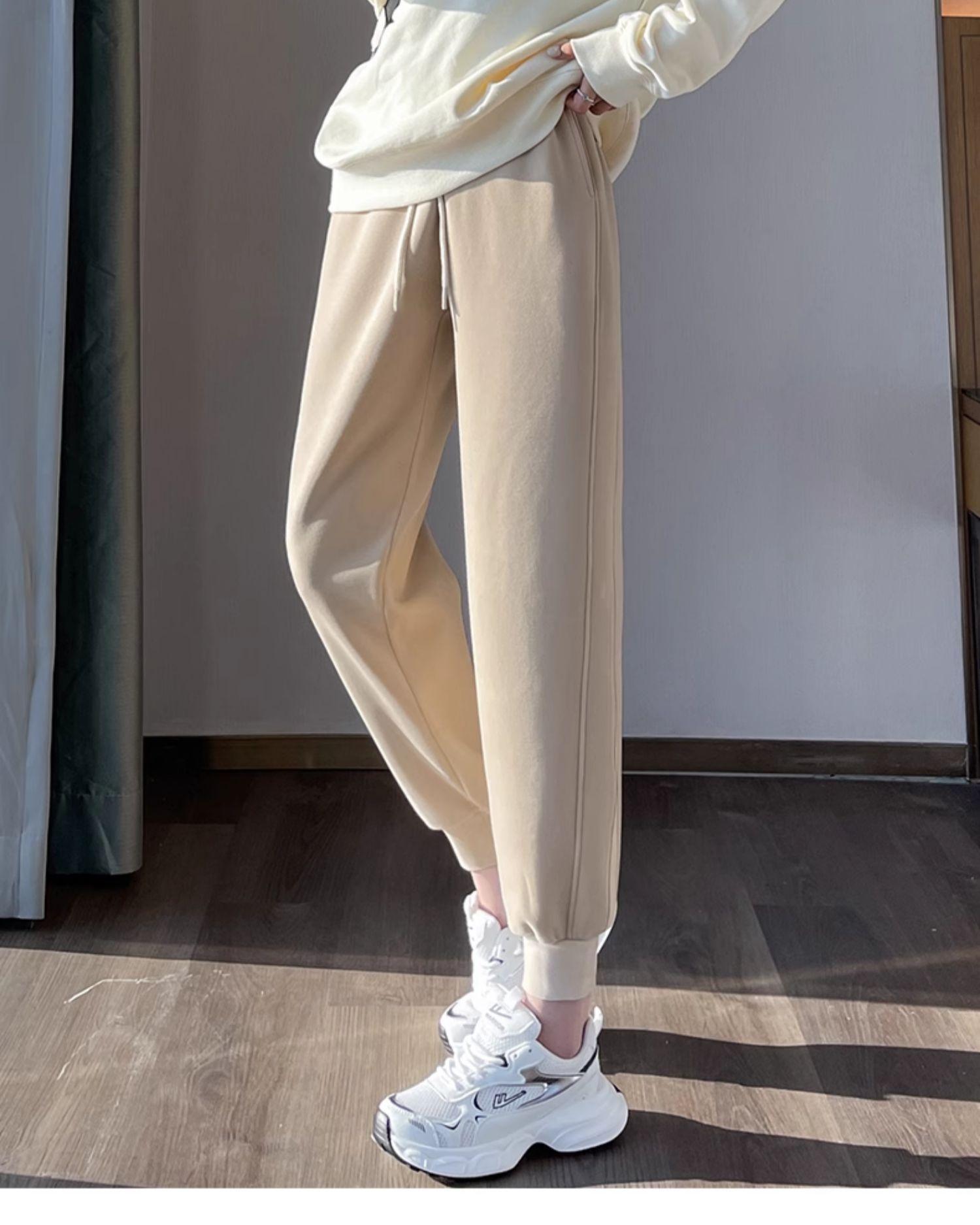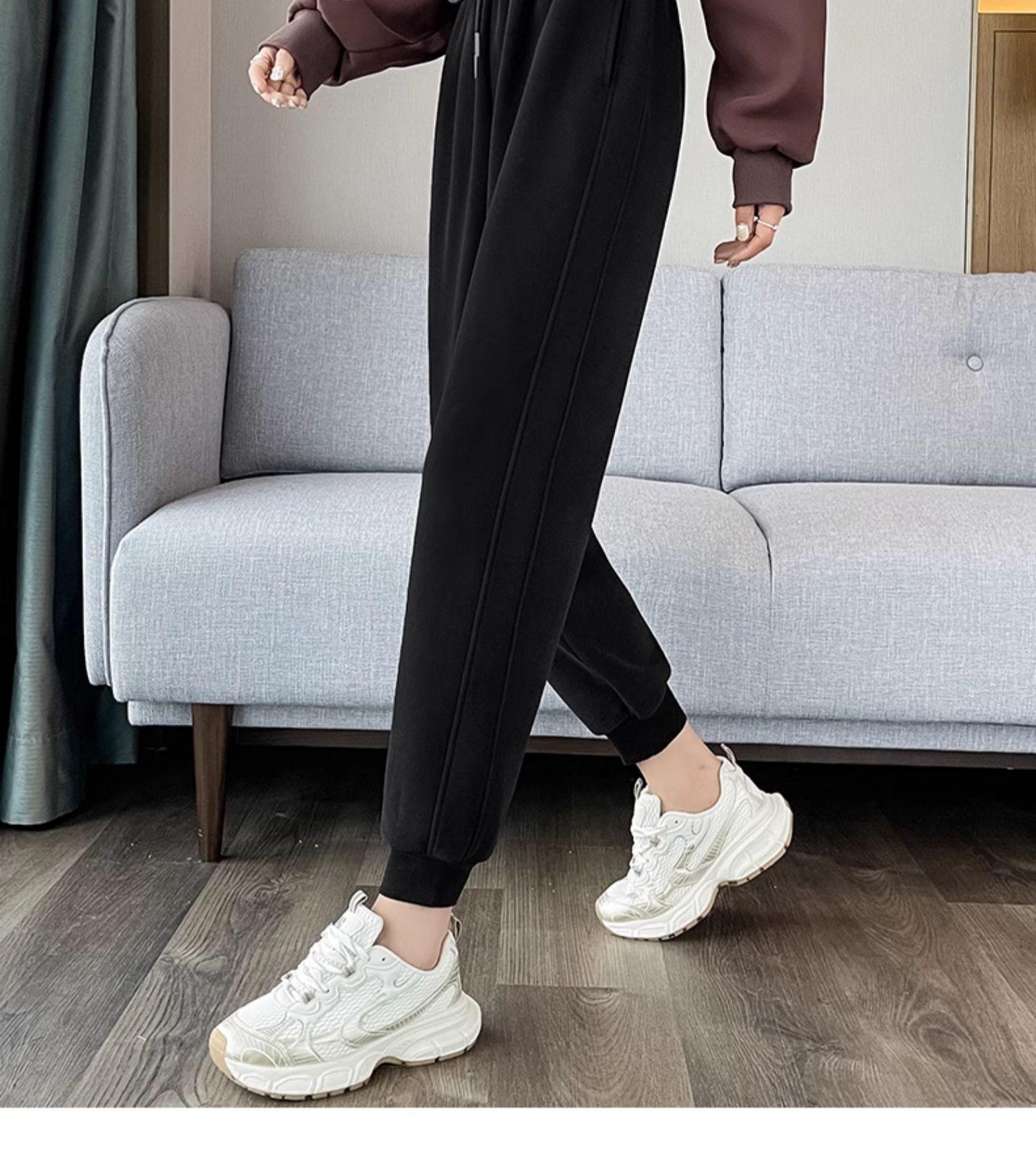 Pantalones deportivos para mujer, otoño e invierno, informales, cálidos, pequeños, a prueba de viento, 2025, nuevos pantalones con forro polar y puntera gruesa