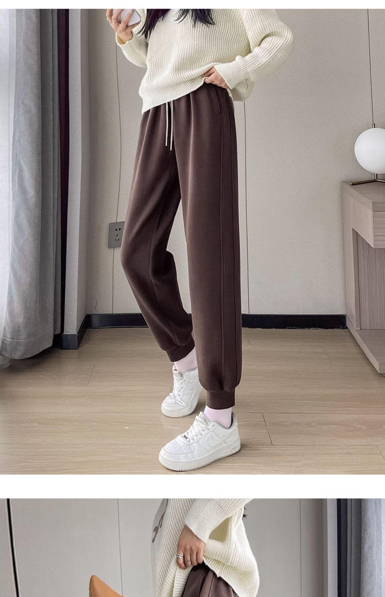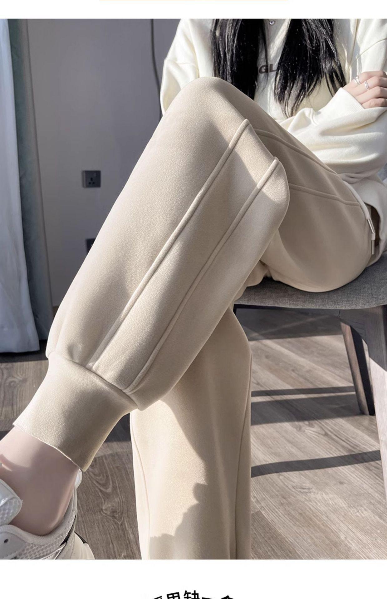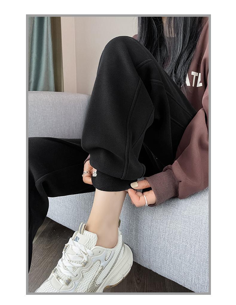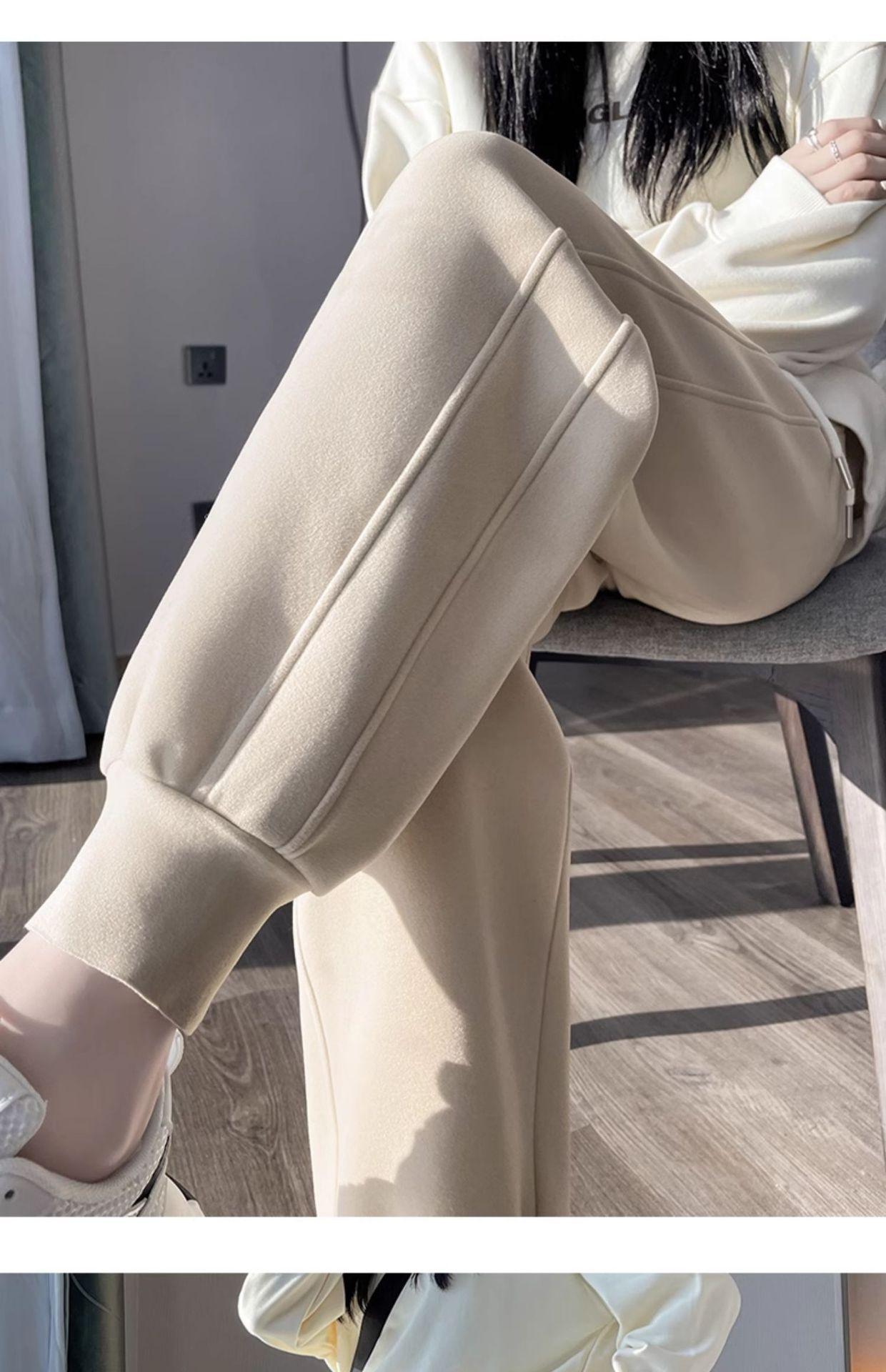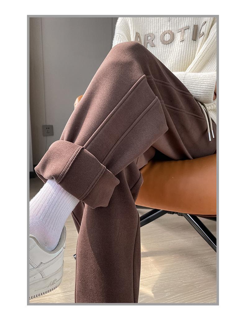 Pantalones deportivos para mujer, otoño e invierno, informales, cálidos, pequeños, a prueba de viento, 2025, nuevos pantalones con forro polar y puntera gruesa