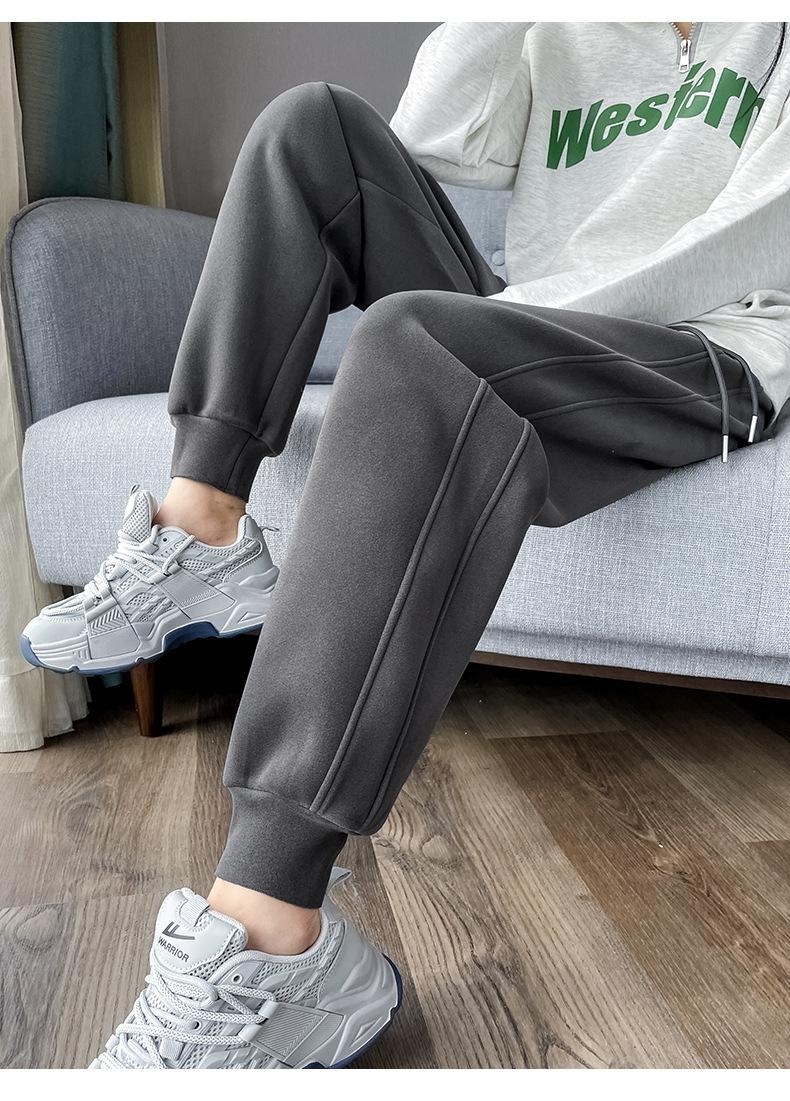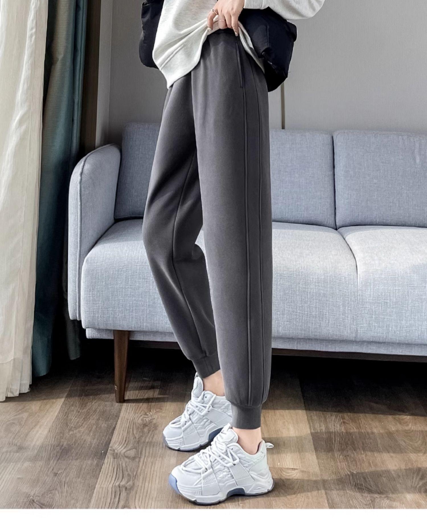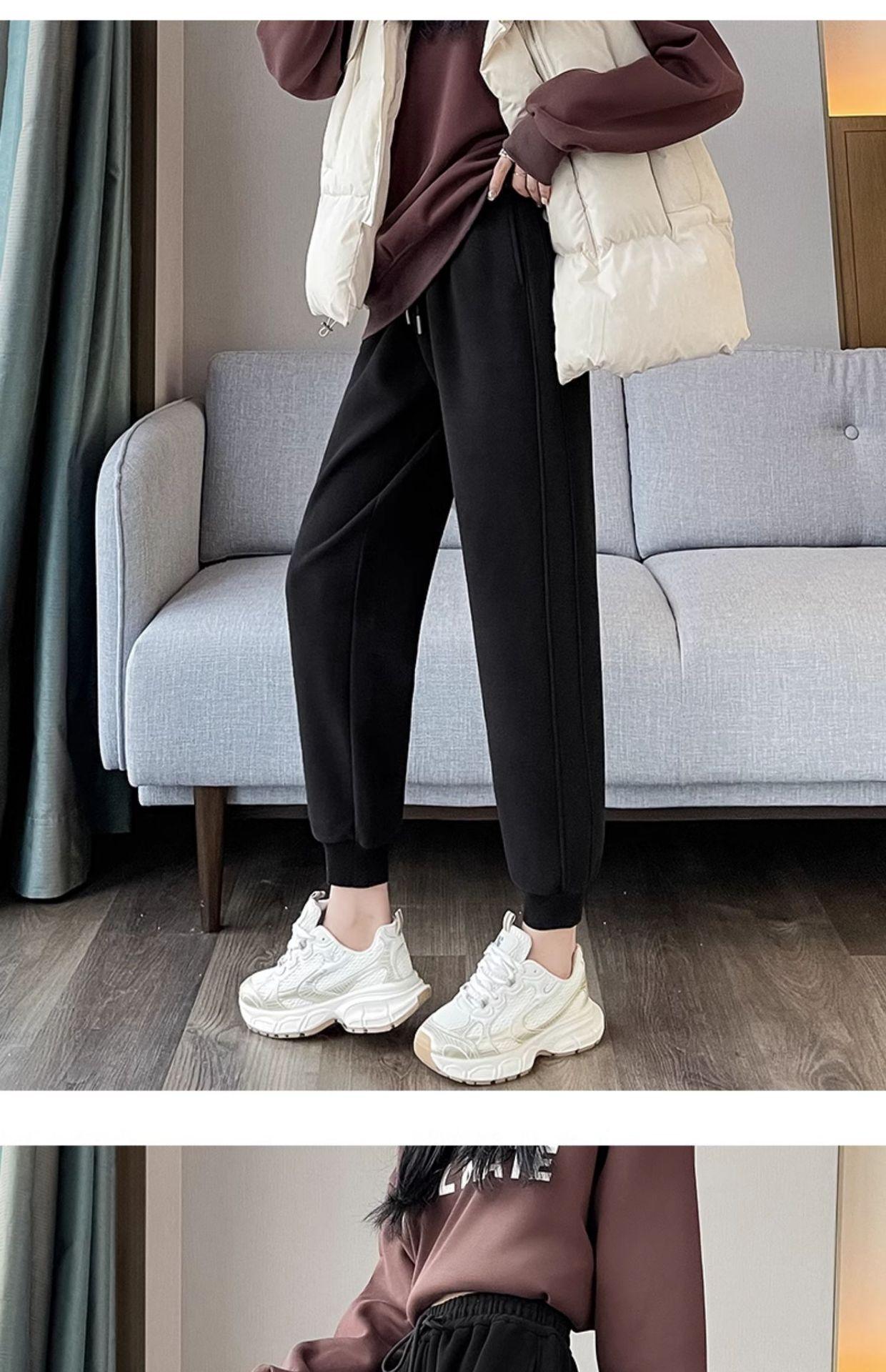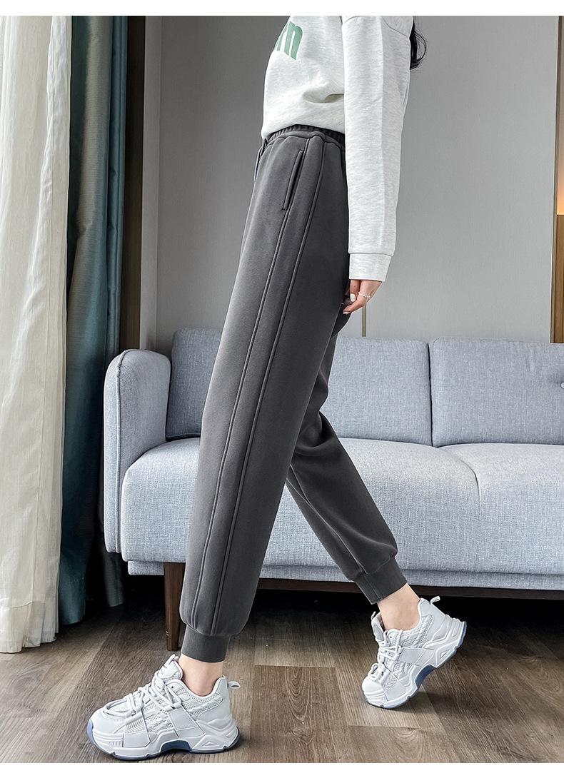 Pantalones deportivos para mujer, otoño e invierno, informales, cálidos, pequeños, a prueba de viento, 2025, nuevos pantalones con forro polar y puntera gruesa
