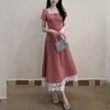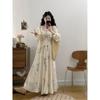 Vestido estilo francés de talla grande para mujer, falda con estampado vintage en forma de pera de primavera, falda acampanada que cubre el vientre y adelgaza para chica gordita