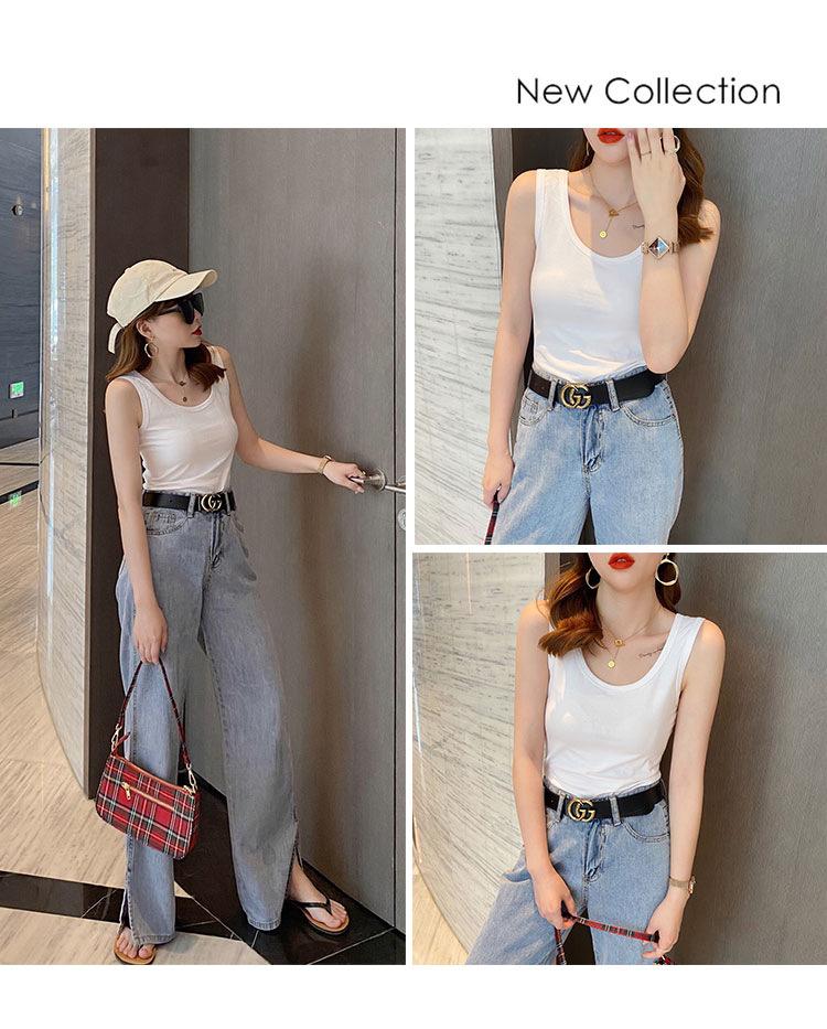 Top Interior Estilo Coreano Delgado Básico Versátil Camisola sin Mangas Algodón Puro Ropa Exterior Camiseta para Fondo Verano