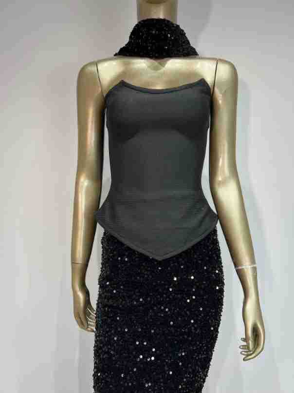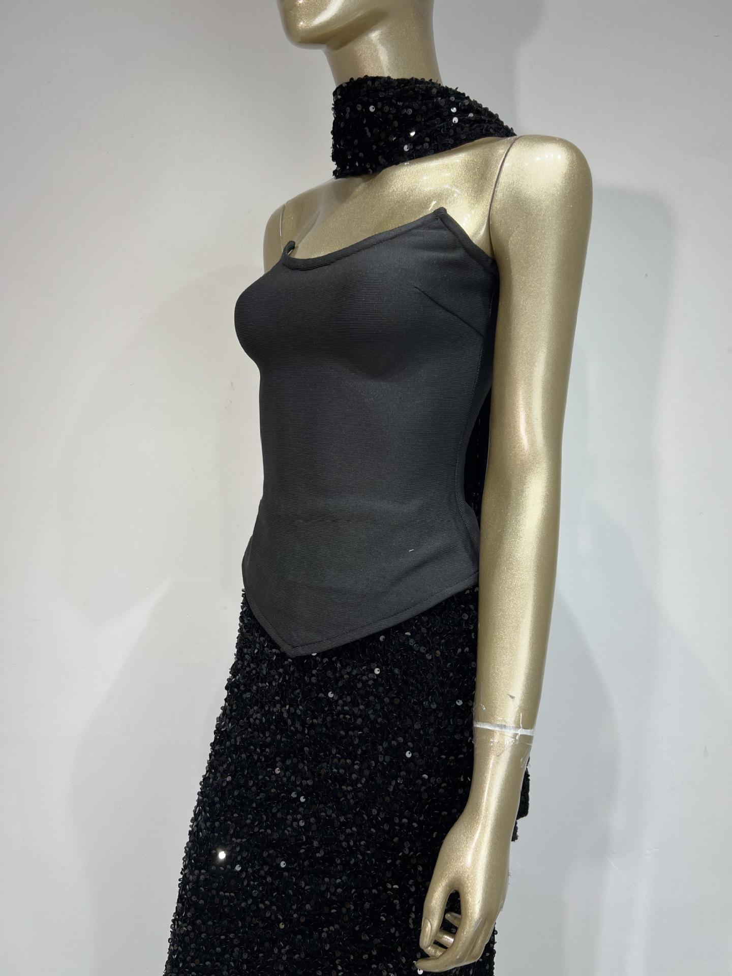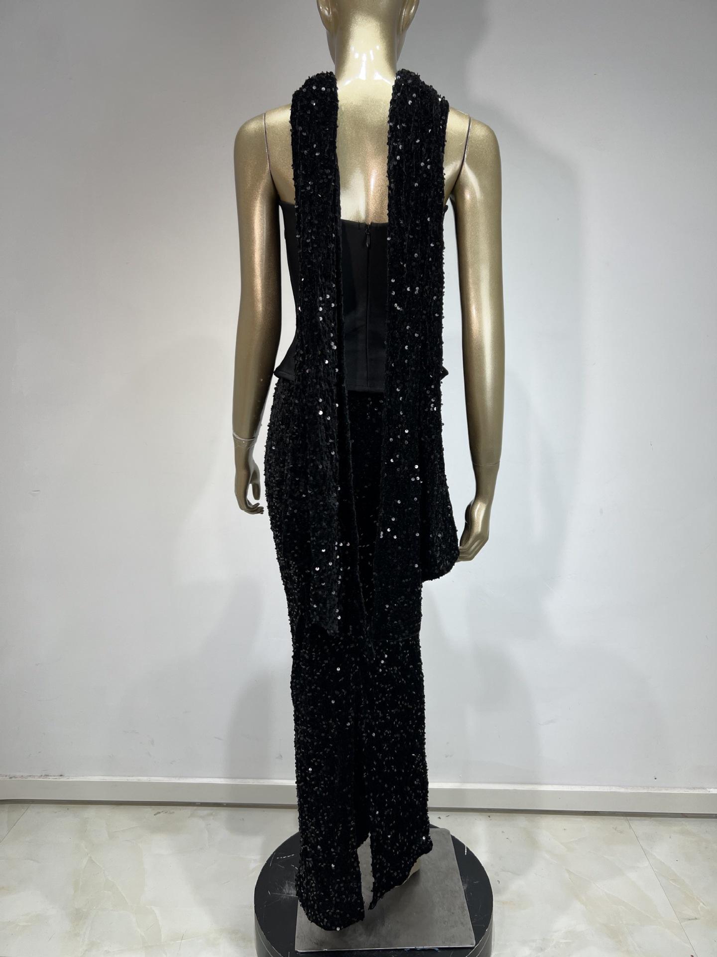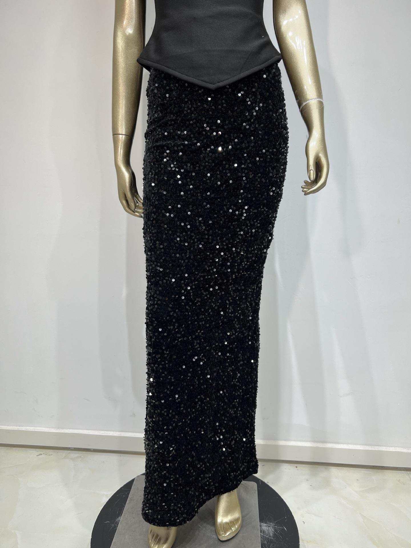 Amazon Aliexpress Popular Vestido de Fiesta Banquete Traje Vendaje Tubo Top Falda Larga Lentejuelada Conjunto de Dos Piezas