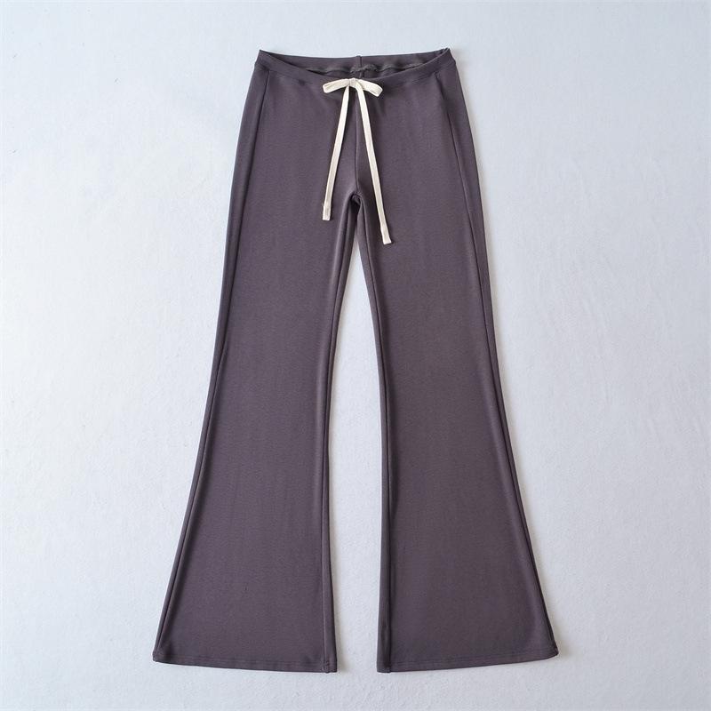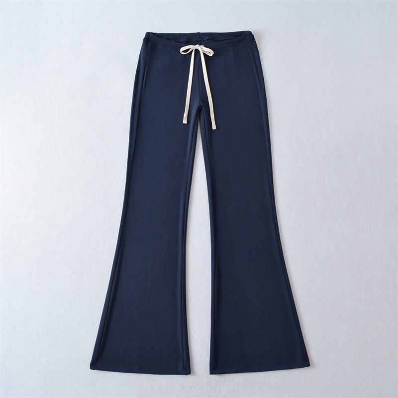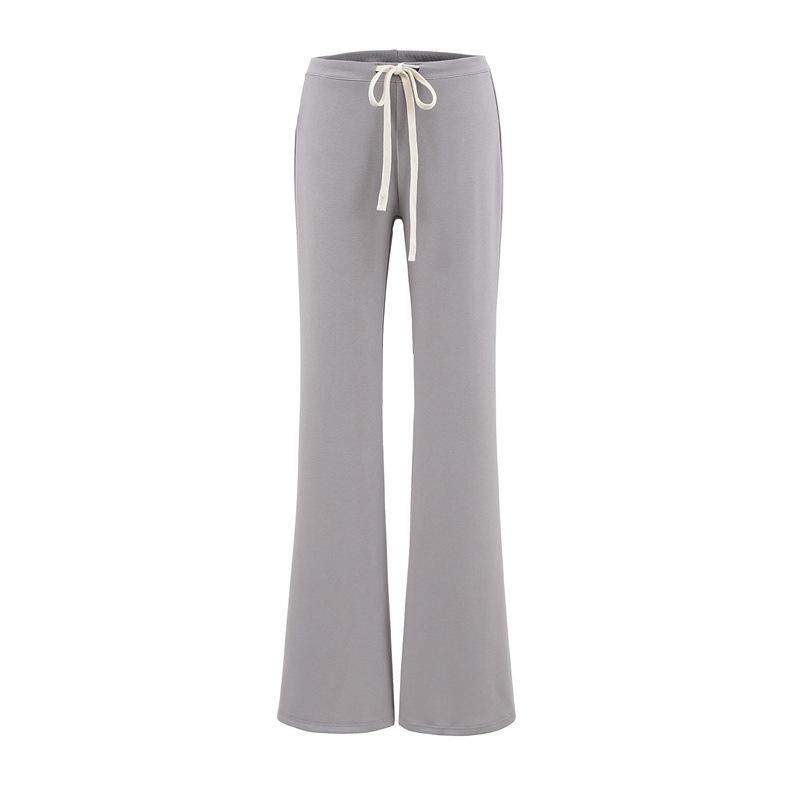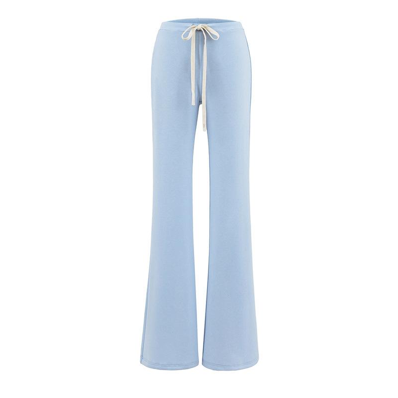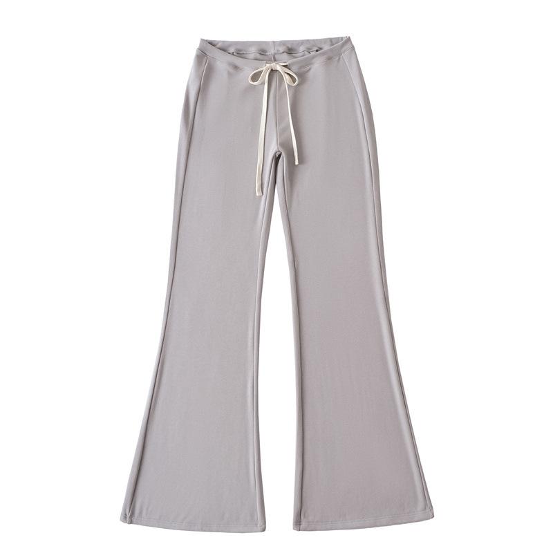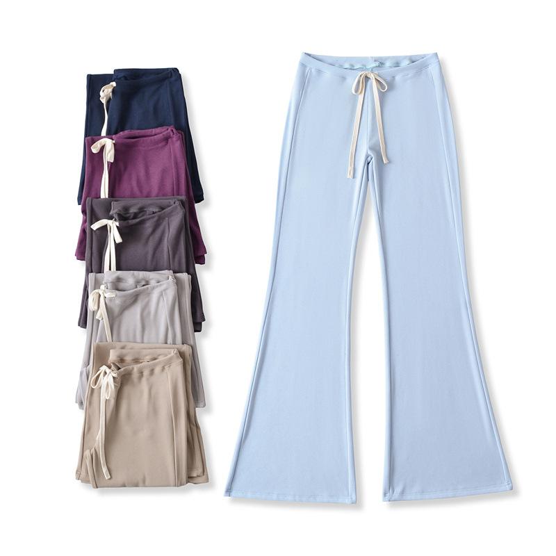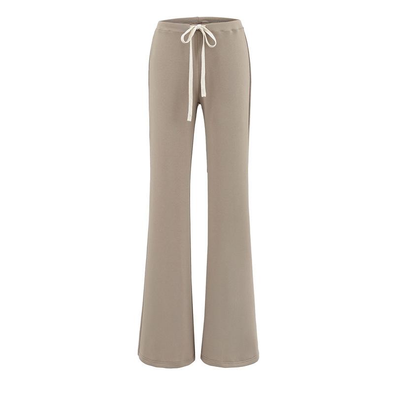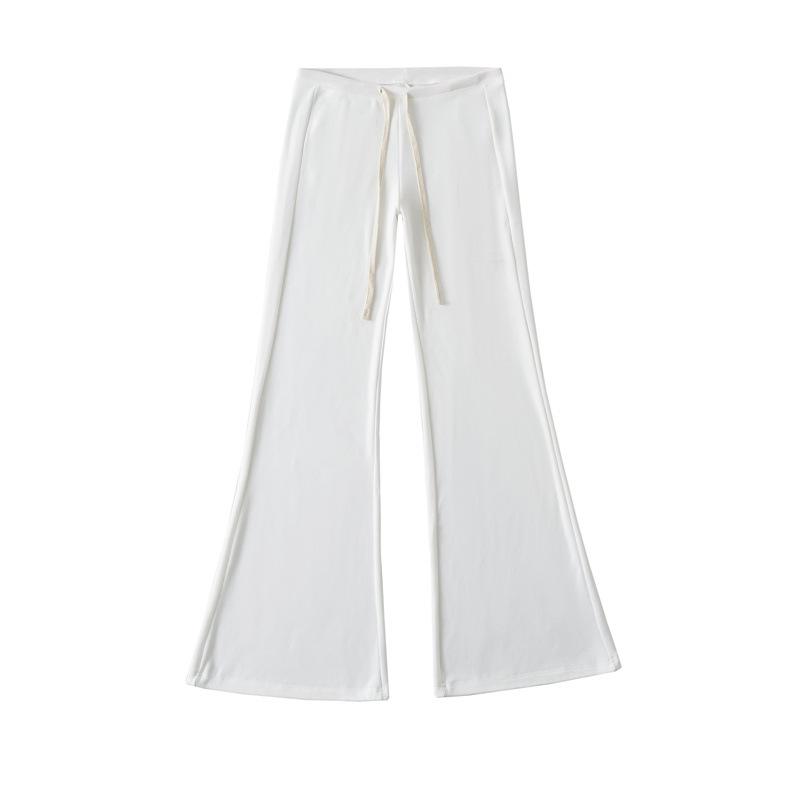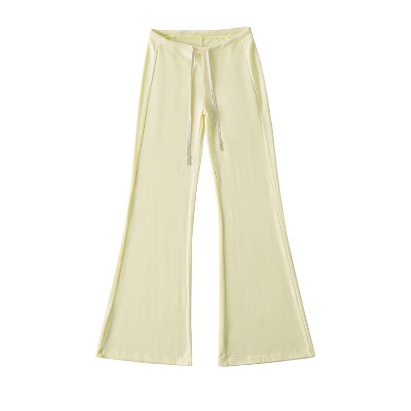 2025 Verano Nuevo Color Sólido Casual Moda Drapeado Cintura Baja Pantalones Largos hasta el Piso con Cordón Color Sólido Pierna Recta Acampanados Pantalones Largos para Mujer