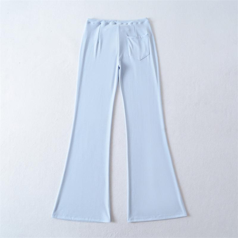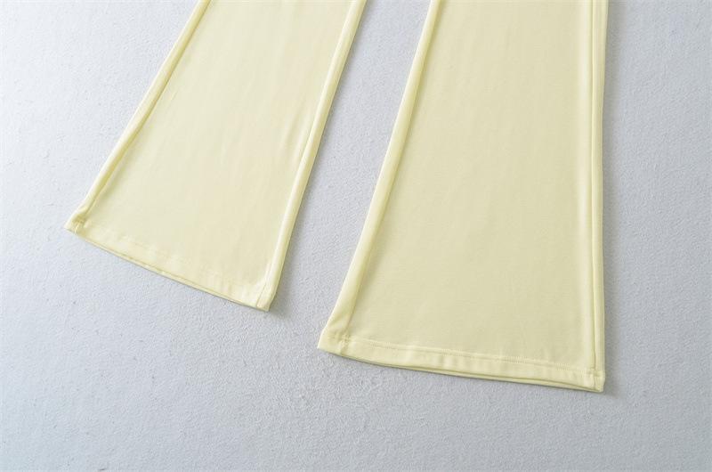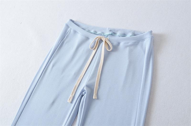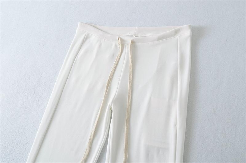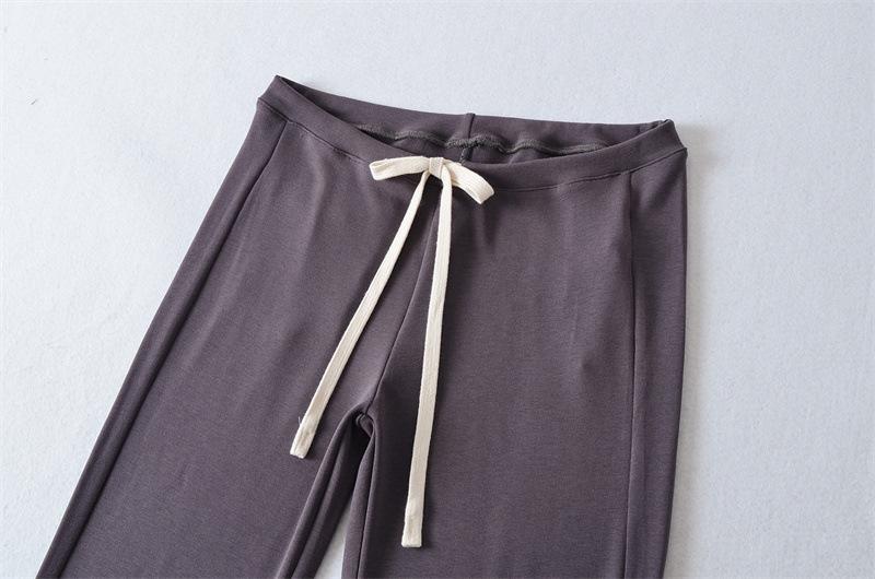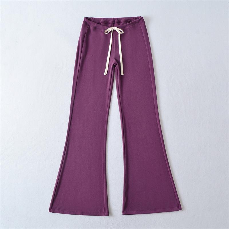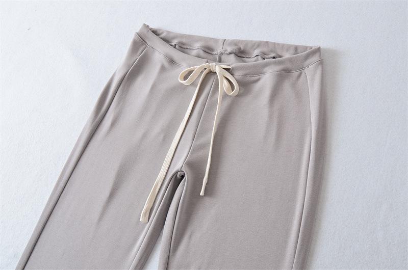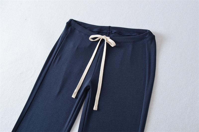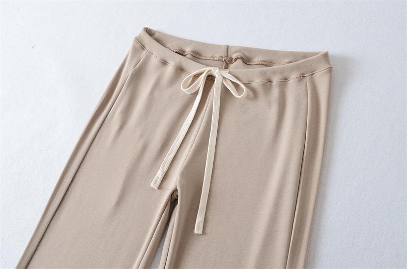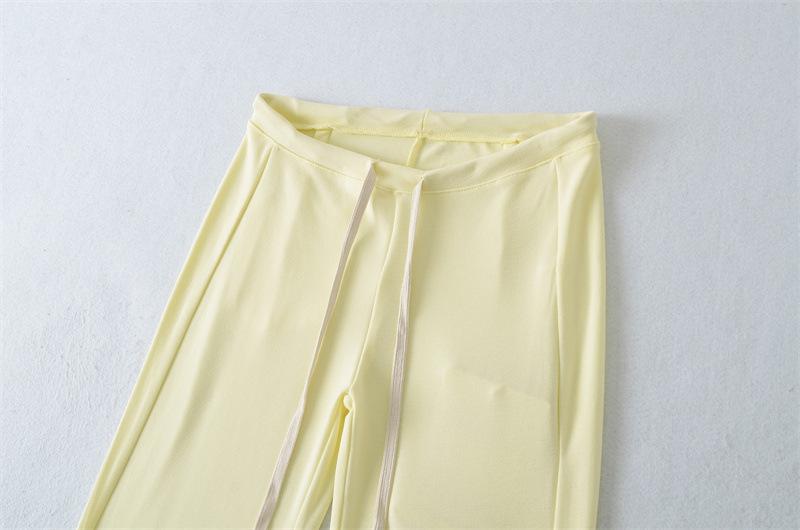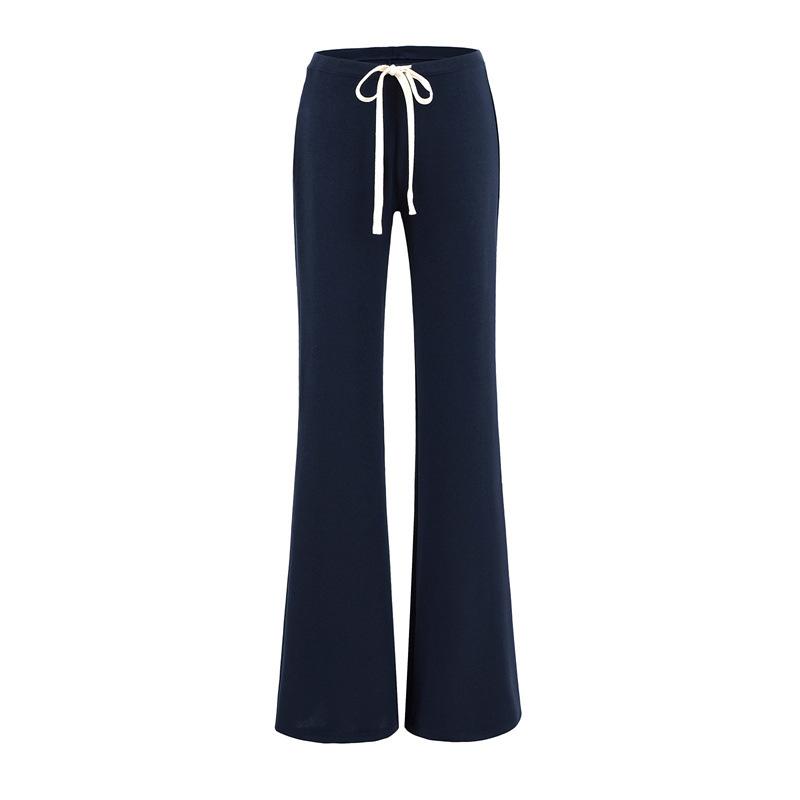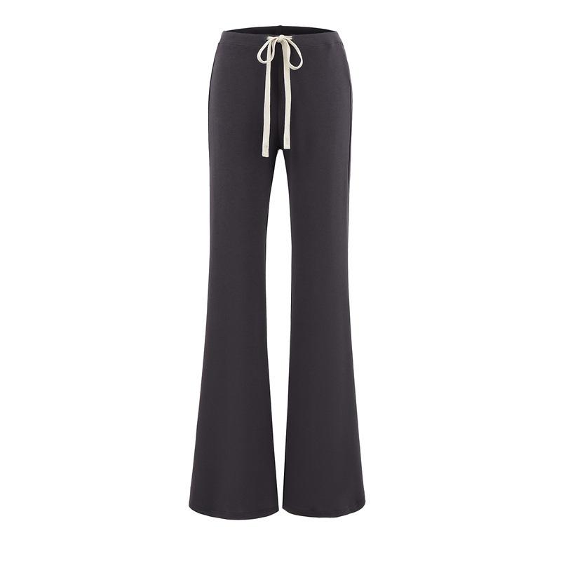 2025 Verano Nuevo Color Sólido Casual Moda Drapeado Cintura Baja Pantalones Largos hasta el Piso con Cordón Color Sólido Pierna Recta Acampanados Pantalones Largos para Mujer