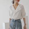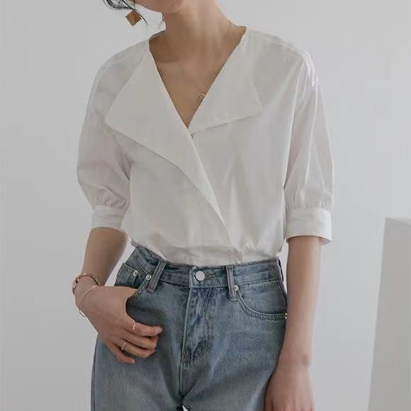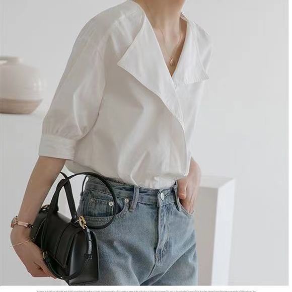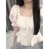 Camisa de Manga Corta Diseño Nicho para Mujer Camisa Blanca para Mujer Nuevo Verano 2022 Top Retro Francés de Manga Corta