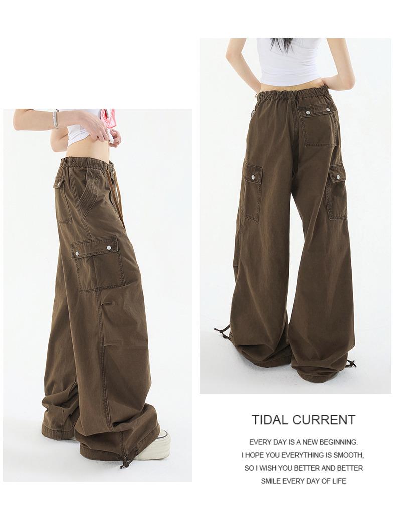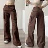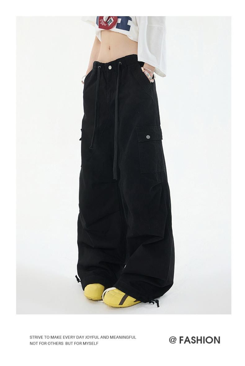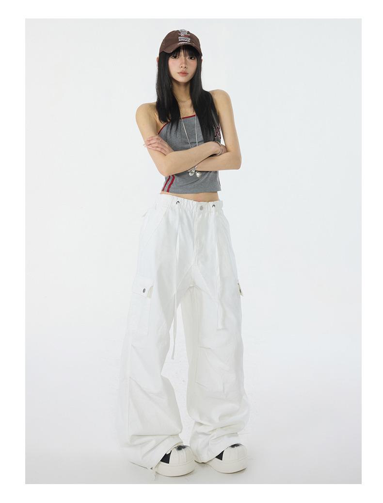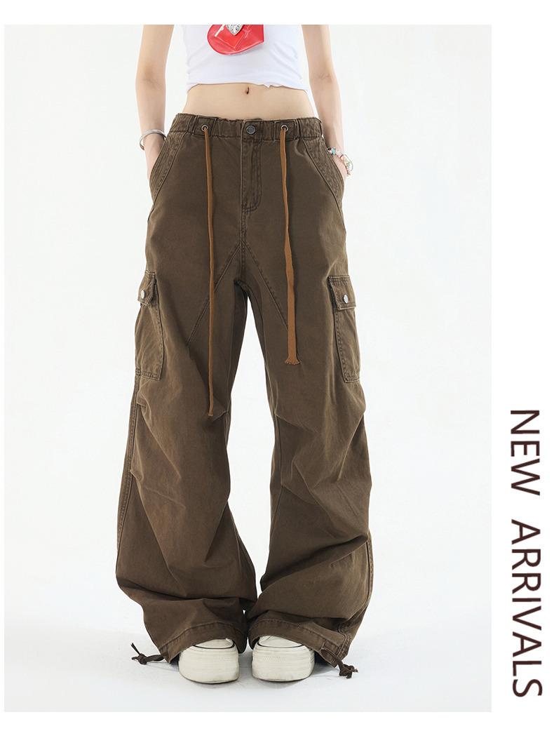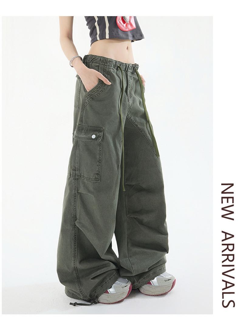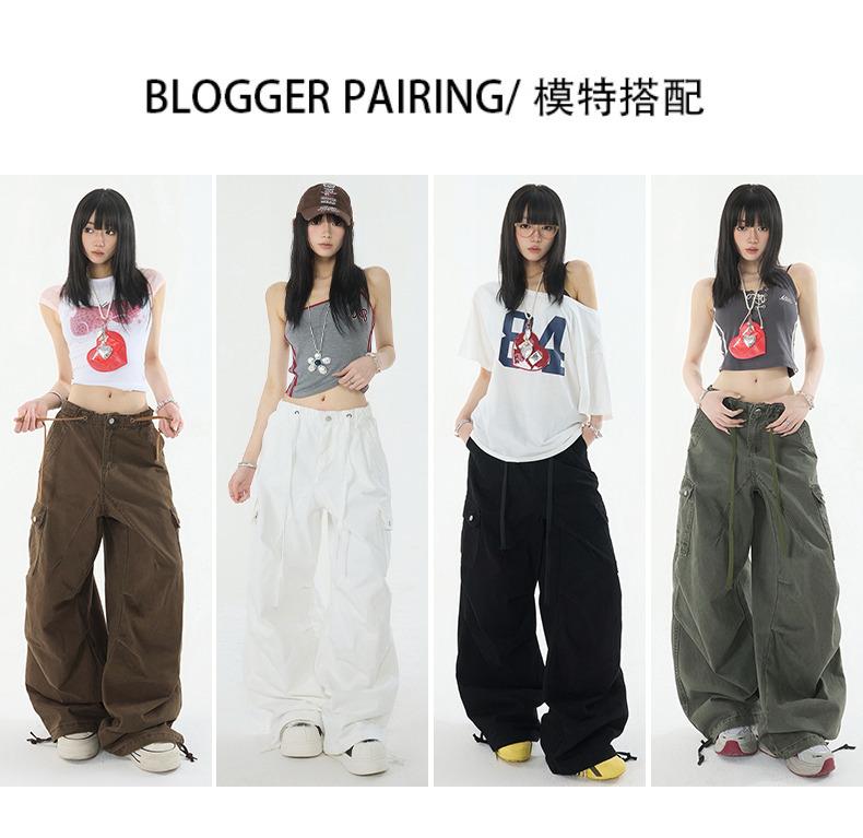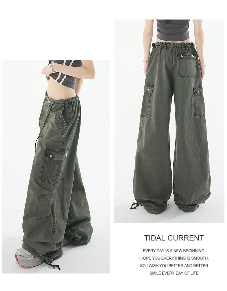 Pantalones Cargo Casuales de Moda Urbana de Cintura Alta para Mujer, Primavera y Verano Nuevo Retro Suelto Adelgazante Acampanado de Pierna Ancha