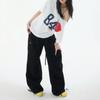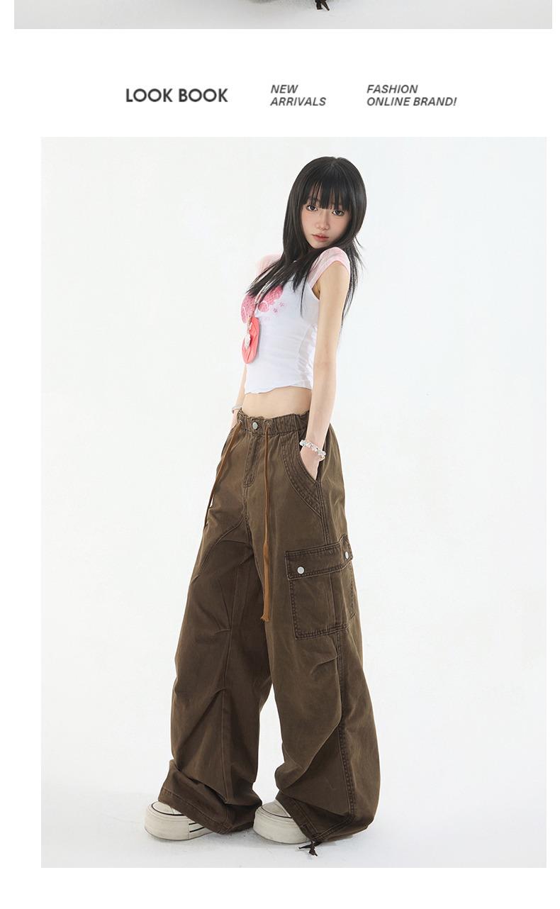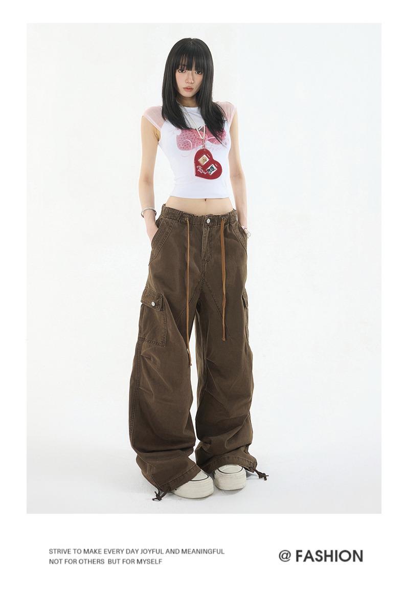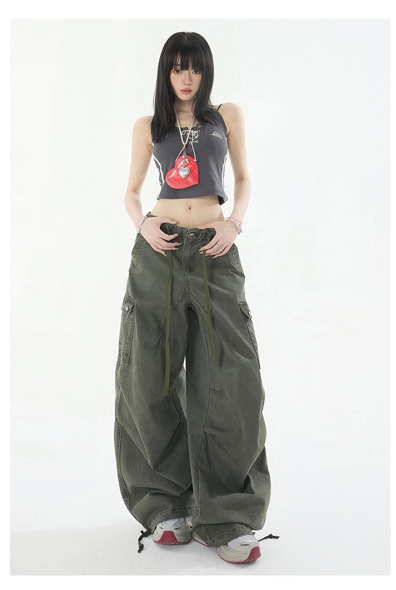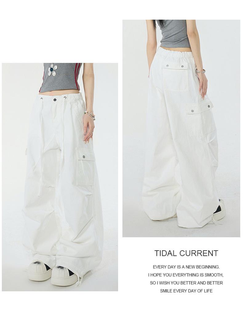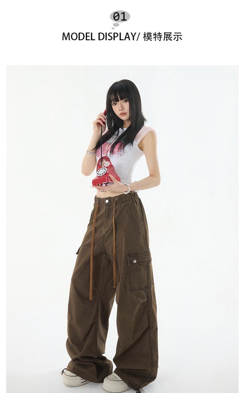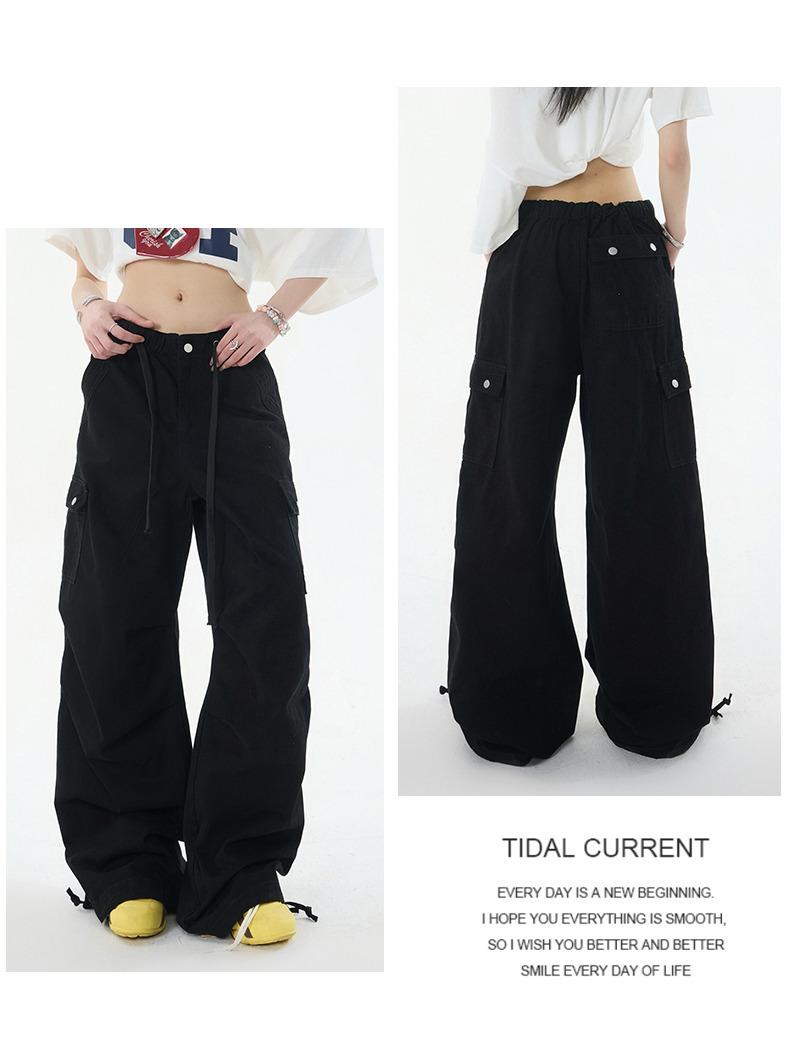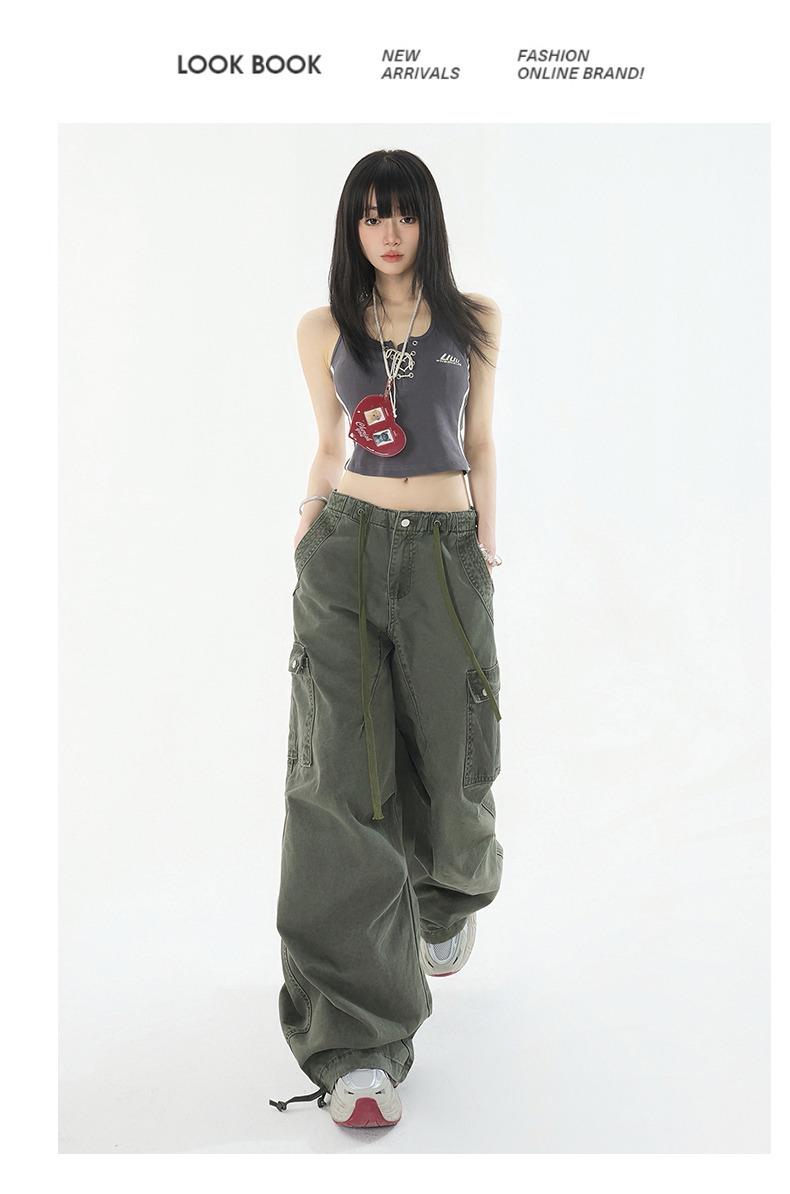 Pantalones Cargo Casuales de Moda Urbana de Cintura Alta para Mujer, Primavera y Verano Nuevo Retro Suelto Adelgazante Acampanado de Pierna Ancha
