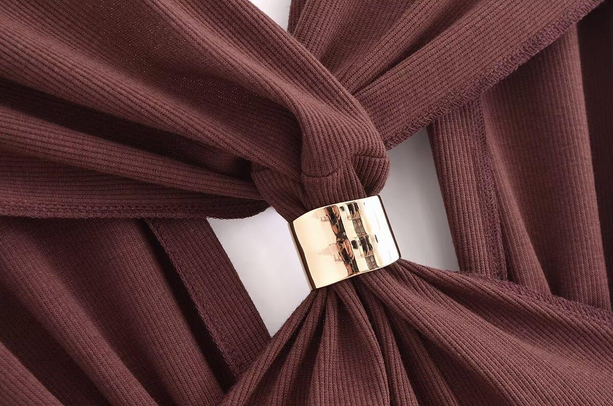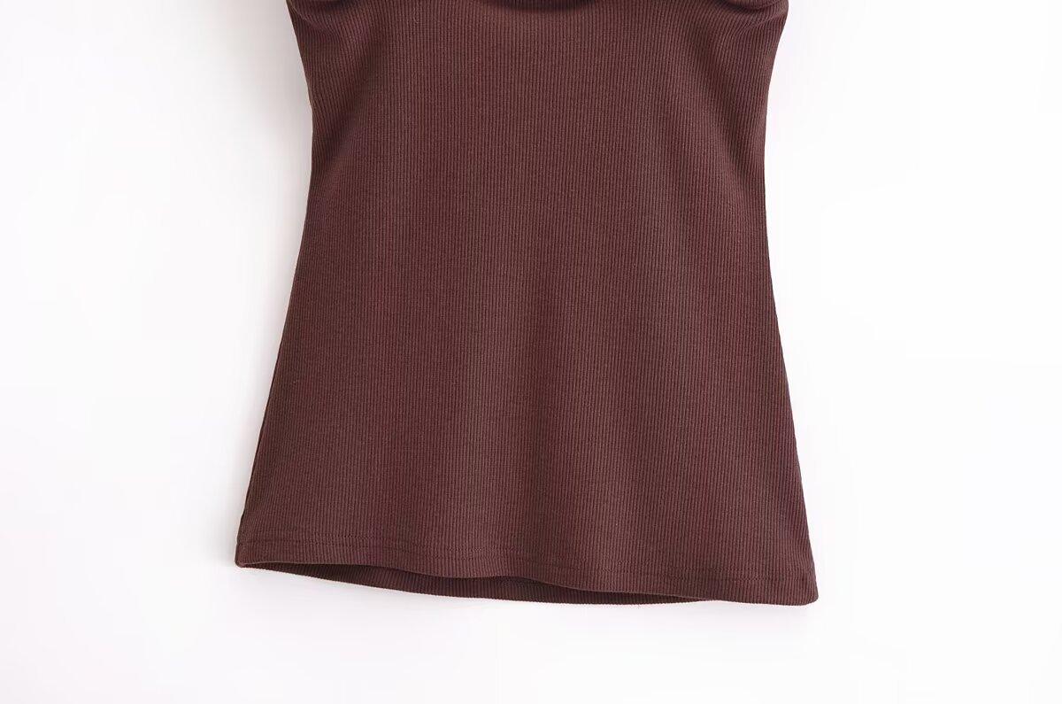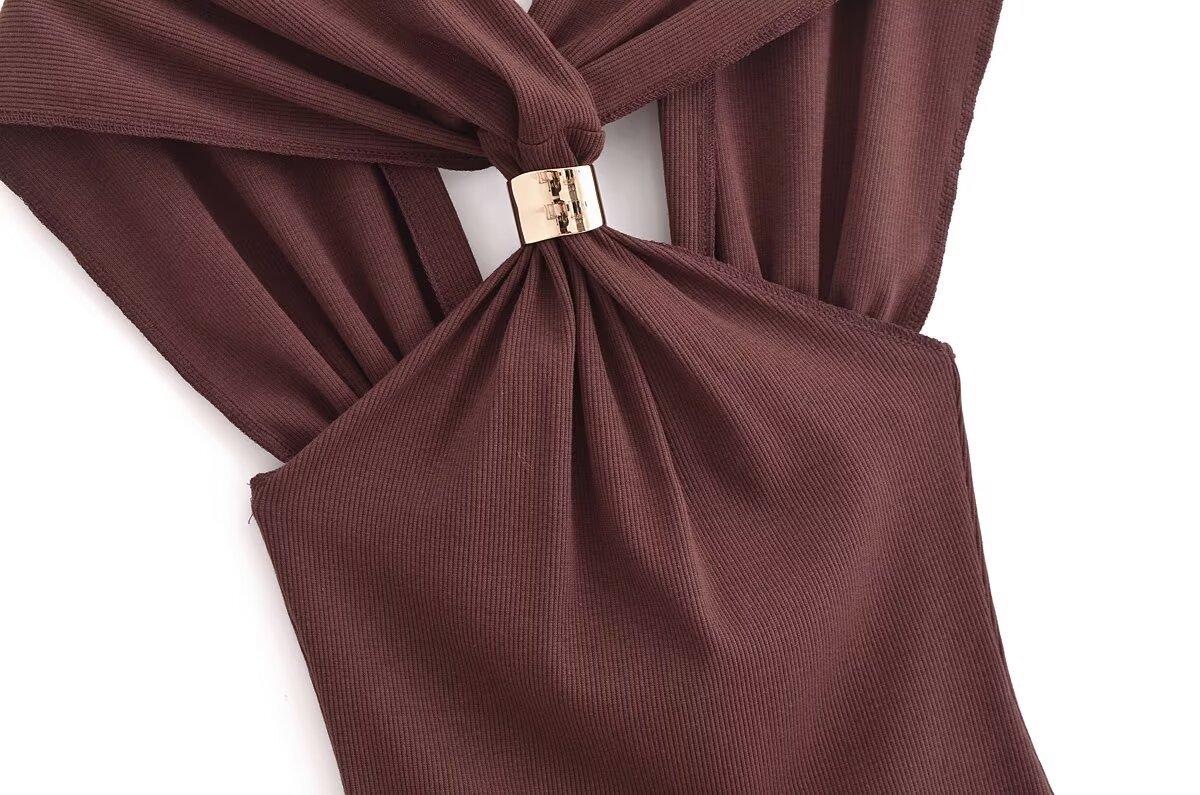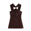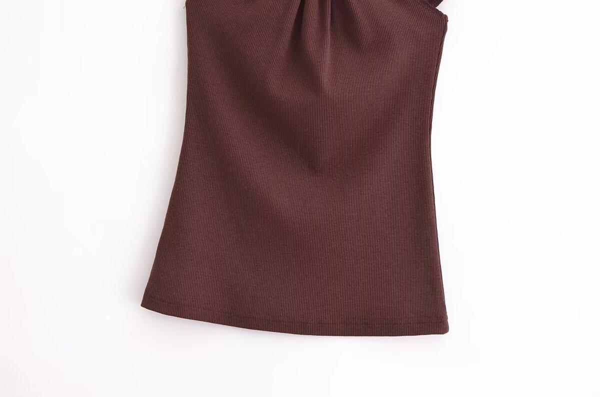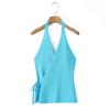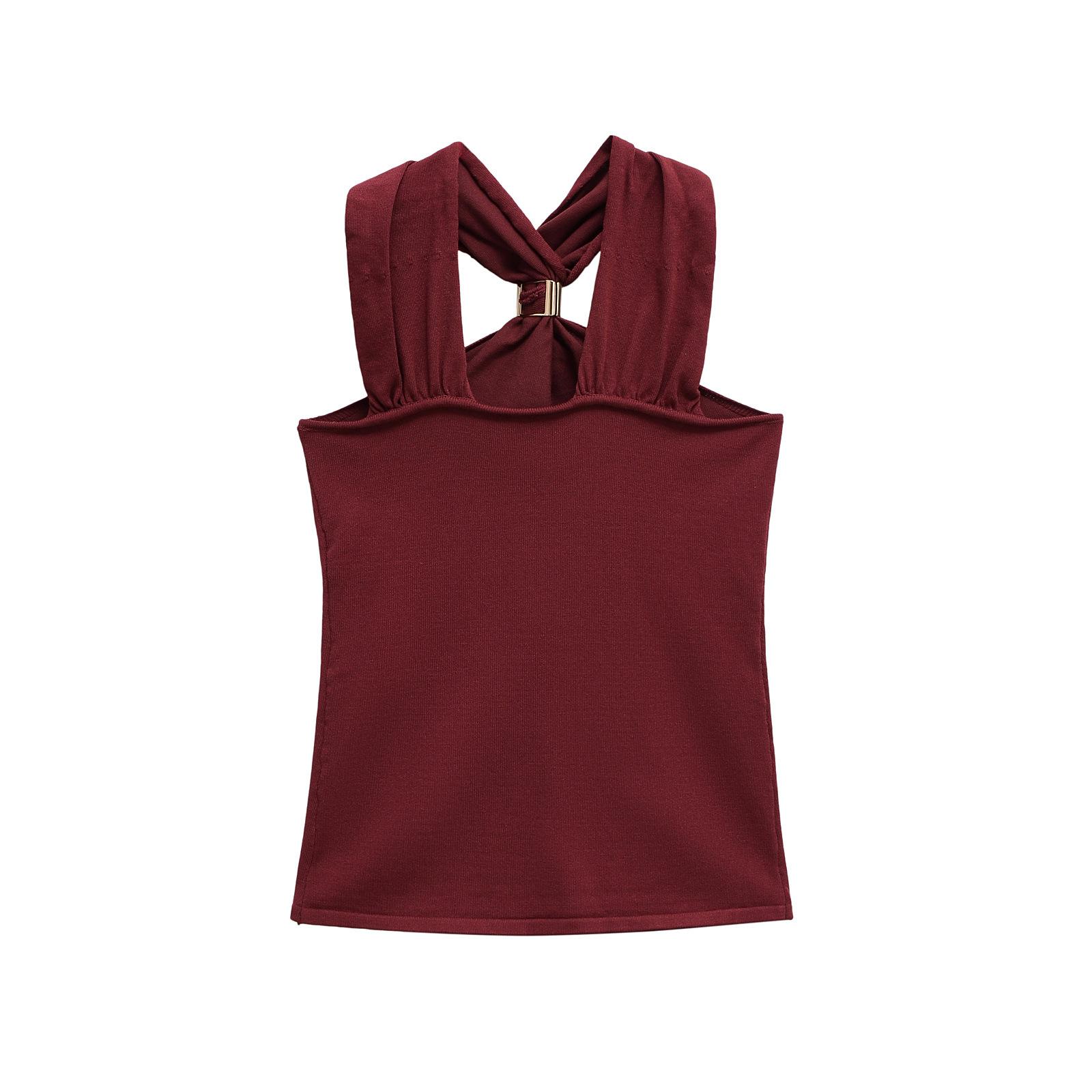 Ropa de mujer europea y americana transfronteriza primavera y verano 2025 nueva blusa de punto con cuello colgante y tirantes anchos con incrustaciones de metal 4938116