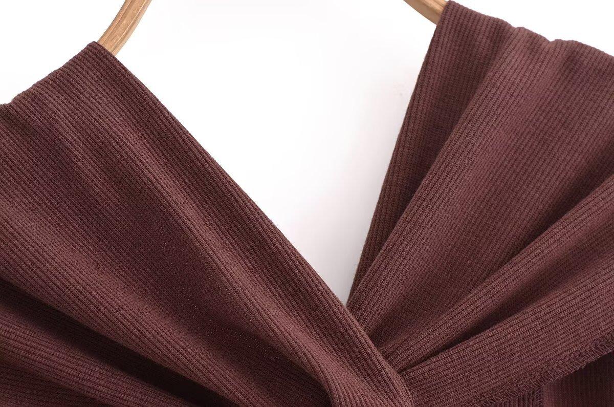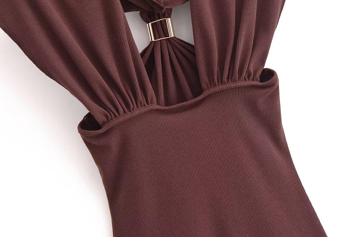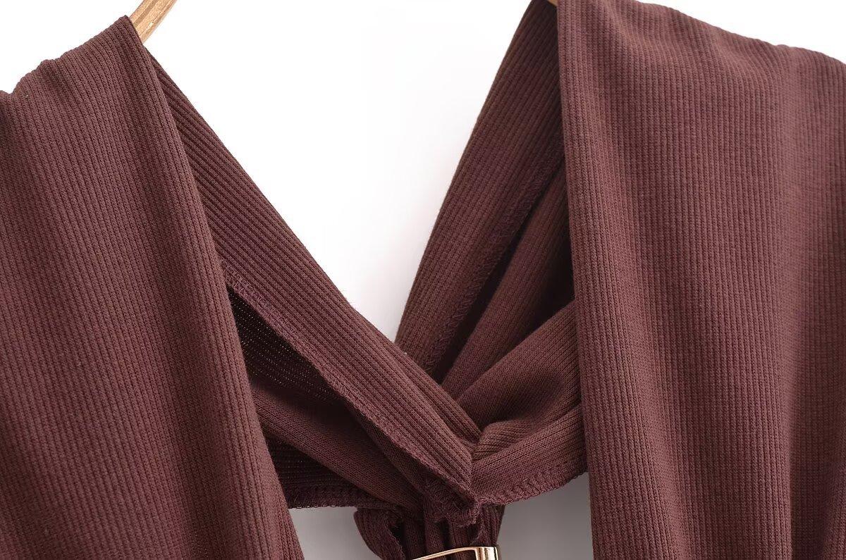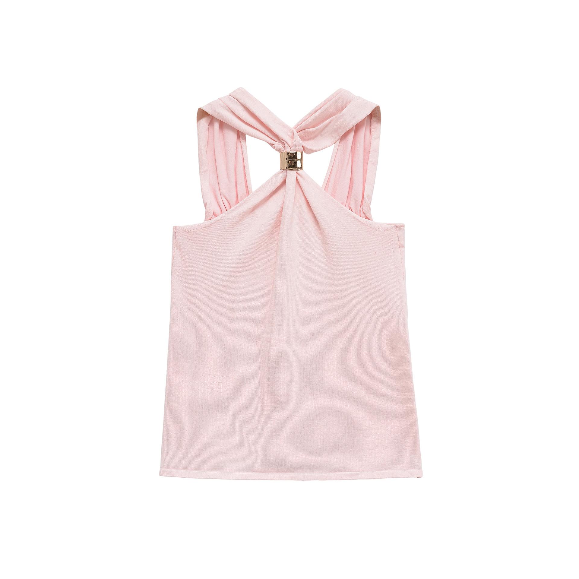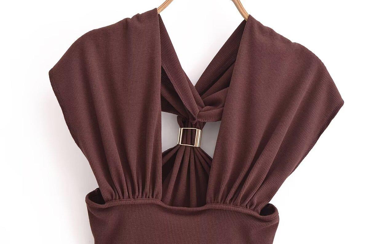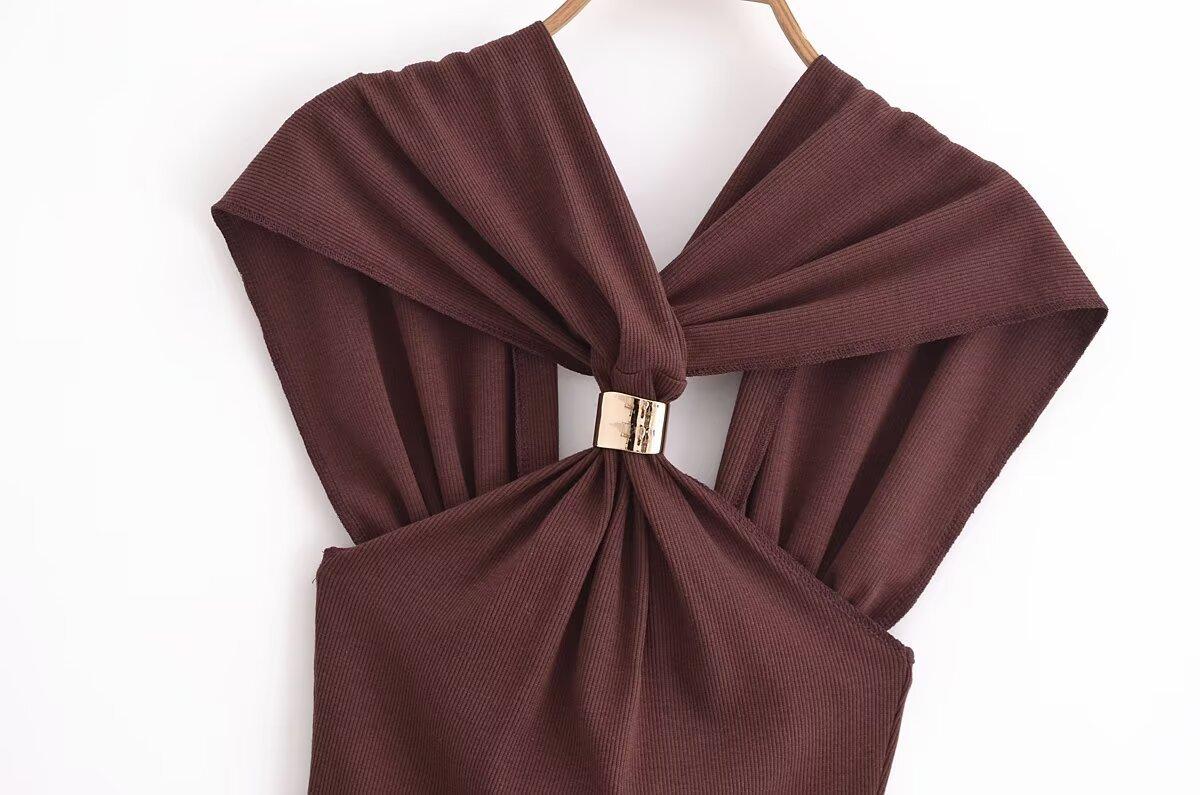 Ropa de mujer europea y americana transfronteriza primavera y verano 2025 nueva blusa de punto con cuello colgante y tirantes anchos con incrustaciones de metal 4938116