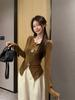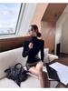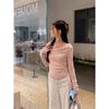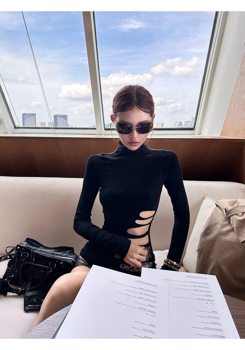 Otoño Spice Girls Sexy Deseo Puro Diseño Nicho Sentido Camiseta Manga Larga Ajustada Adelgazante Hueca Top Cuello Alto Ins Mujeres