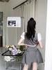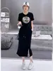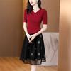 Traje de vestido de manga corta para mujer, verano nuevo estilo occidental adelgazante con cordones, camiseta de manga corta, falda de malla, conjunto de dos piezas