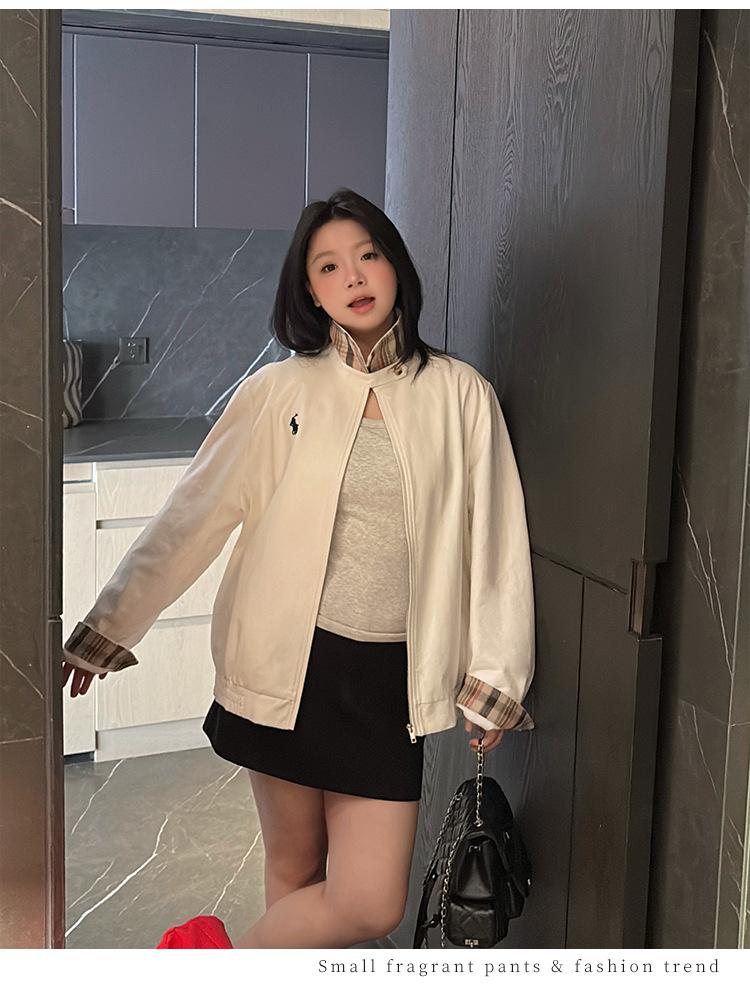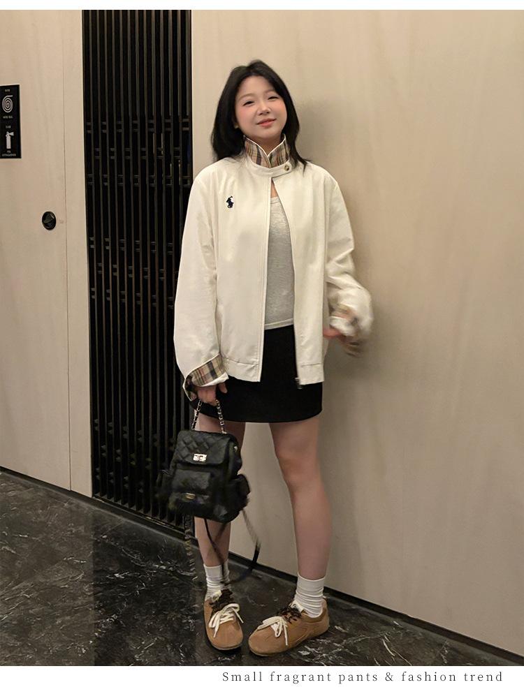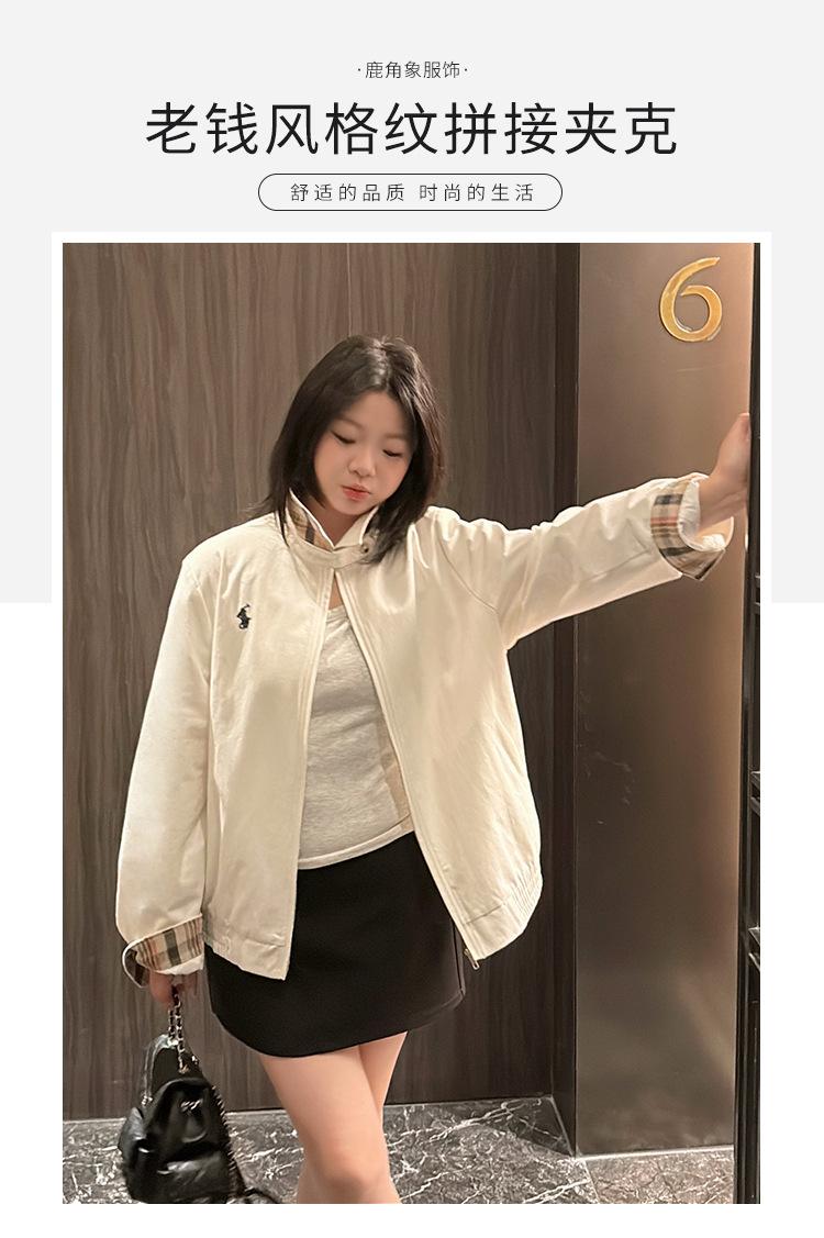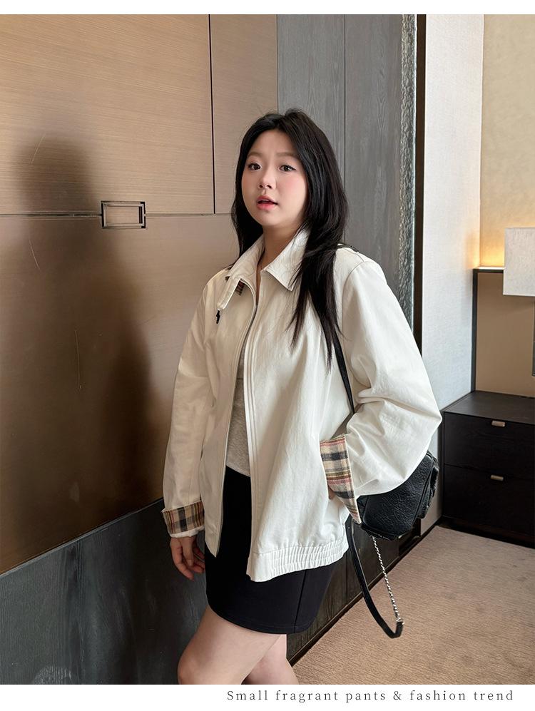 Talla grande Abrigo de solapa patchwork de cuadros vintage estilo americano para mujer Top de chaqueta de algodón casual estilo perezoso para mujer
