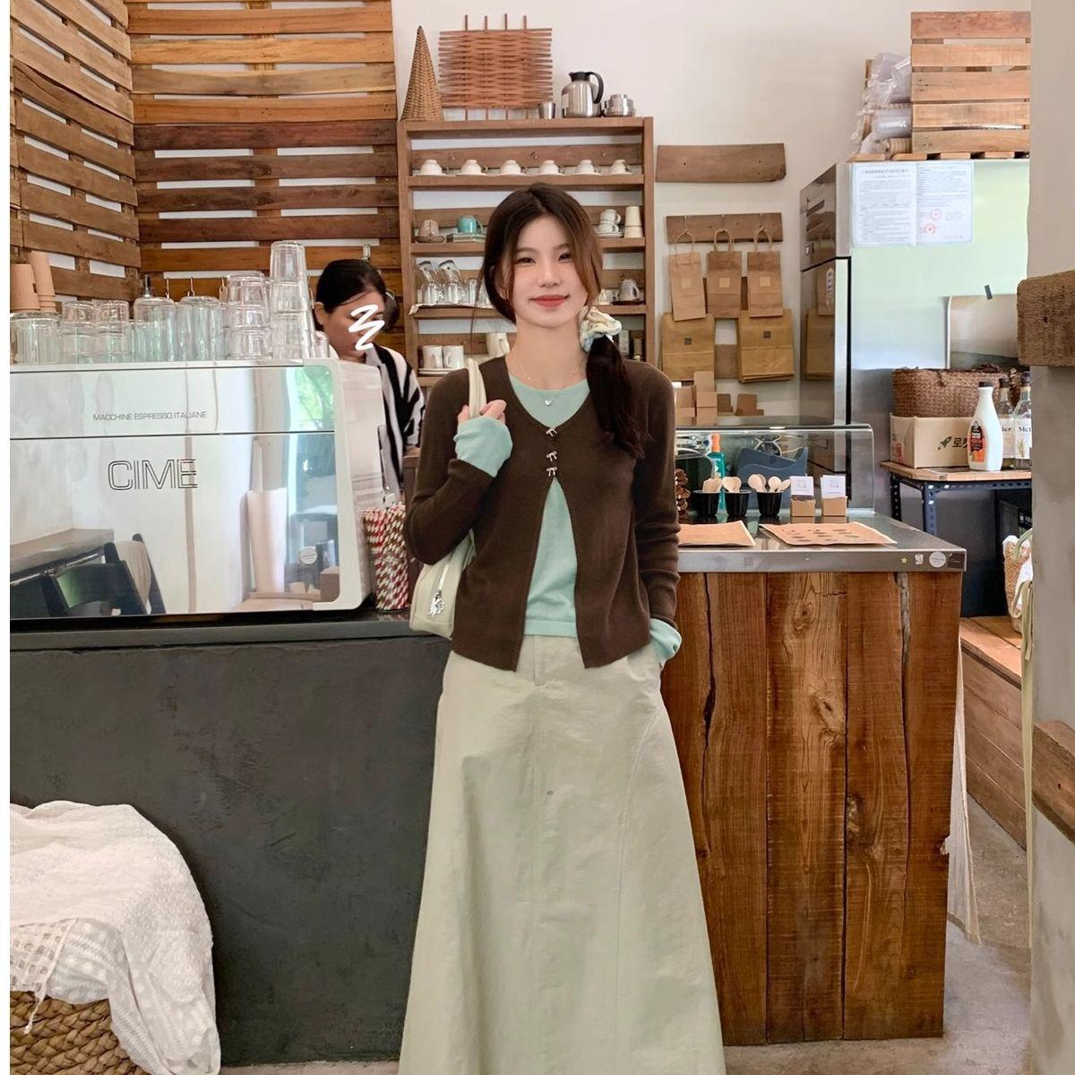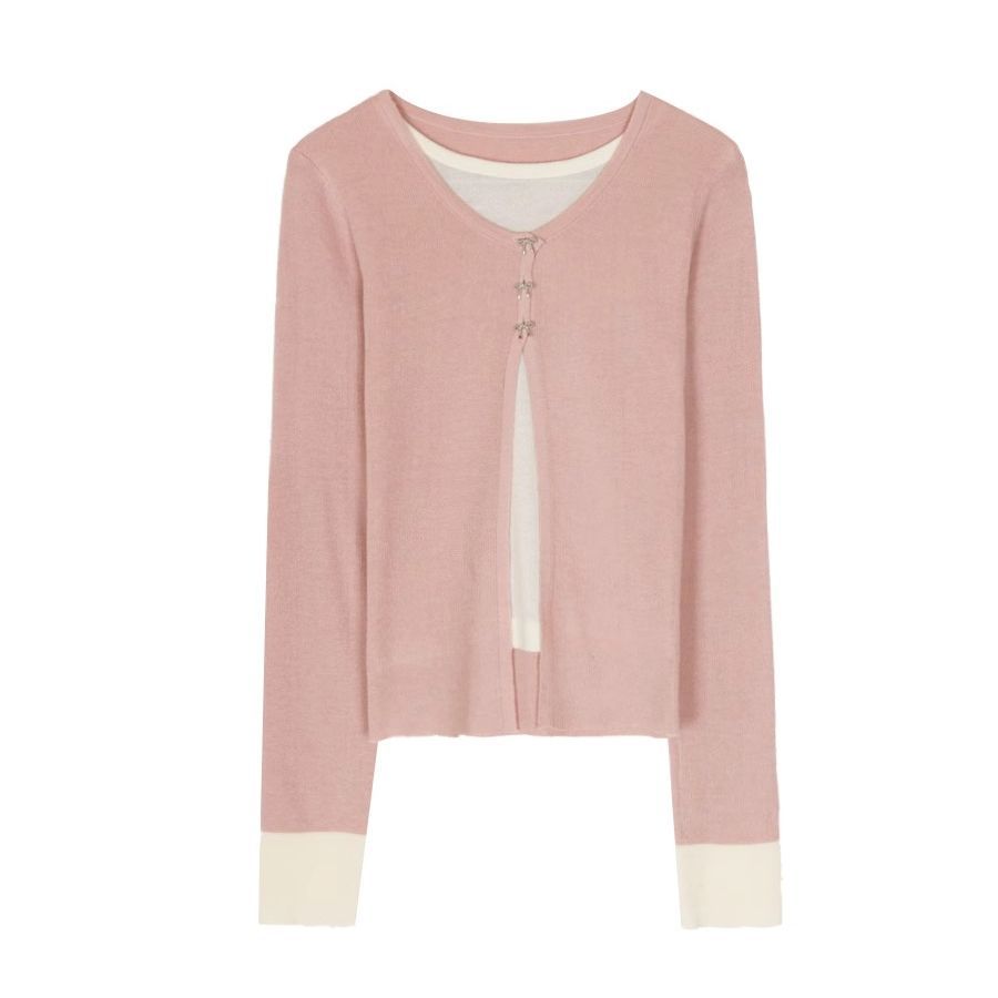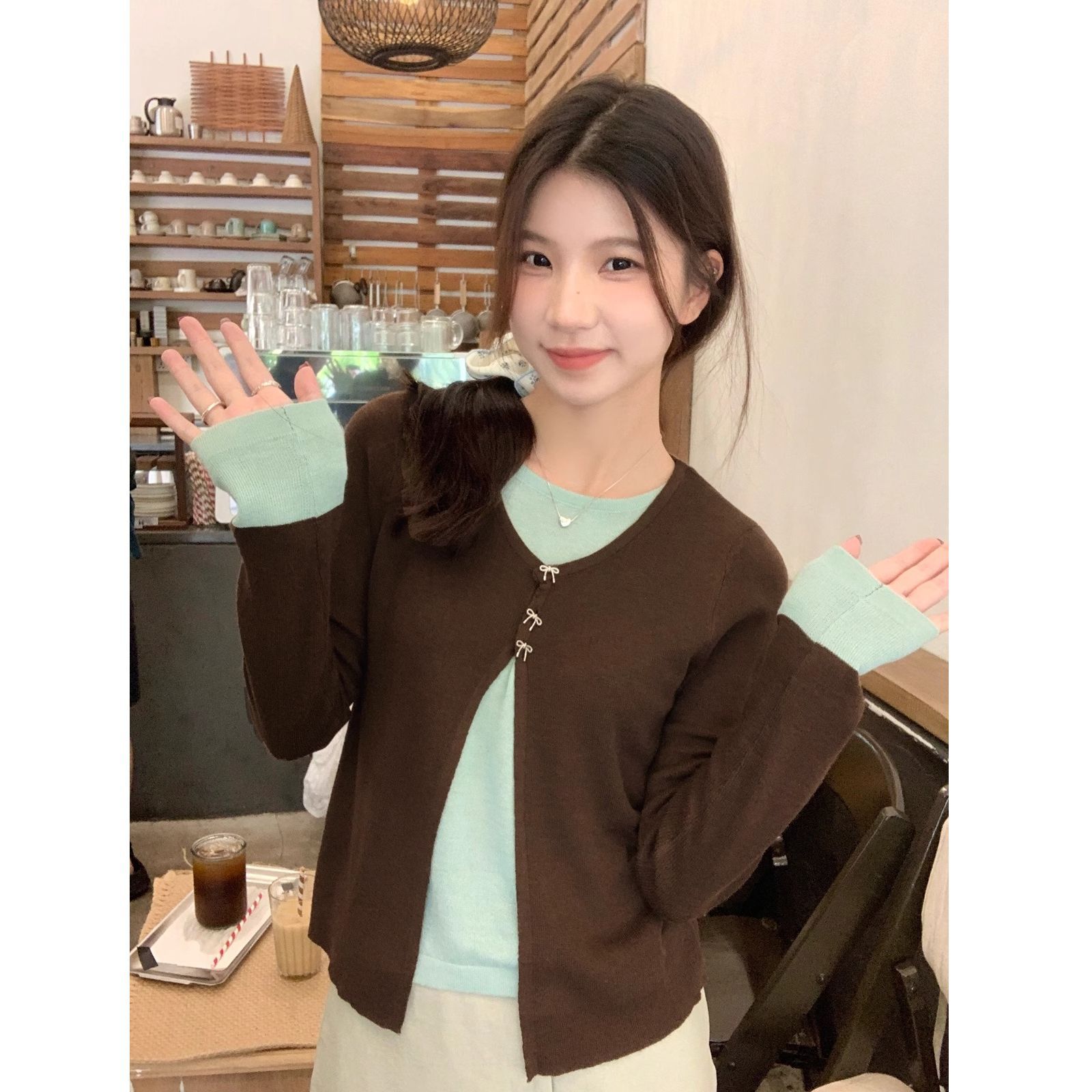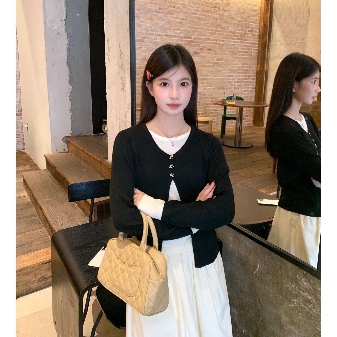 Suéter de Punto con Diseño de Dos Piezas Falsas de Otoño, Camiseta de Moda Niche Elegante para Chica Picante Sexy de Manga Larga