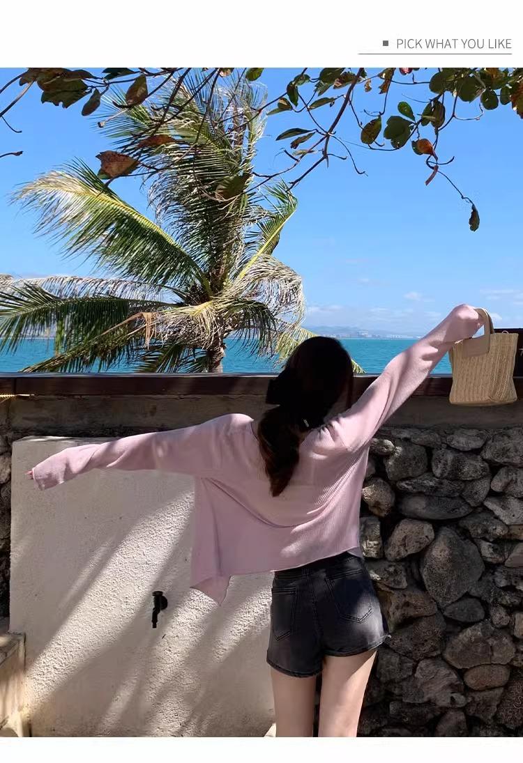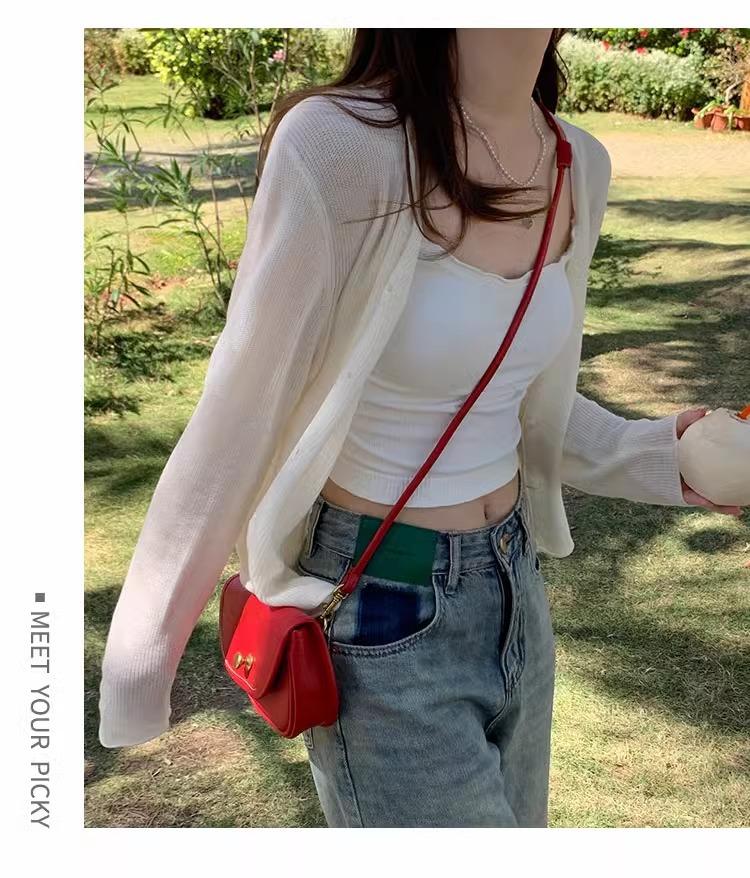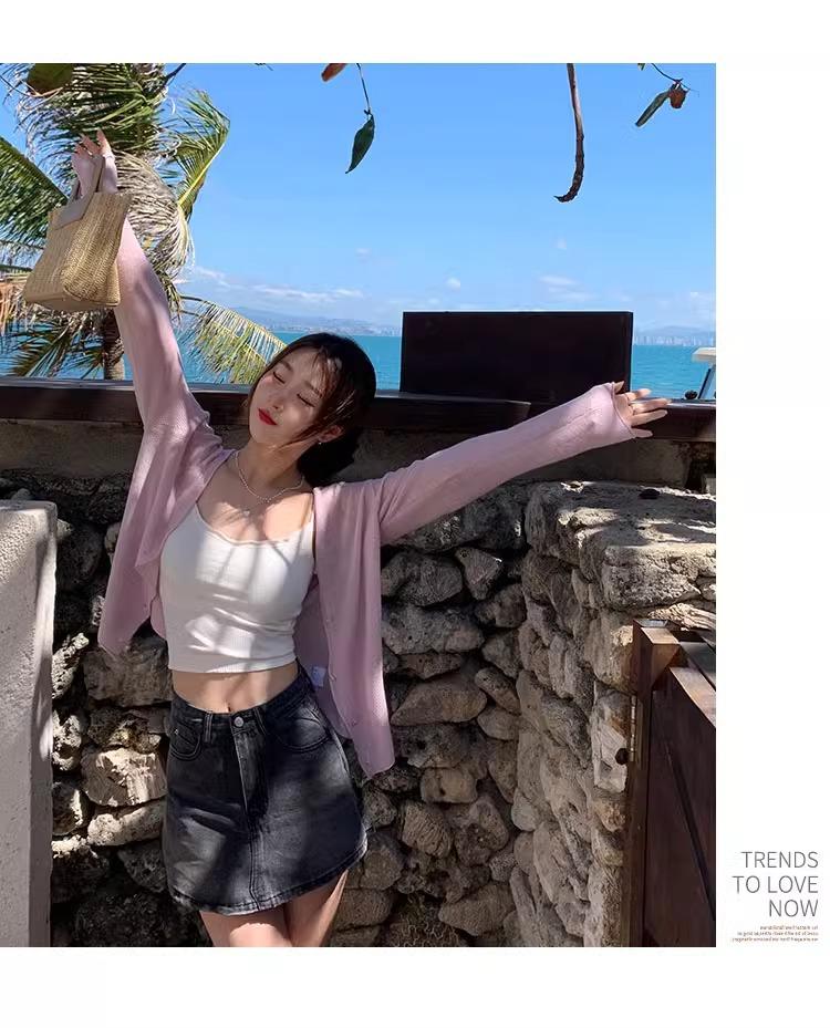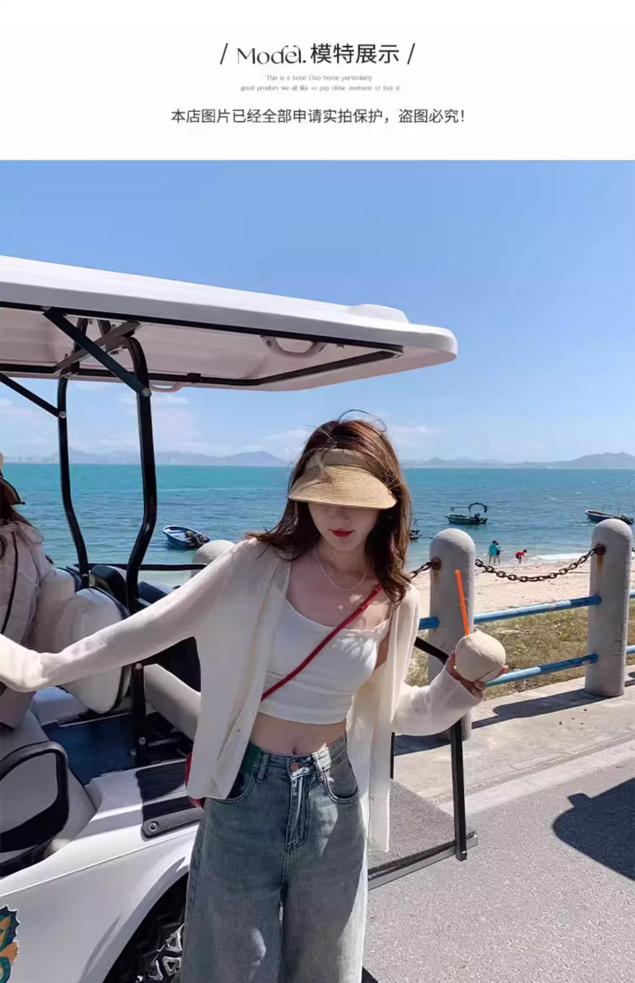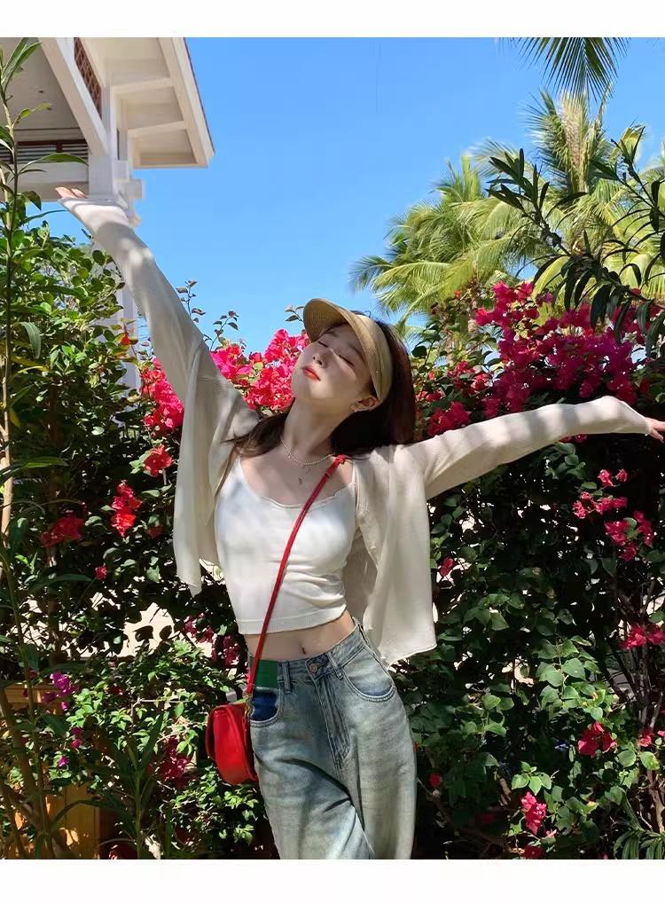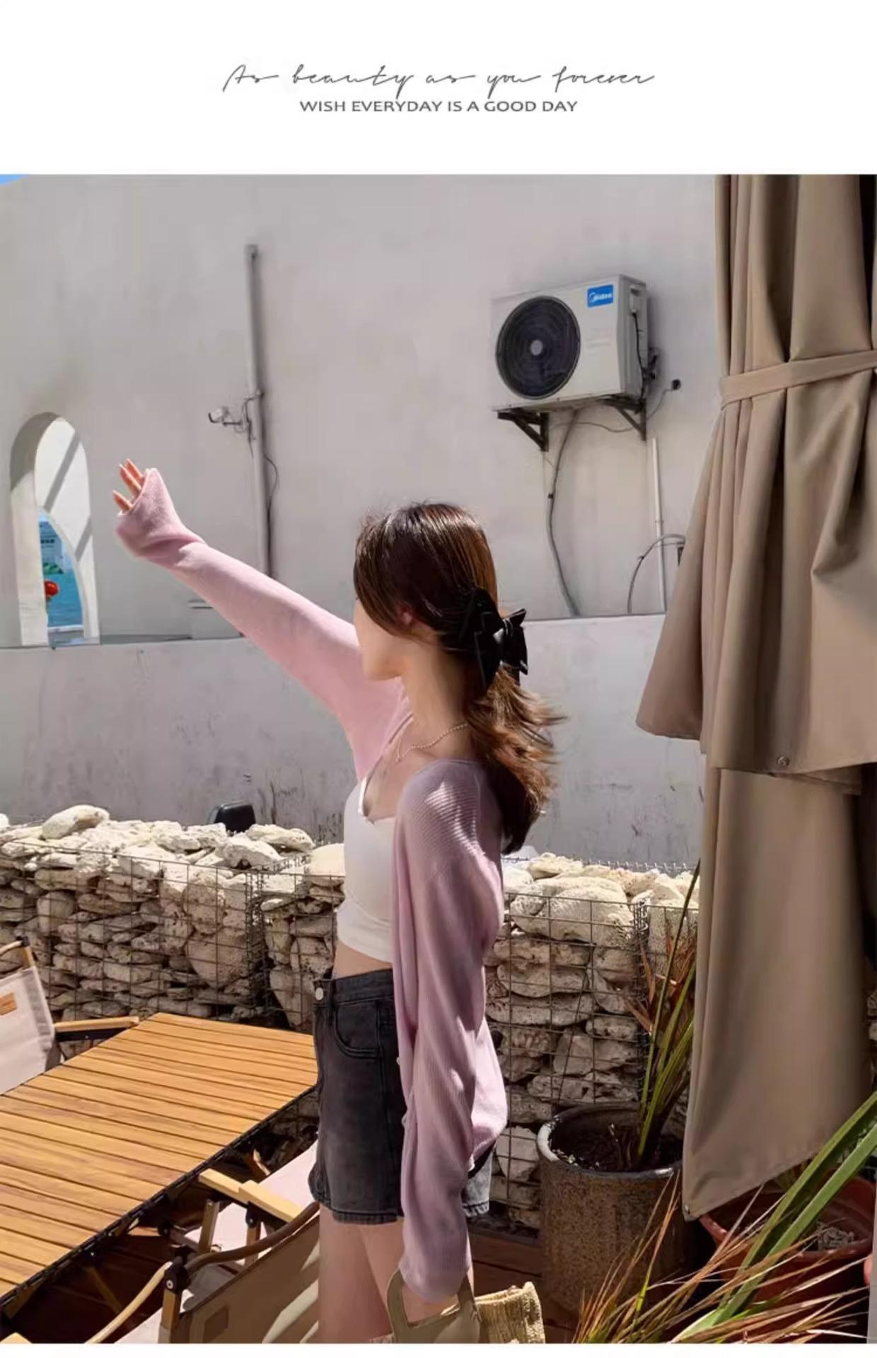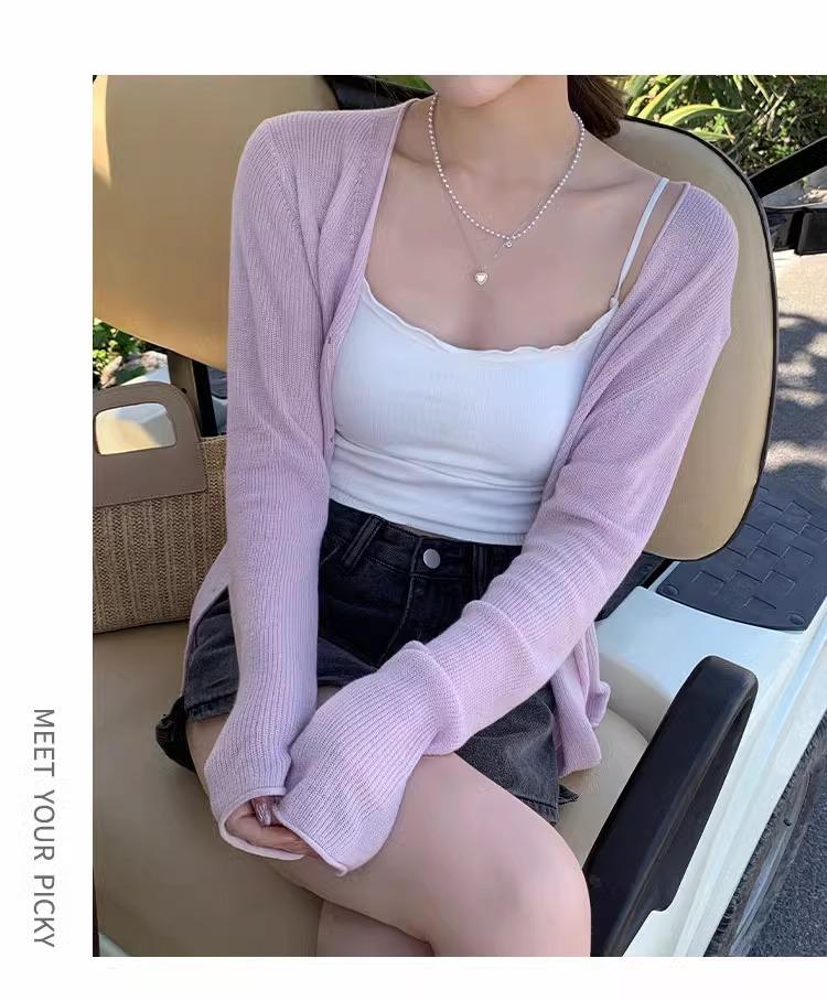 Cárdigan Protector Solar Delgado para Mujer Chaqueta de Punto de Seda de Hielo Verano Blusa Exterior con Tirantes 2025 Top Blanco Camisa para Aire Acondicionado