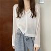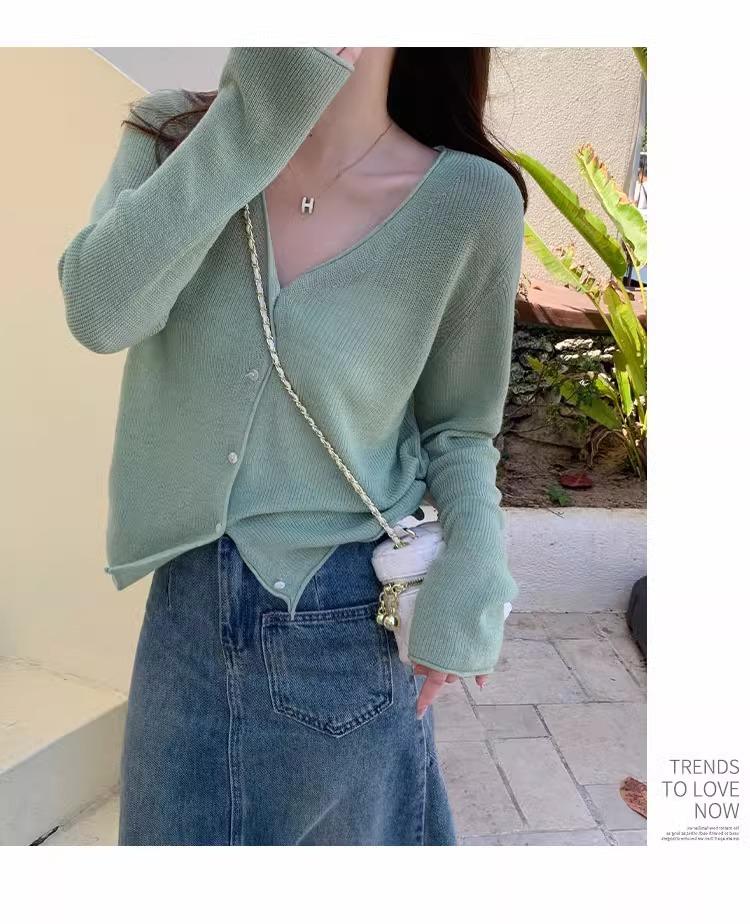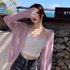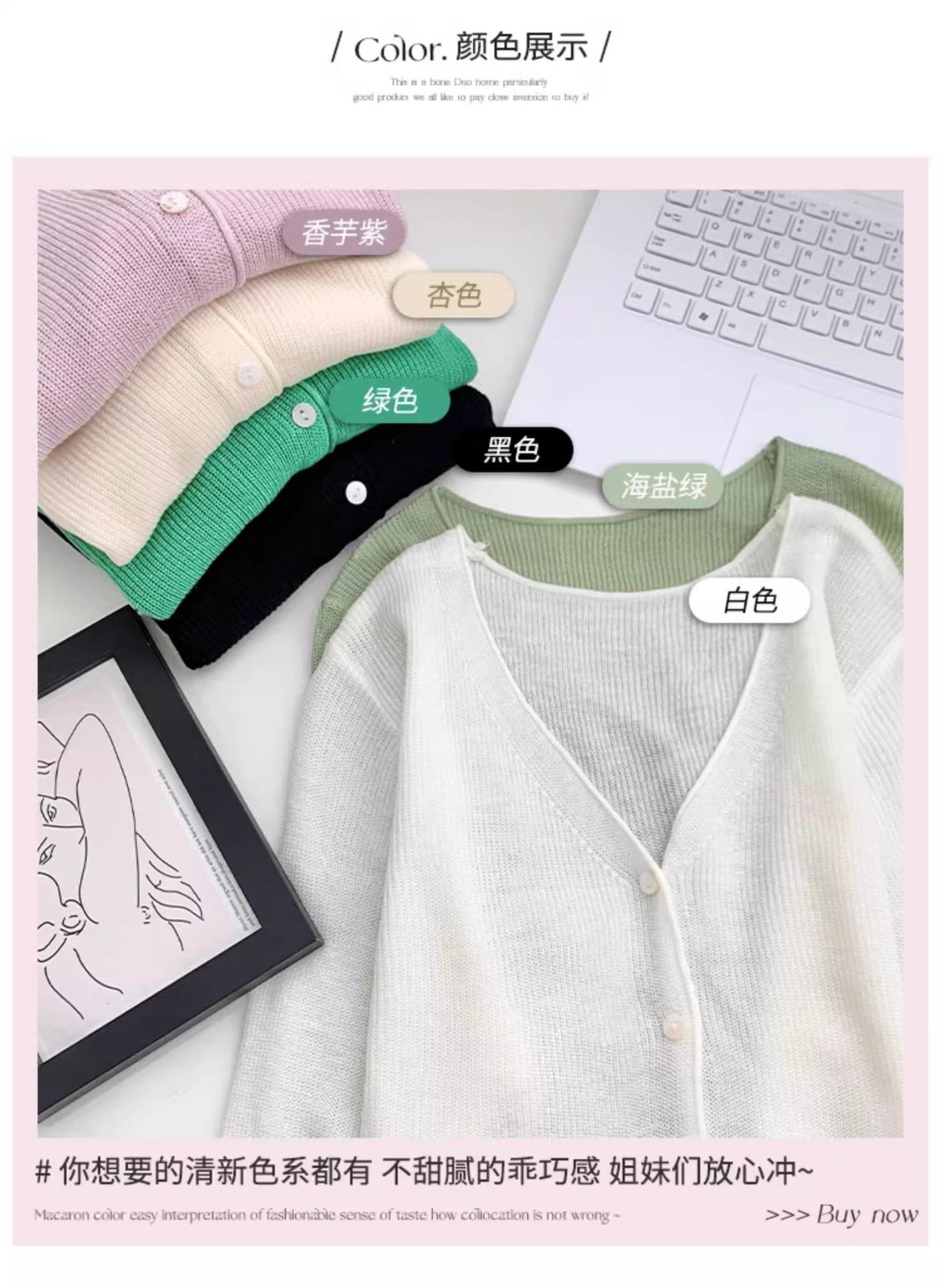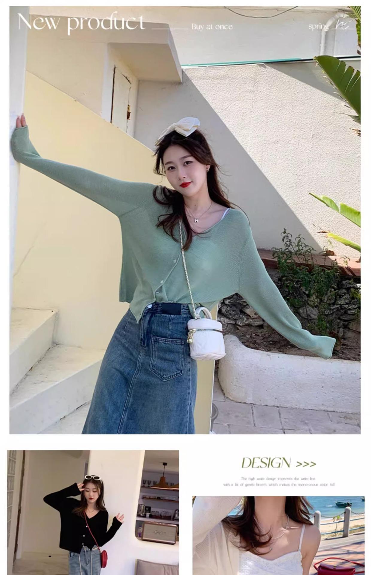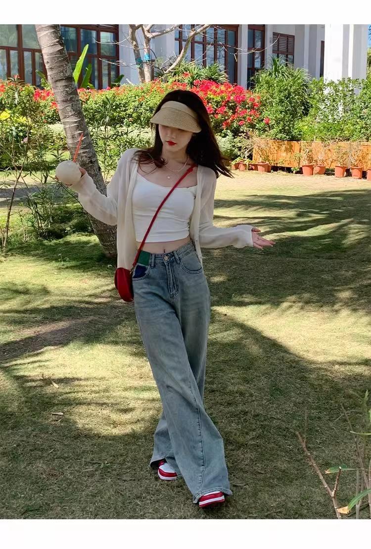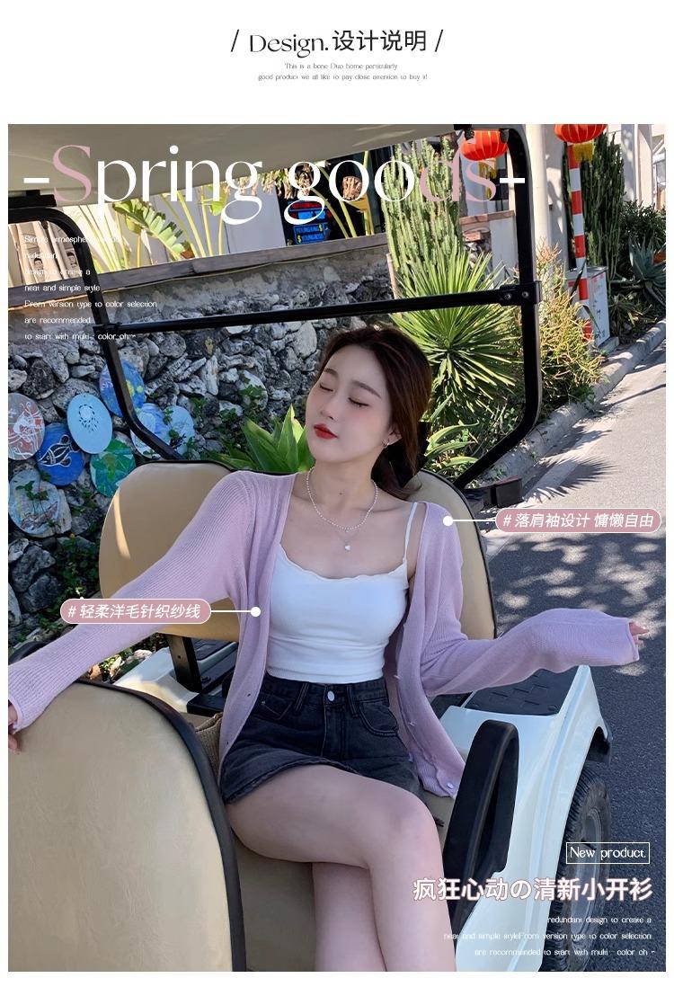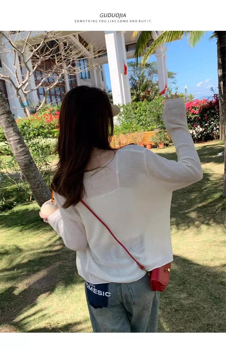 Cárdigan Protector Solar Delgado para Mujer Chaqueta de Punto de Seda de Hielo Verano Blusa Exterior con Tirantes 2025 Top Blanco Camisa para Aire Acondicionado