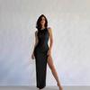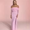 Amazon Europeo y Americano Primavera y Verano Vestido Sexy de Alta Gama Top de Tubo sin Espalda Color Sólido Abertura Alta Vestido Largo Mujer Venta al por Mayor