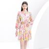 Ropa de mujer transfronteriza de verano 2025, nuevo y elegante conjunto de vestido de dos piezas de malla estampada