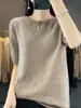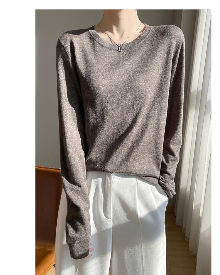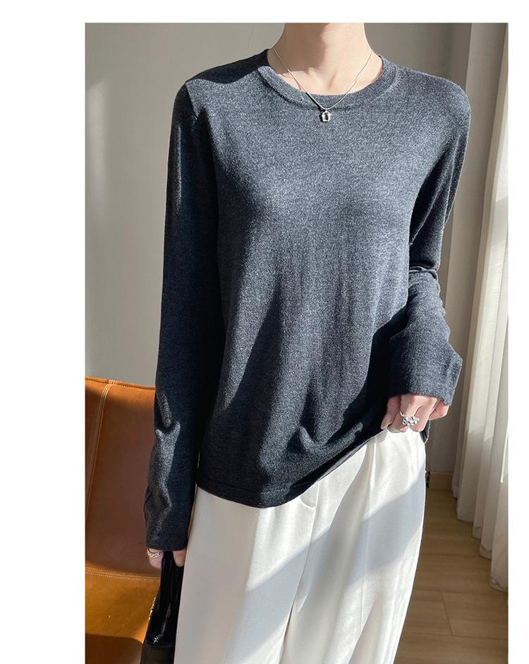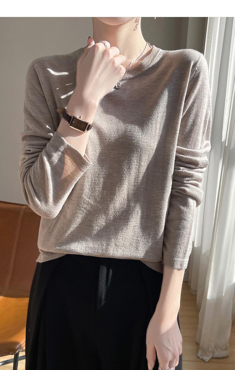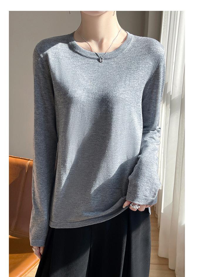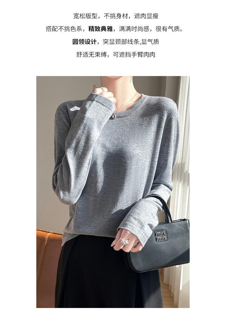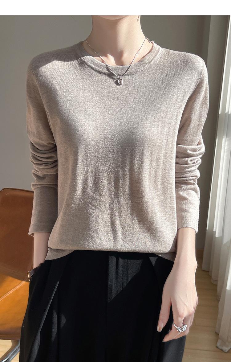Suéter de lana peinada para mujer, primavera y verano 2025, cuello redondo, suelto, corto, color liso, fino, manga larga, camisa de punto