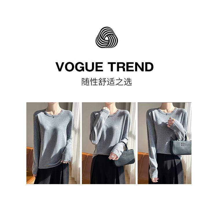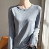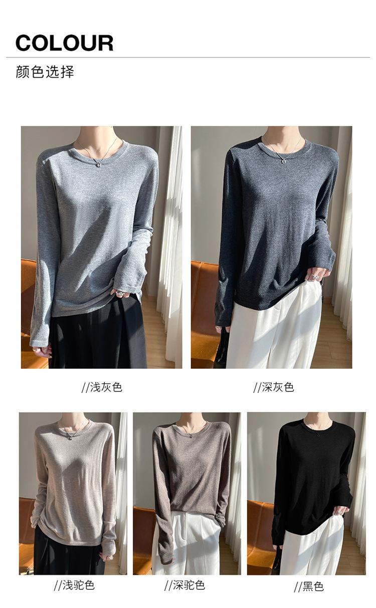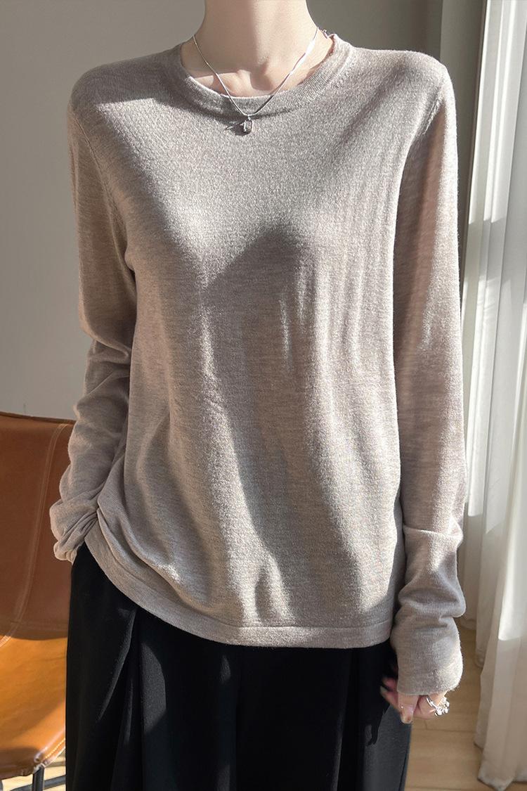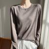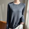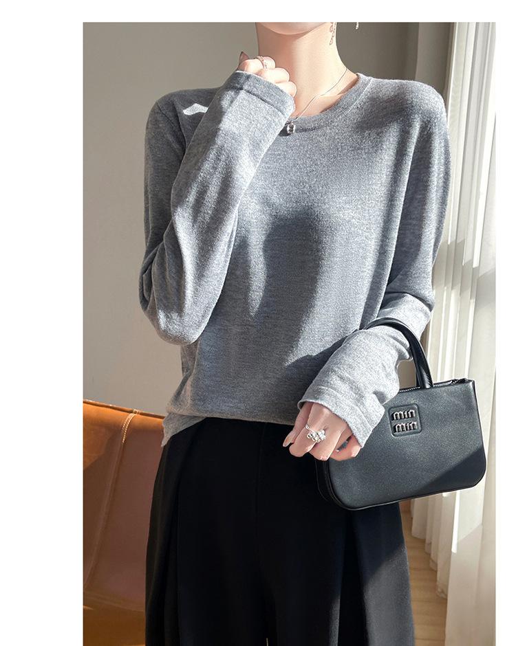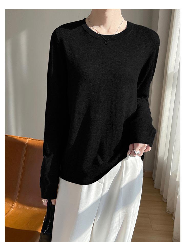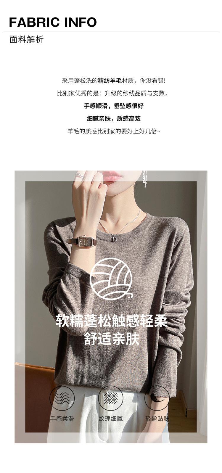 Suéter de lana peinada para mujer, primavera y verano 2025, cuello redondo, suelto, corto, color liso, fino, manga larga, camisa de punto
