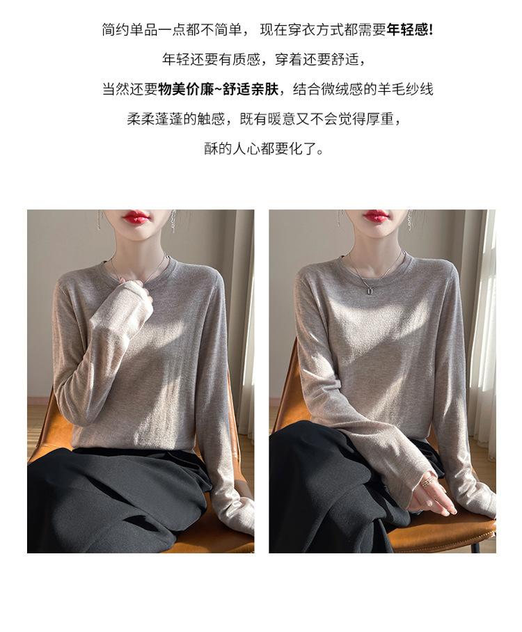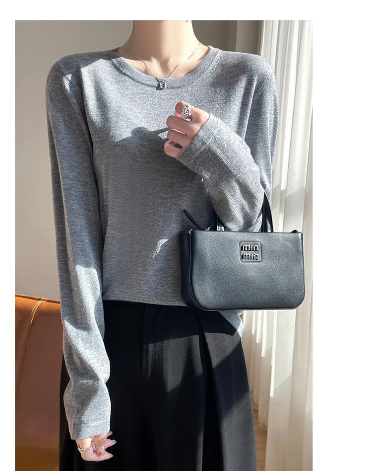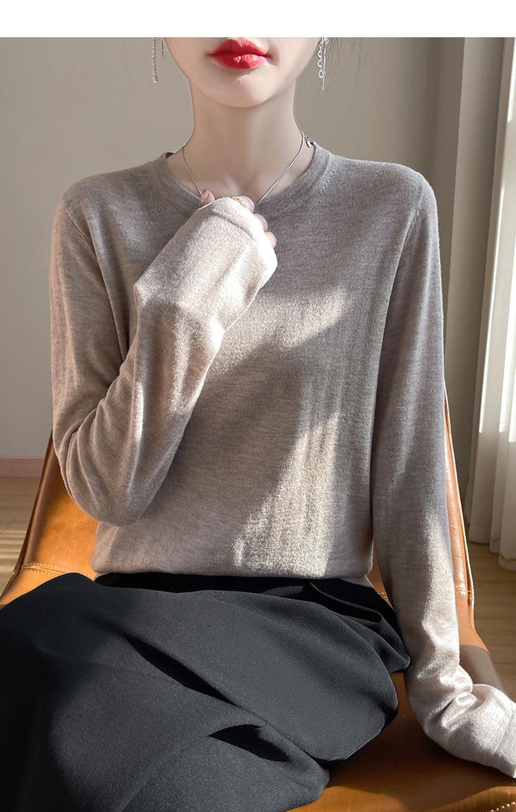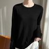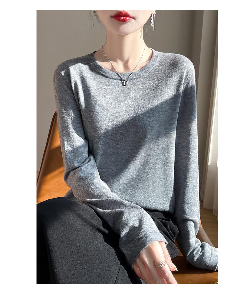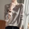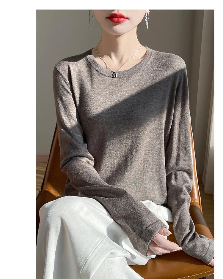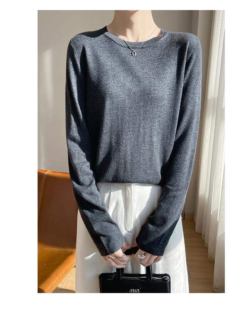 Suéter de lana peinada para mujer, primavera y verano 2025, cuello redondo, suelto, corto, color liso, fino, manga larga, camisa de punto