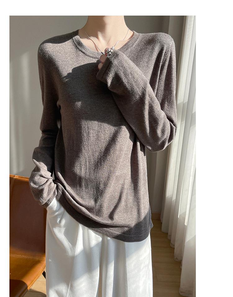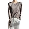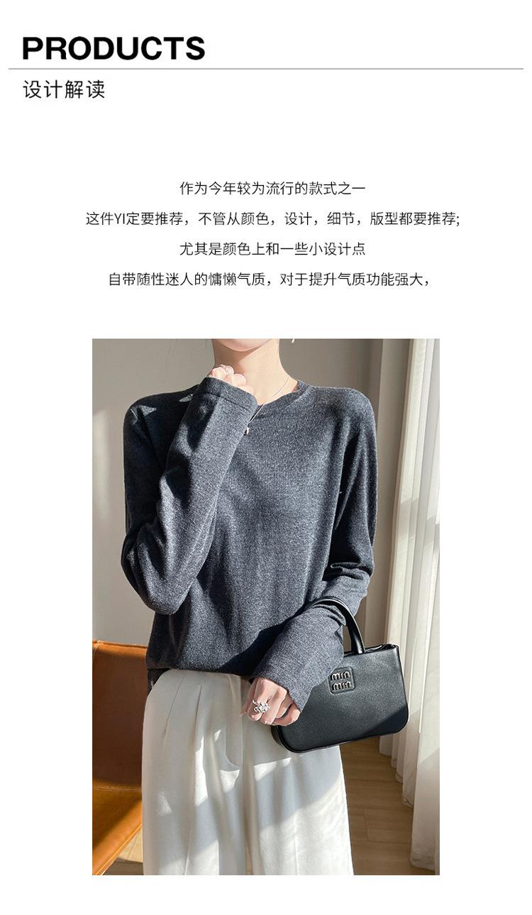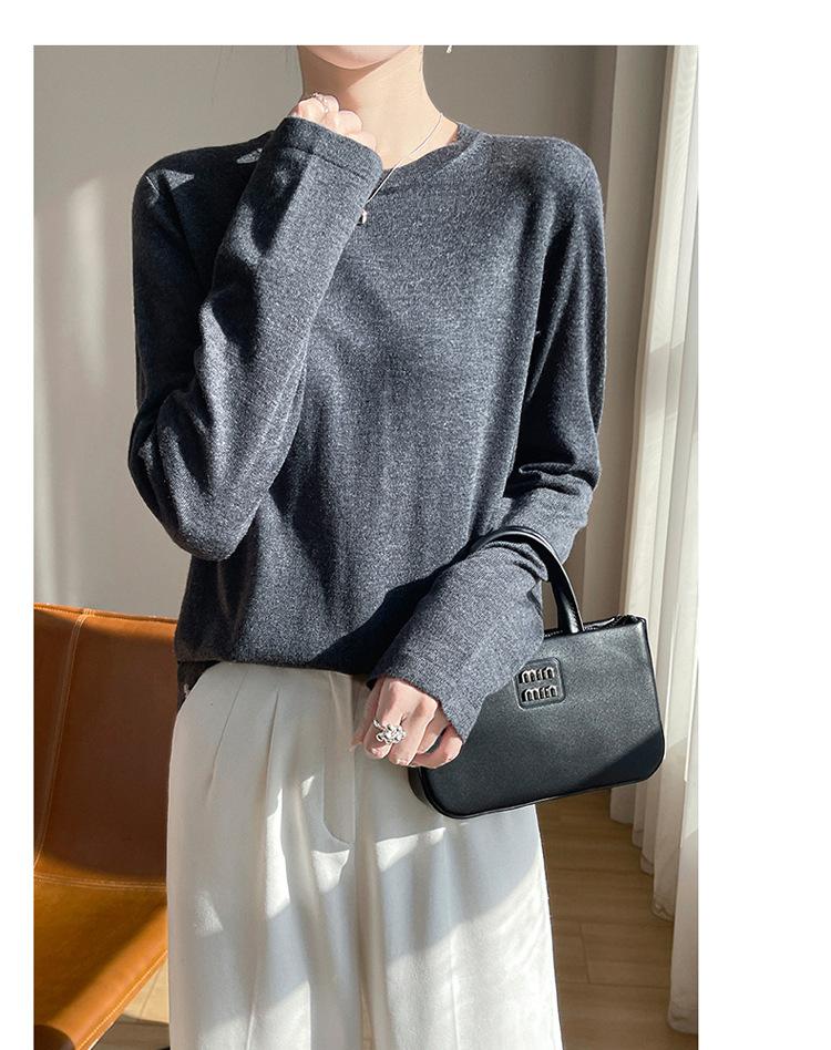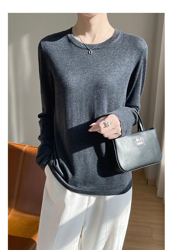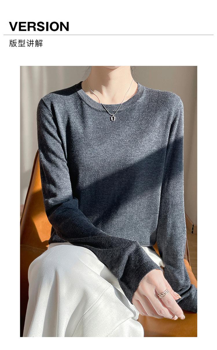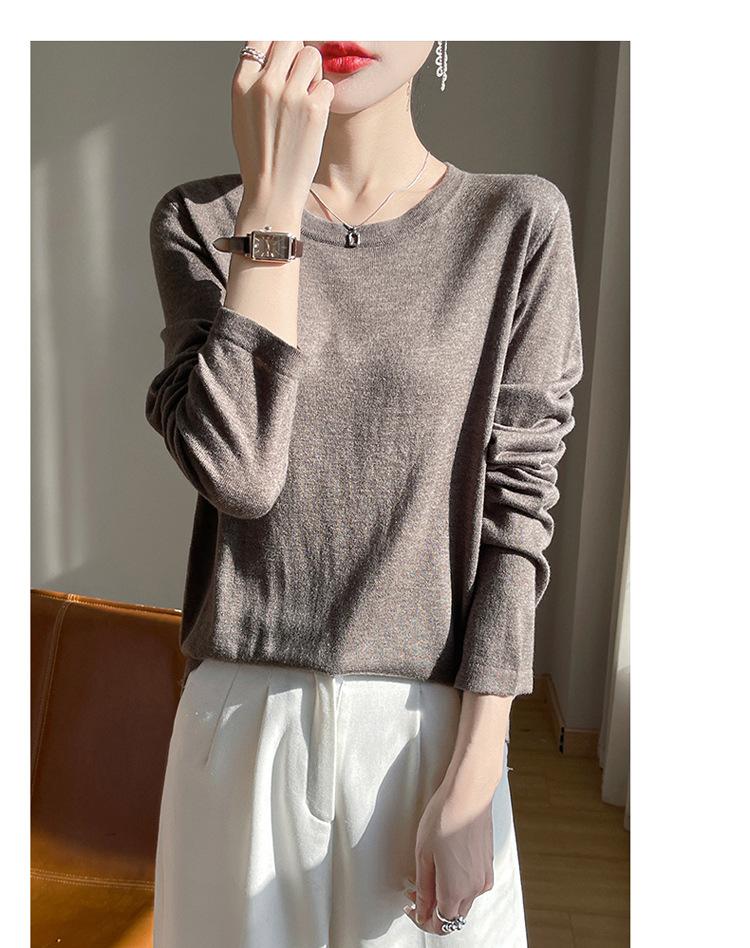 Suéter de lana peinada para mujer, primavera y verano 2025, cuello redondo, suelto, corto, color liso, fino, manga larga, camisa de punto