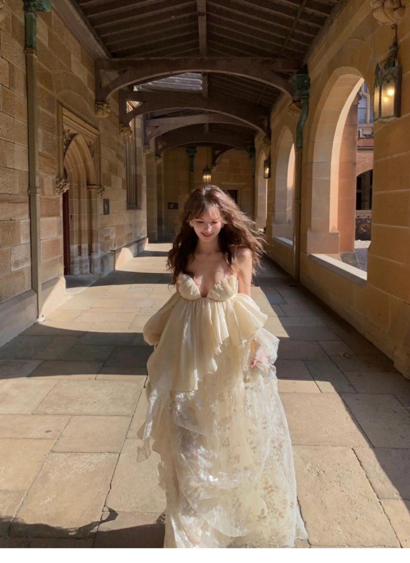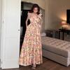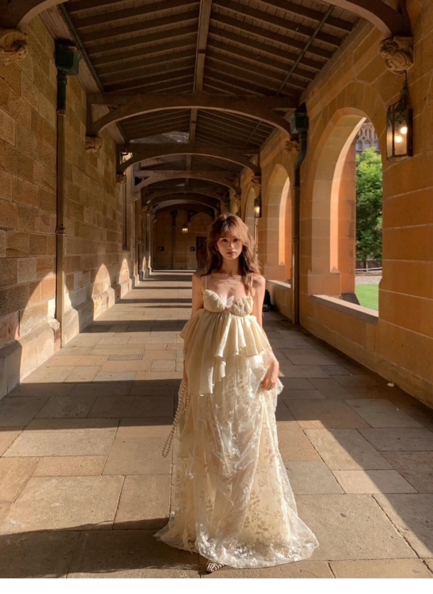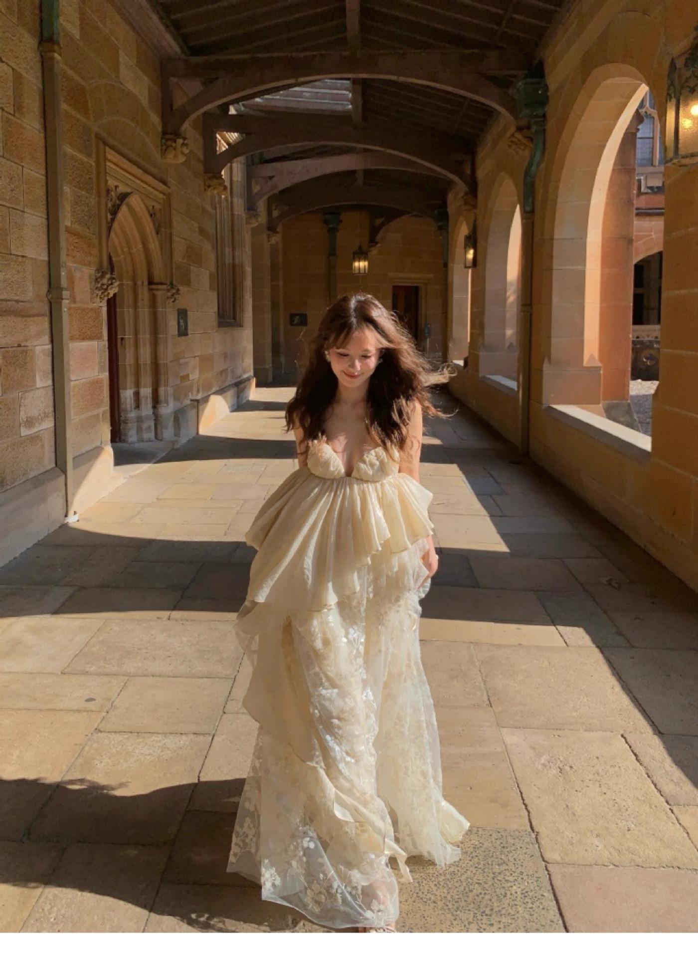 Vestido largo irregular con tirantes, nuevo color albaricoque, escote bajo, suelto, para fiesta de cumpleaños y noche.