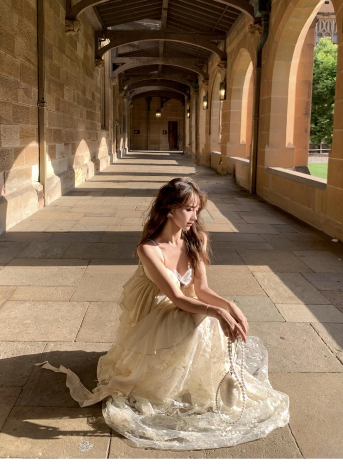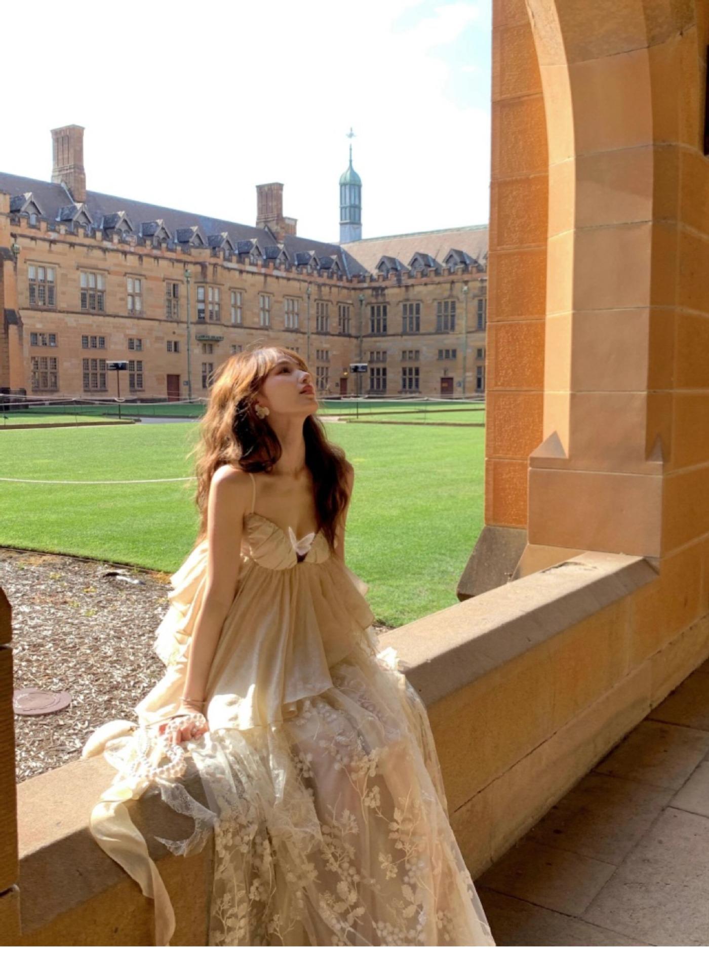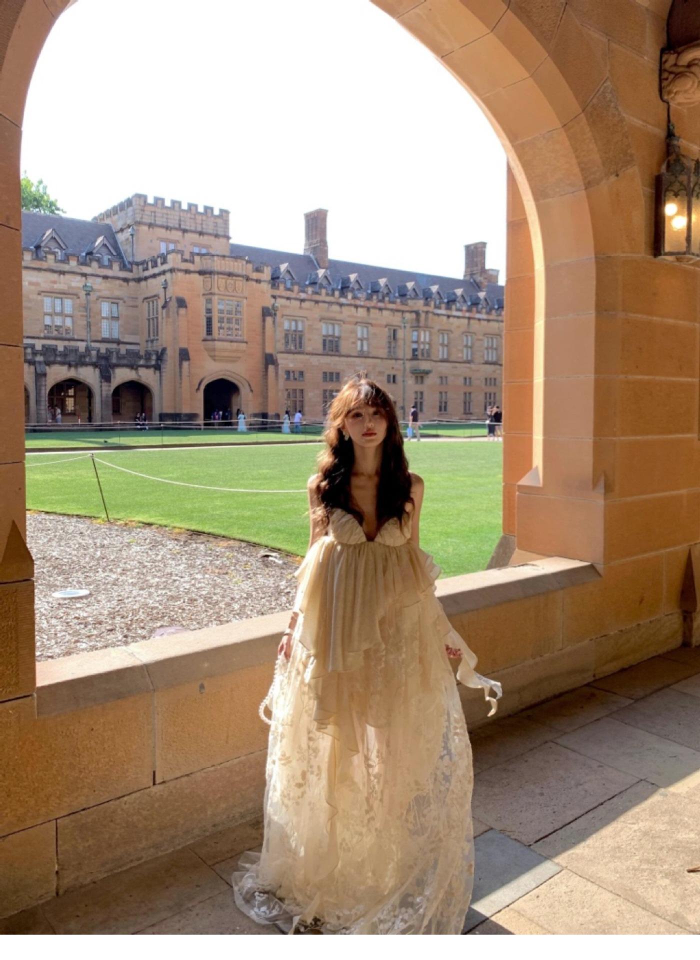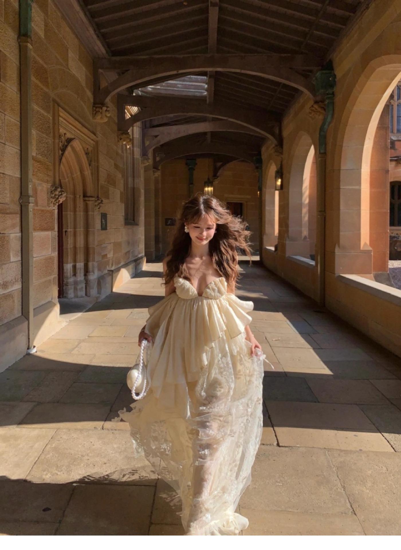 Vestido largo irregular con tirantes, nuevo color albaricoque, escote bajo, suelto, para fiesta de cumpleaños y noche.