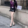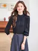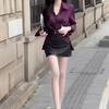 Primavera 2025 Camisa de Manga Larga con Cintura Francesa para Mujer Diseño de Nicho Estilo Extranjero Combinable Camisa Morada Falda Negra