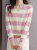 Suéter de rayas con cuello en V para mujer 2025 primavera y otoño nuevo suéter top de estilo extranjero ajustado talla grande camisa base