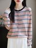 Cárdigan de punto nuevo a rayas en contraste de color para otoño e invierno 2025, holgado, versátil, con sentido del diseño, top elegante para ir al trabajo, interior