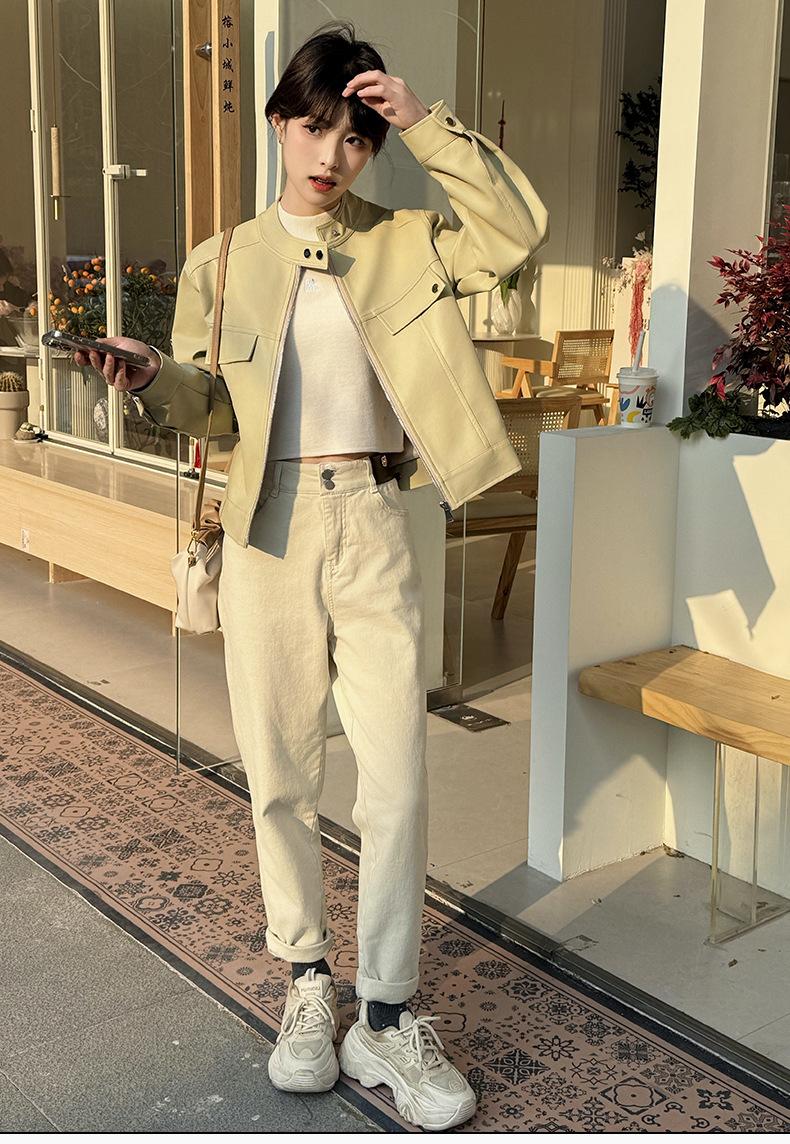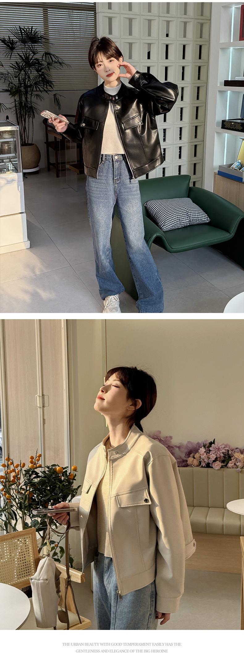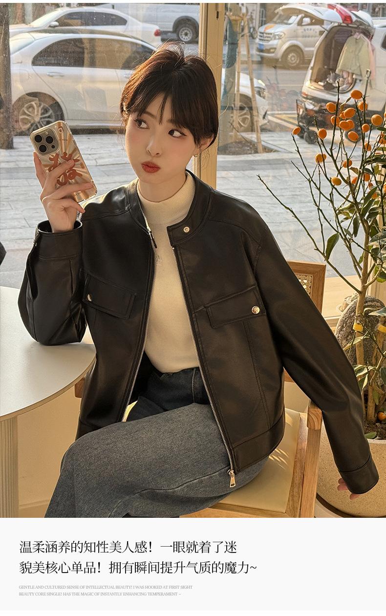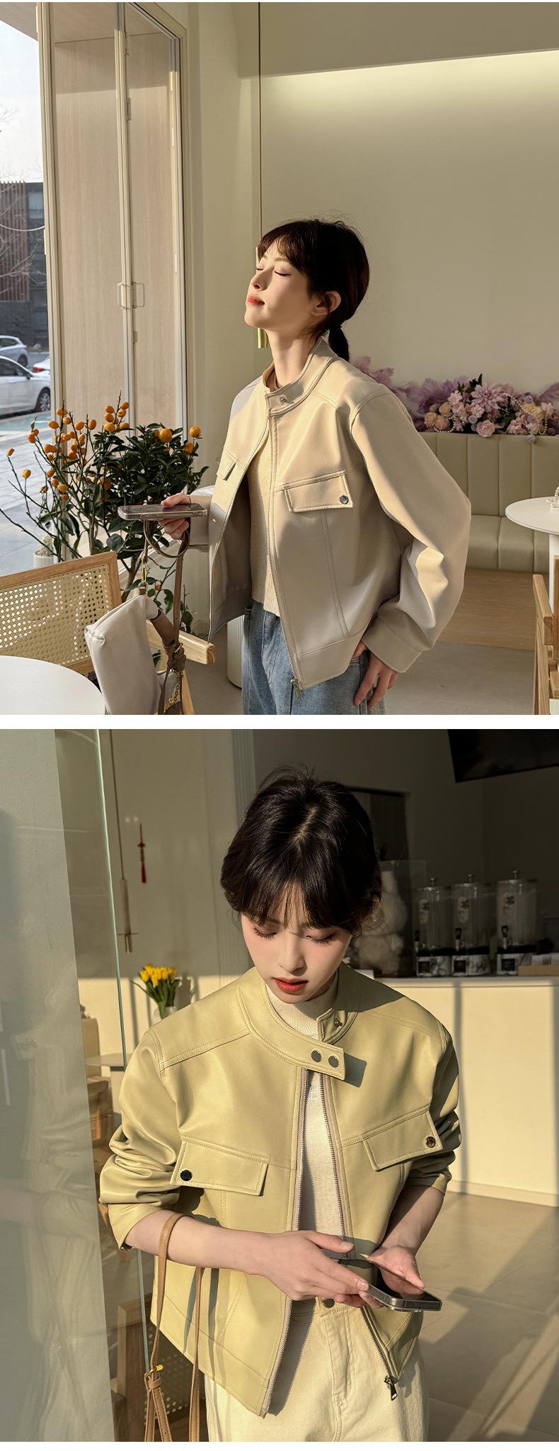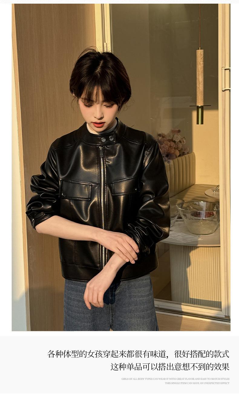 Ropa de cuero para primavera y otoño, top corto adelgazante para mujer, chaqueta de cuero transfronteriza de AliExpress.