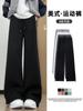 Pantalones Deportivos Rectos Casuales Delgados Grises para Mujer 2025 Primavera y Otoño Nuevos Pantalones de Sudadera Sueltos de Pierna Ancha de Cintura Alta