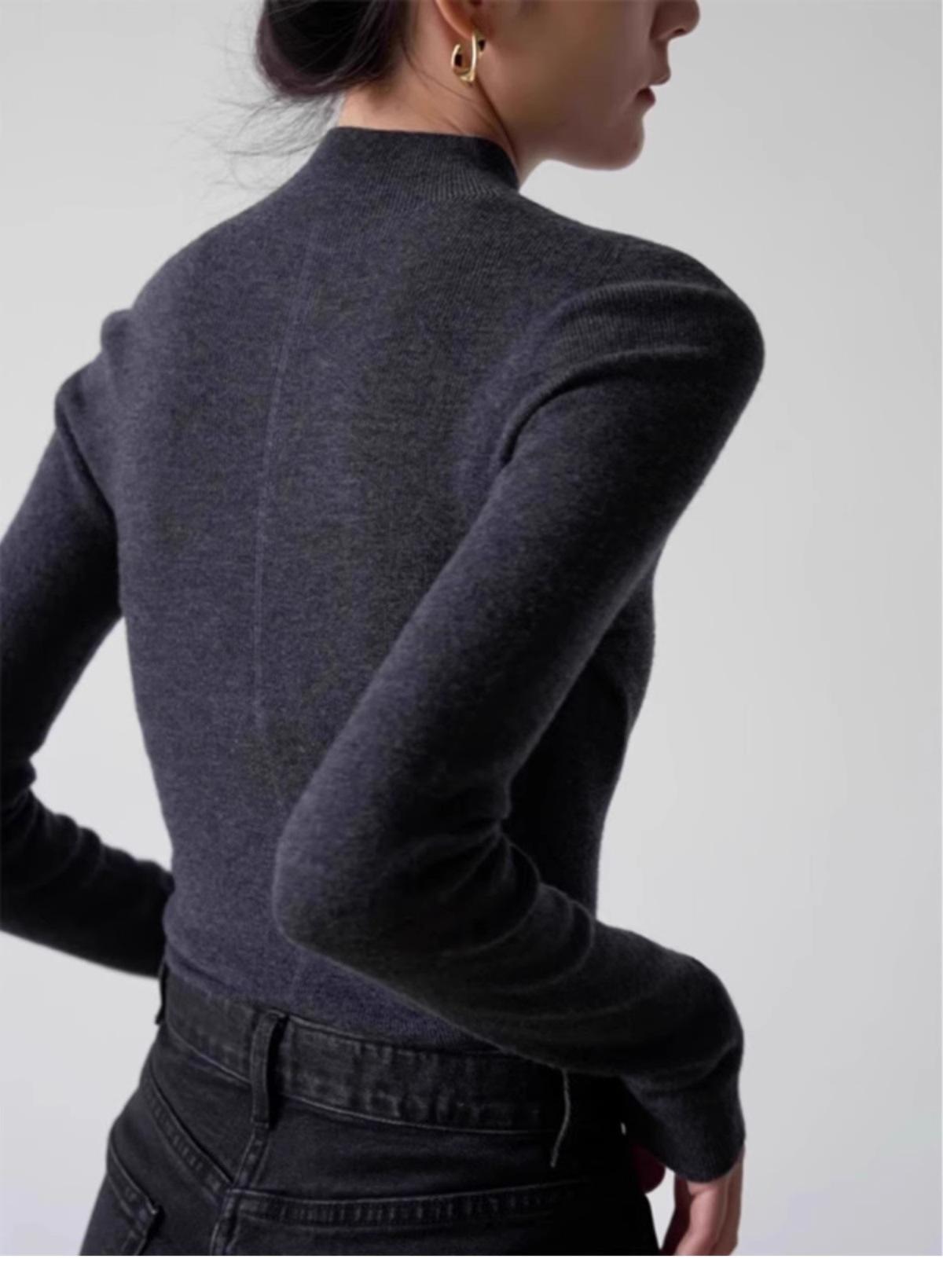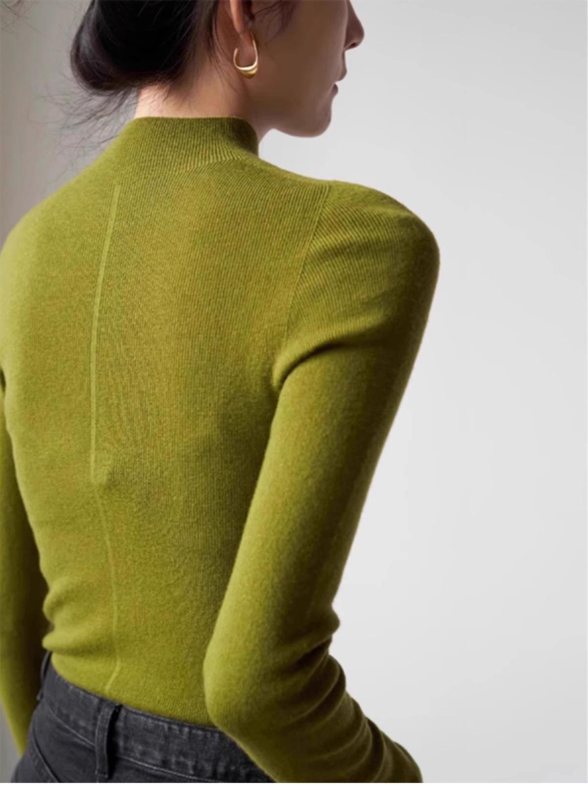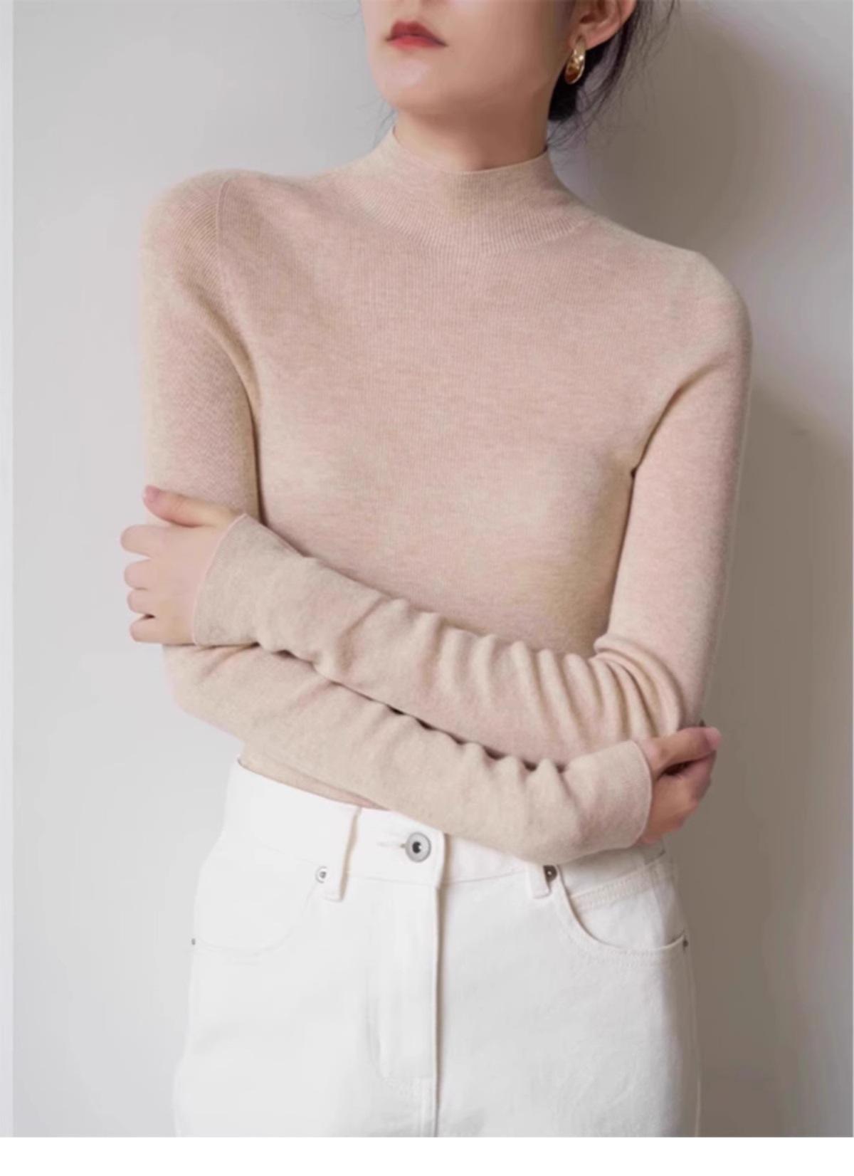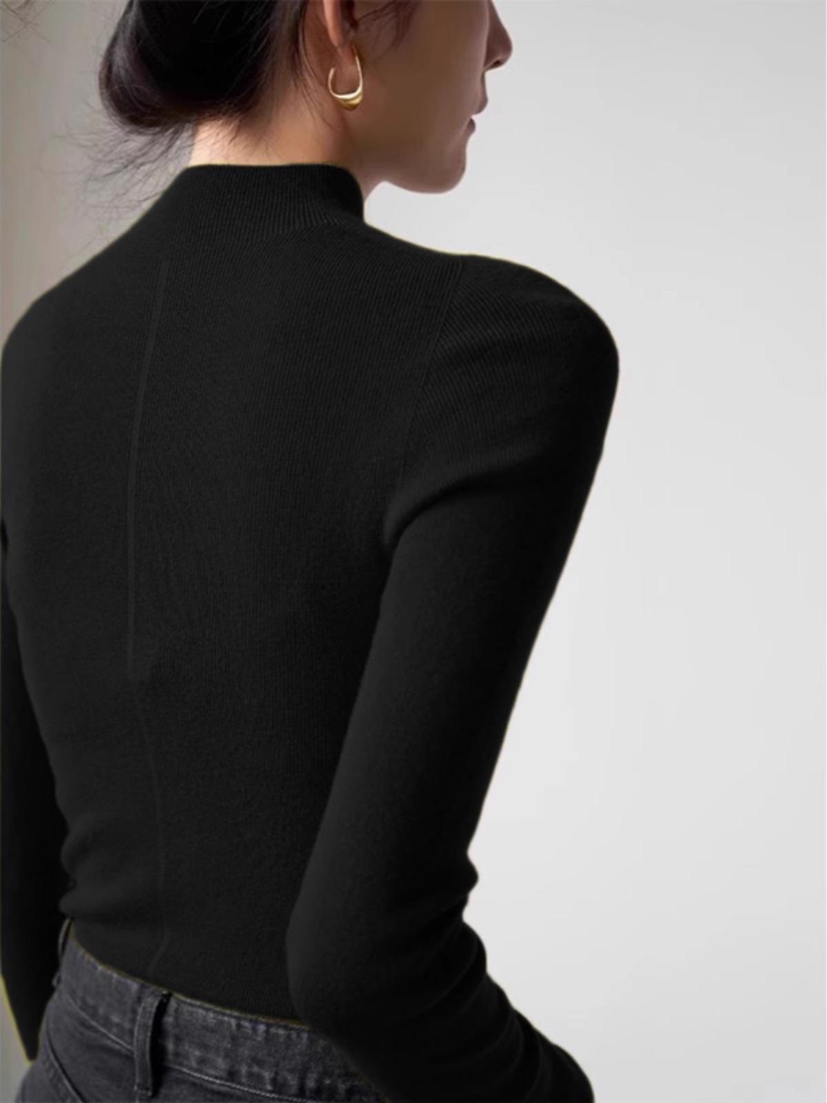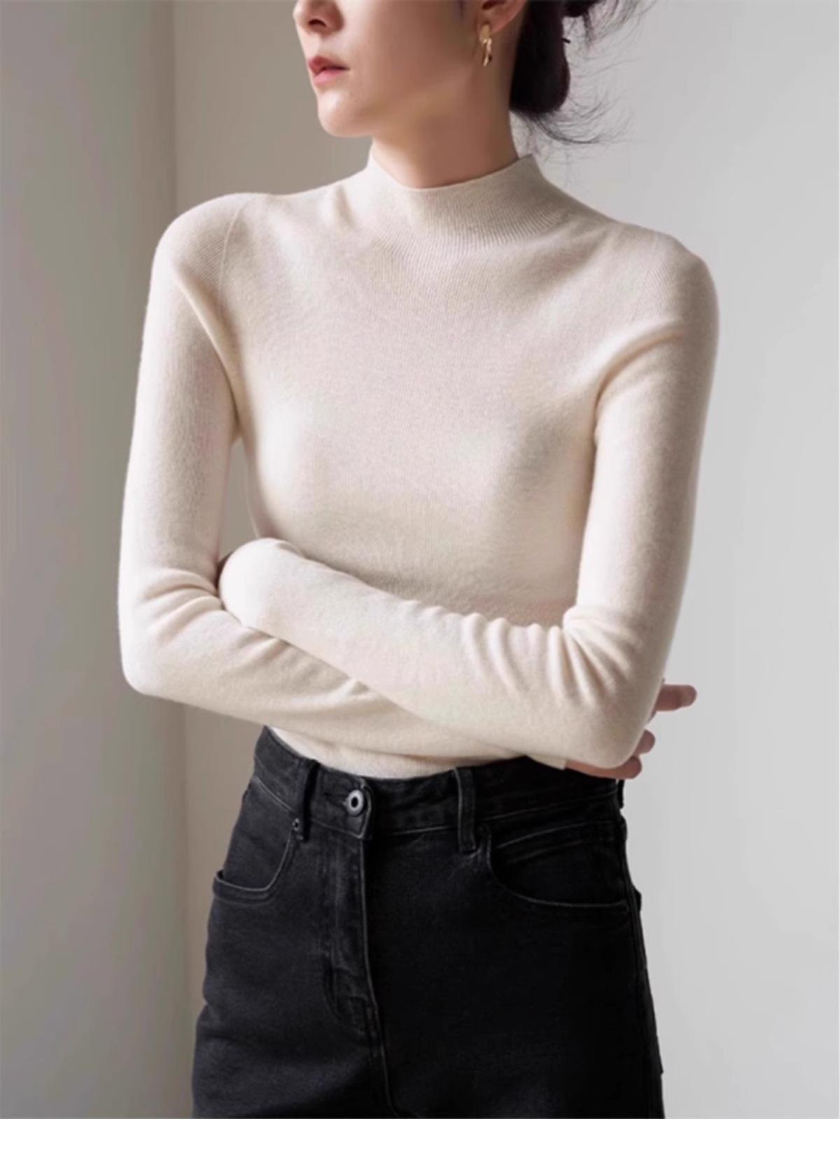 Suéter de cachemira de manga larga con cuello medio alto negro estilo francés para mujer, otoño e invierno, camisa interior ajustada, top de alta calidad