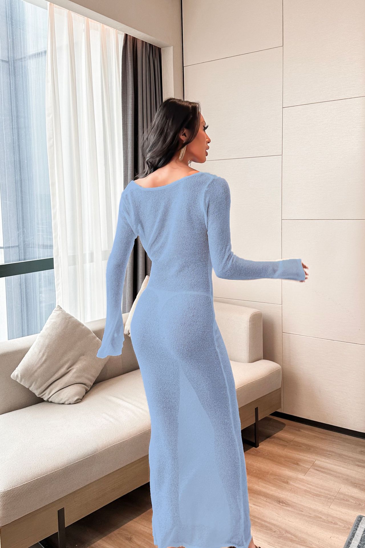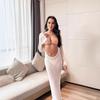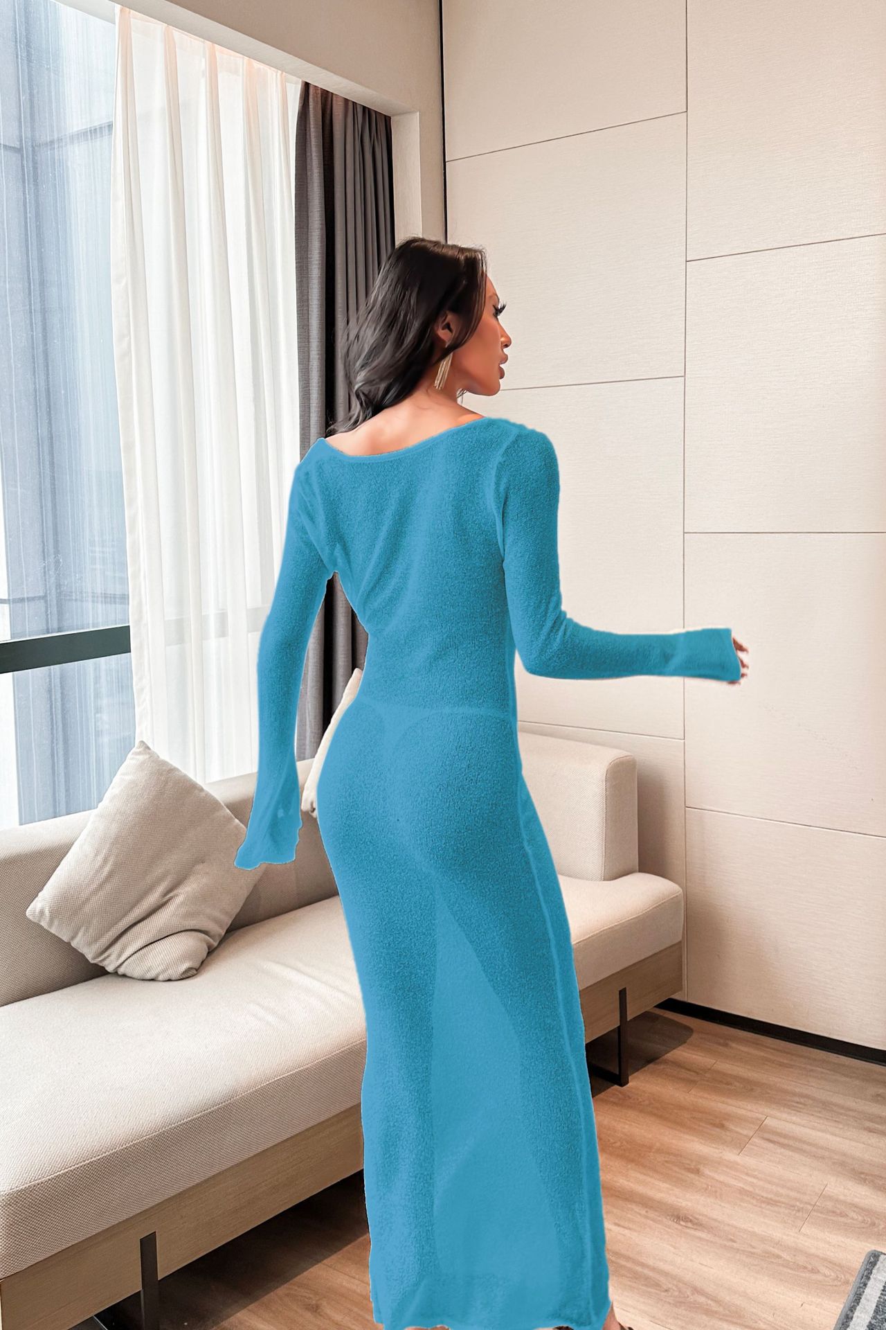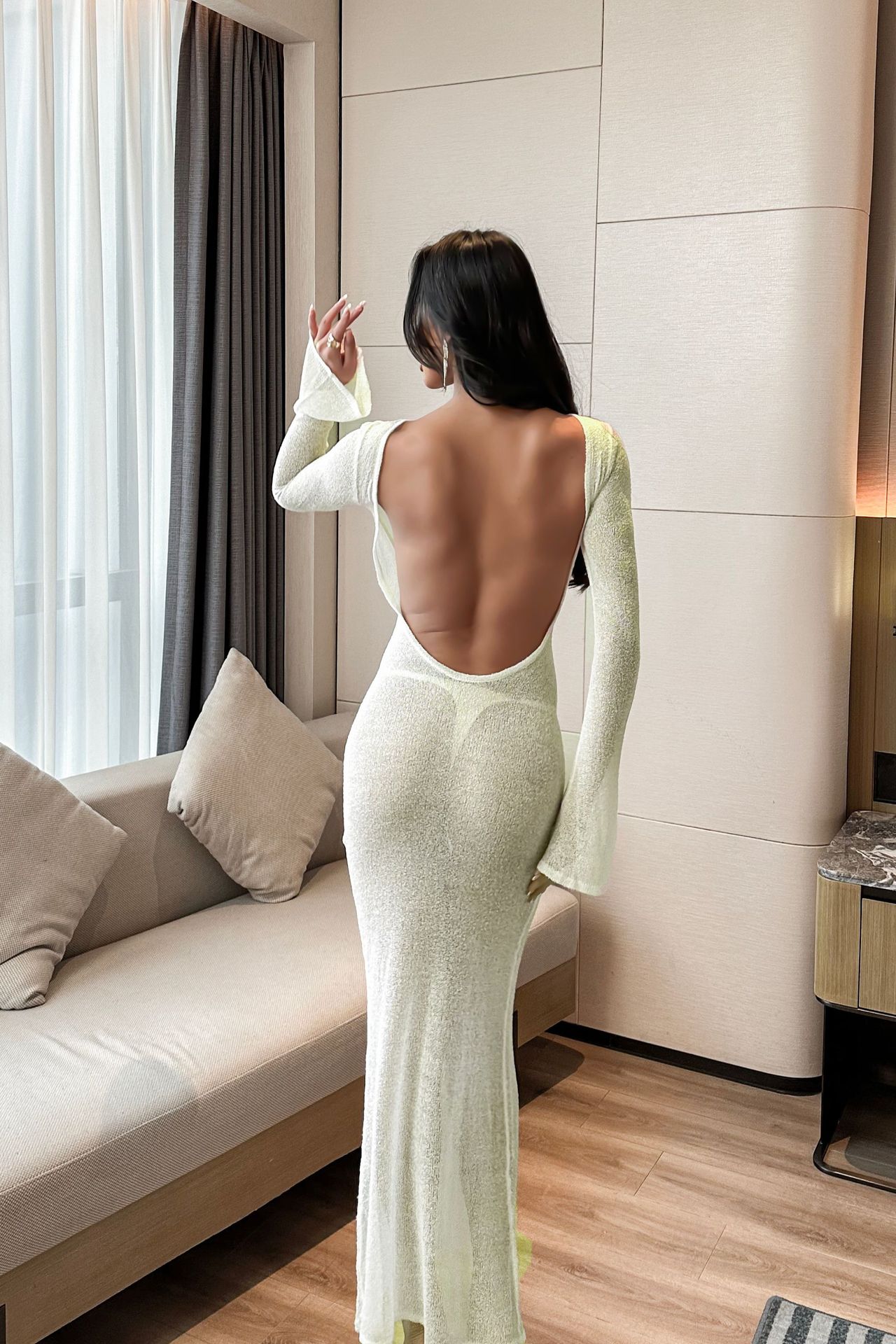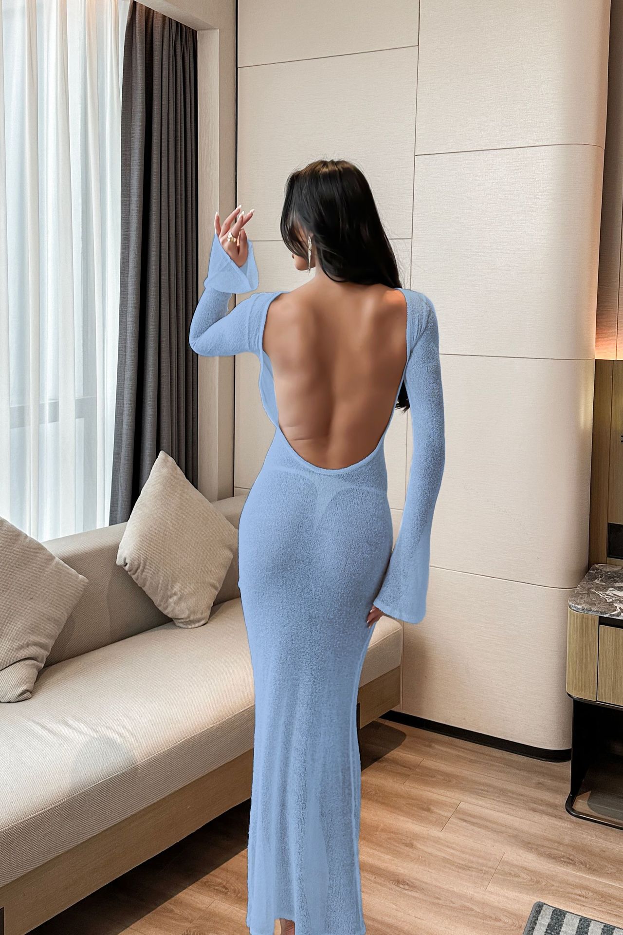 2025 Nuevo Pareo Falda Protectora Solar de Playa Transfronterizo para Mujer Vestido de Verano para Mujer Falda Sexy sin Espalda de Manga Larga Europea y Americana