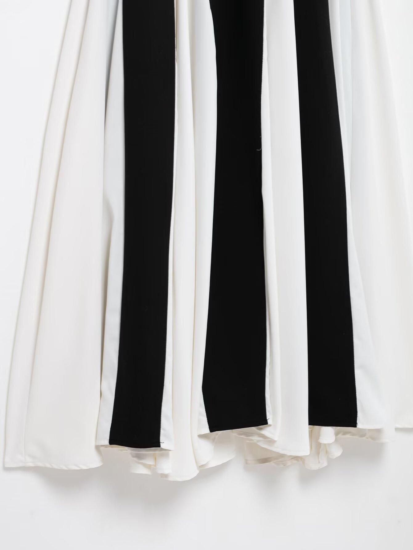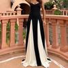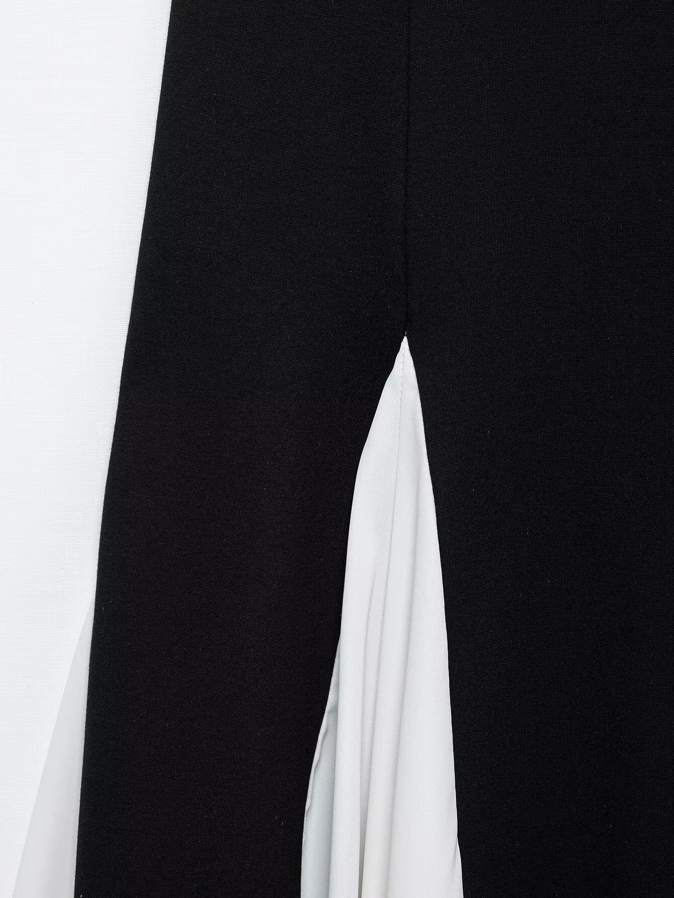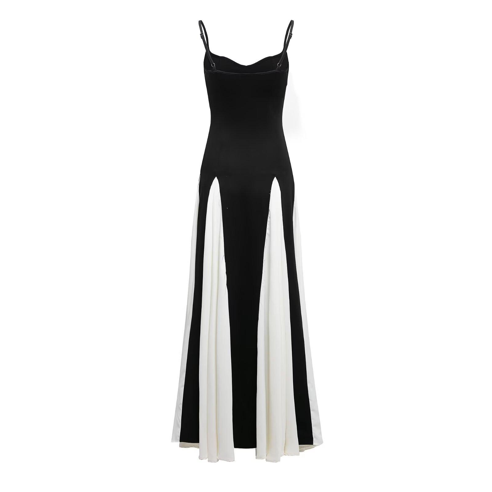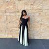 Amazon Comercio Exterior Transfronterizo Ropa Europea y Americana 2025 Principios de Primavera Nueva Moda Elegante Falda Larga con Empalme Blanco y Negro