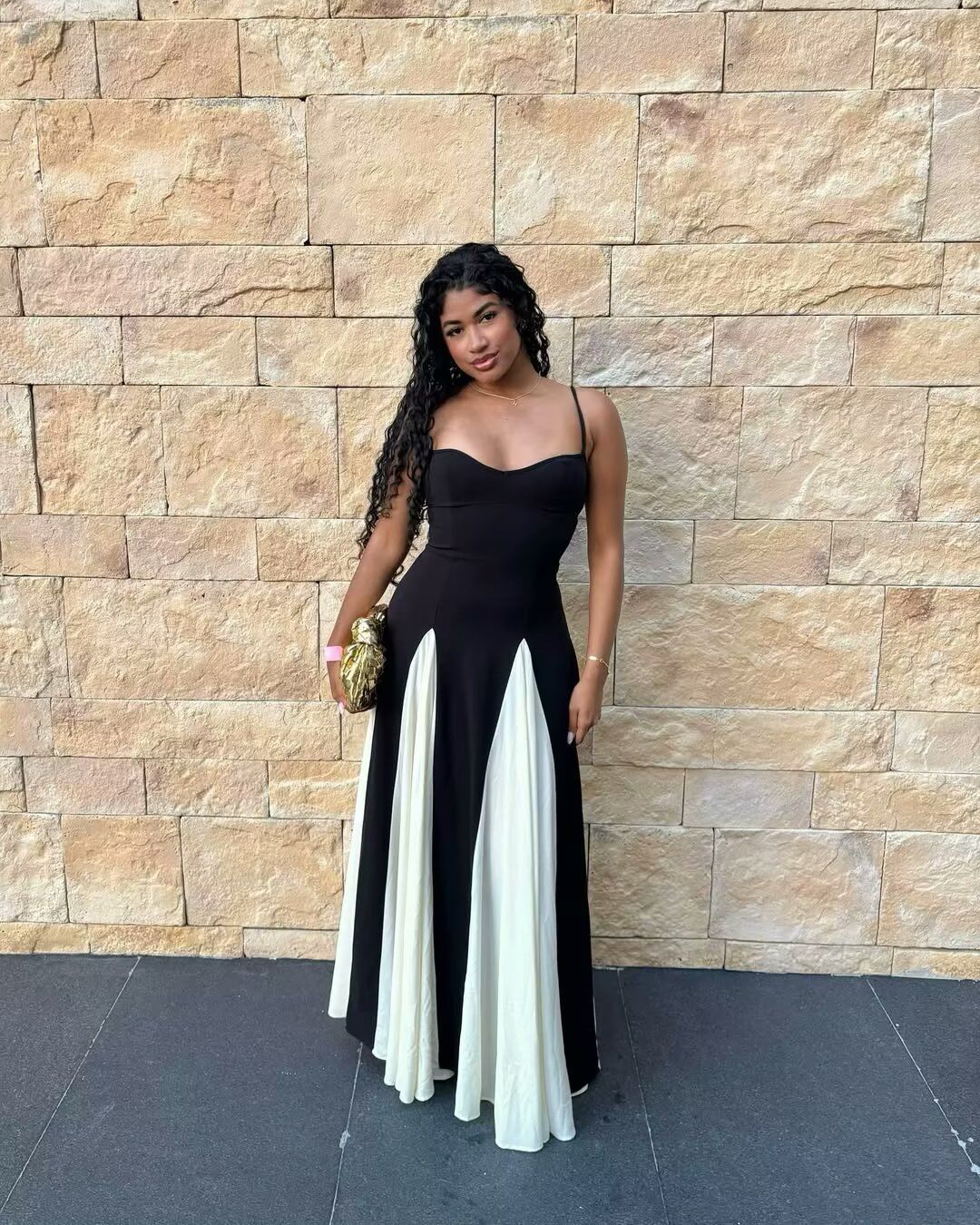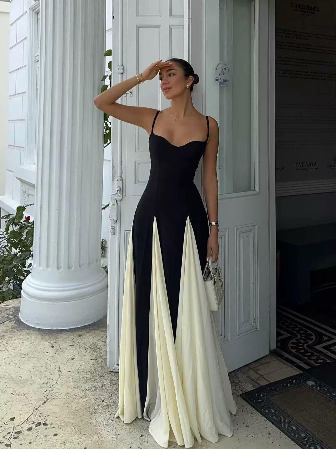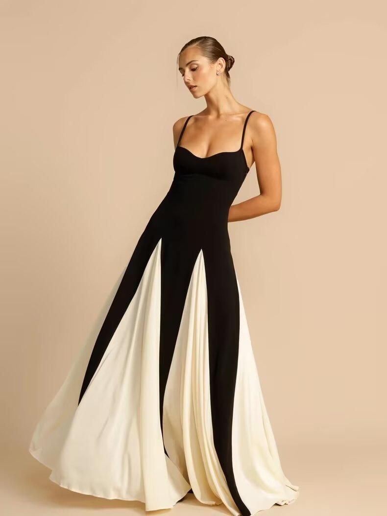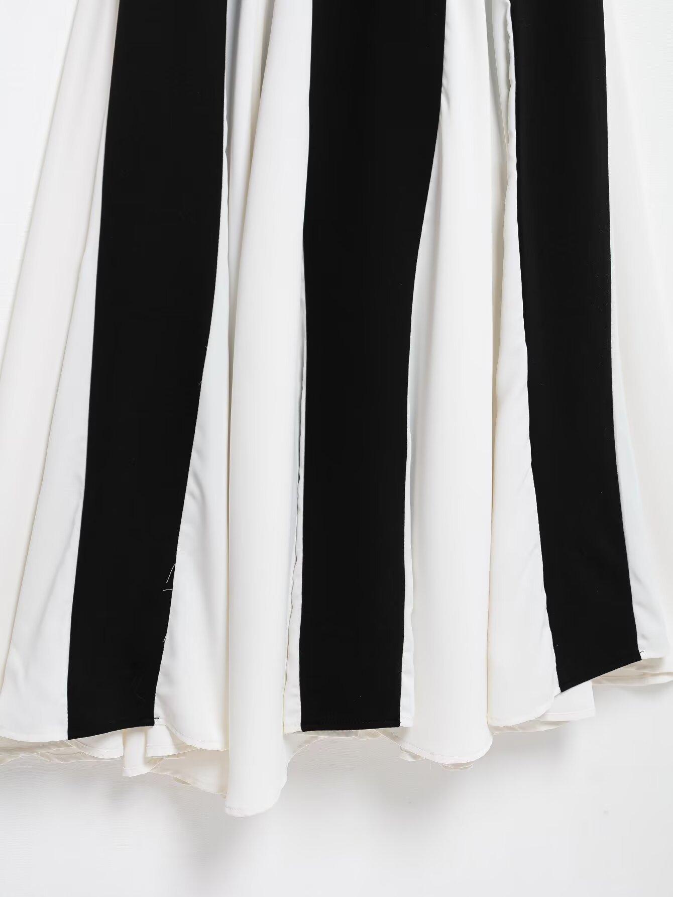 Amazon Comercio Exterior Transfronterizo Ropa Europea y Americana 2025 Principios de Primavera Nueva Moda Elegante Falda Larga con Empalme Blanco y Negro