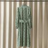Nanyou fábrica mayoreo max nuevo camisa manga larga suelto encaje flor verde estampado vestido seda morera